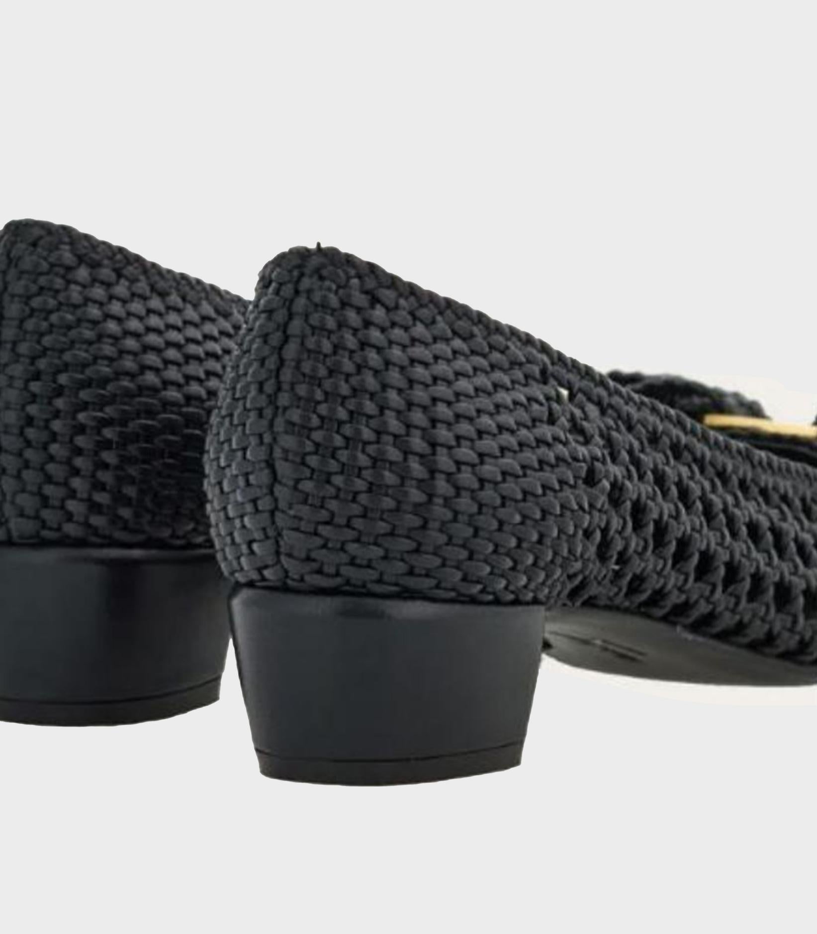 • Luxurious braided leather construction with small woven lines at heel and toe