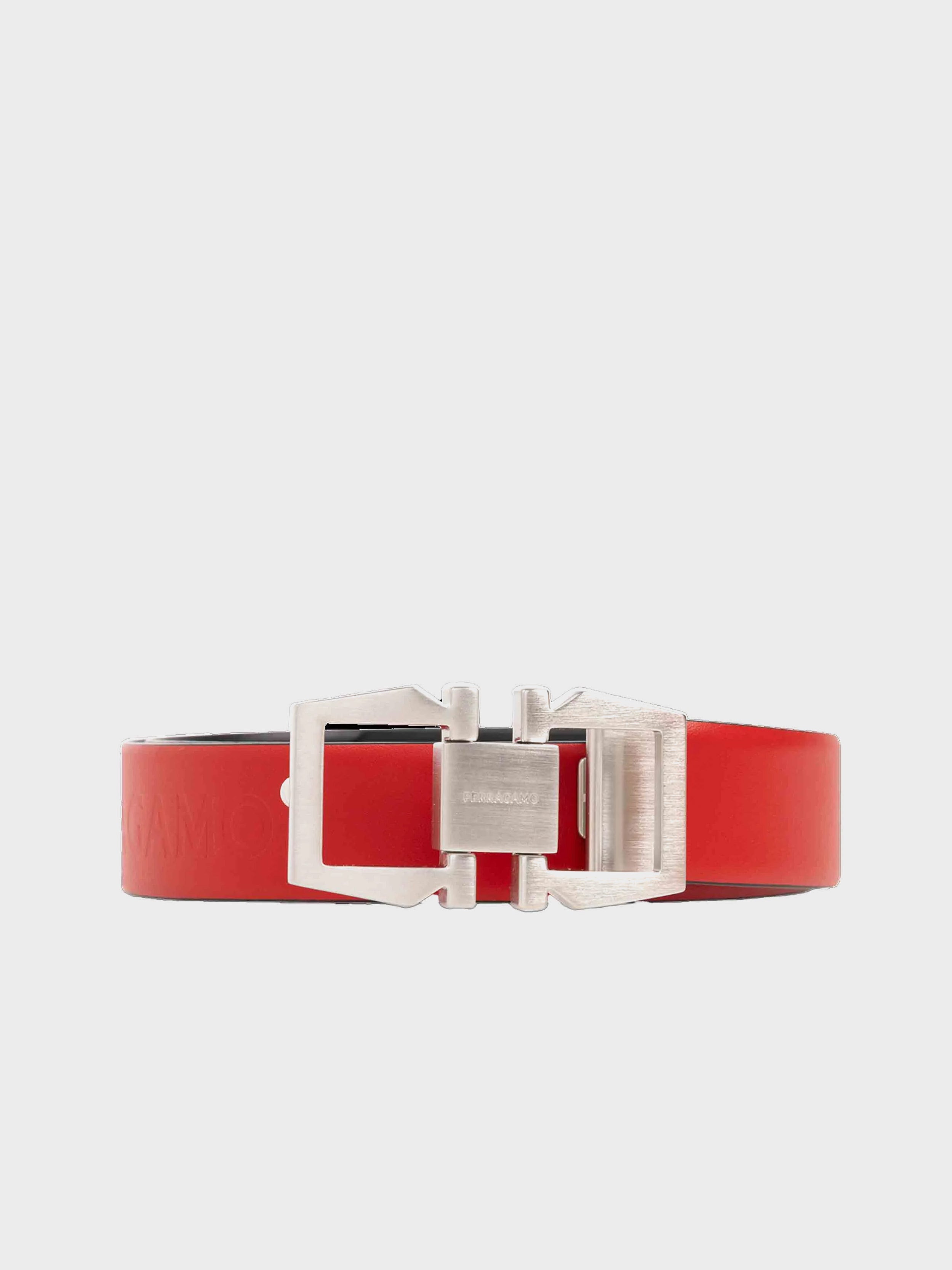 • New contemporary belt complemented by the updated Gancini buckle featuring geometric lines.