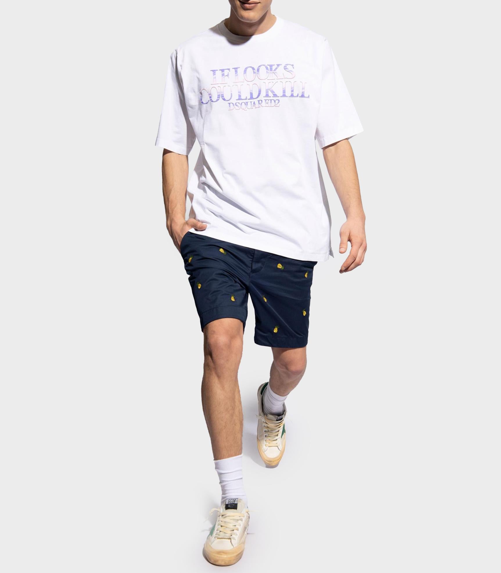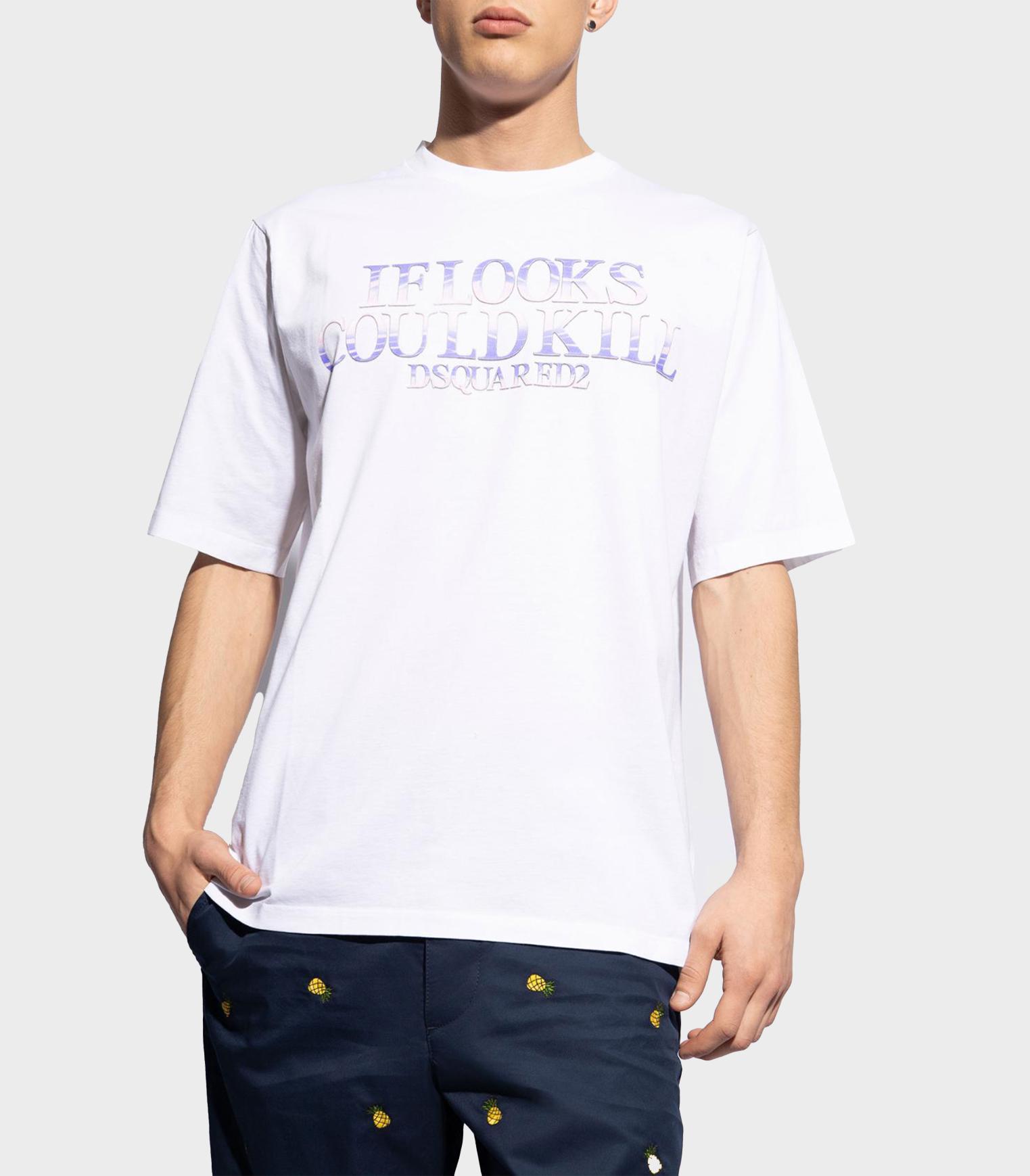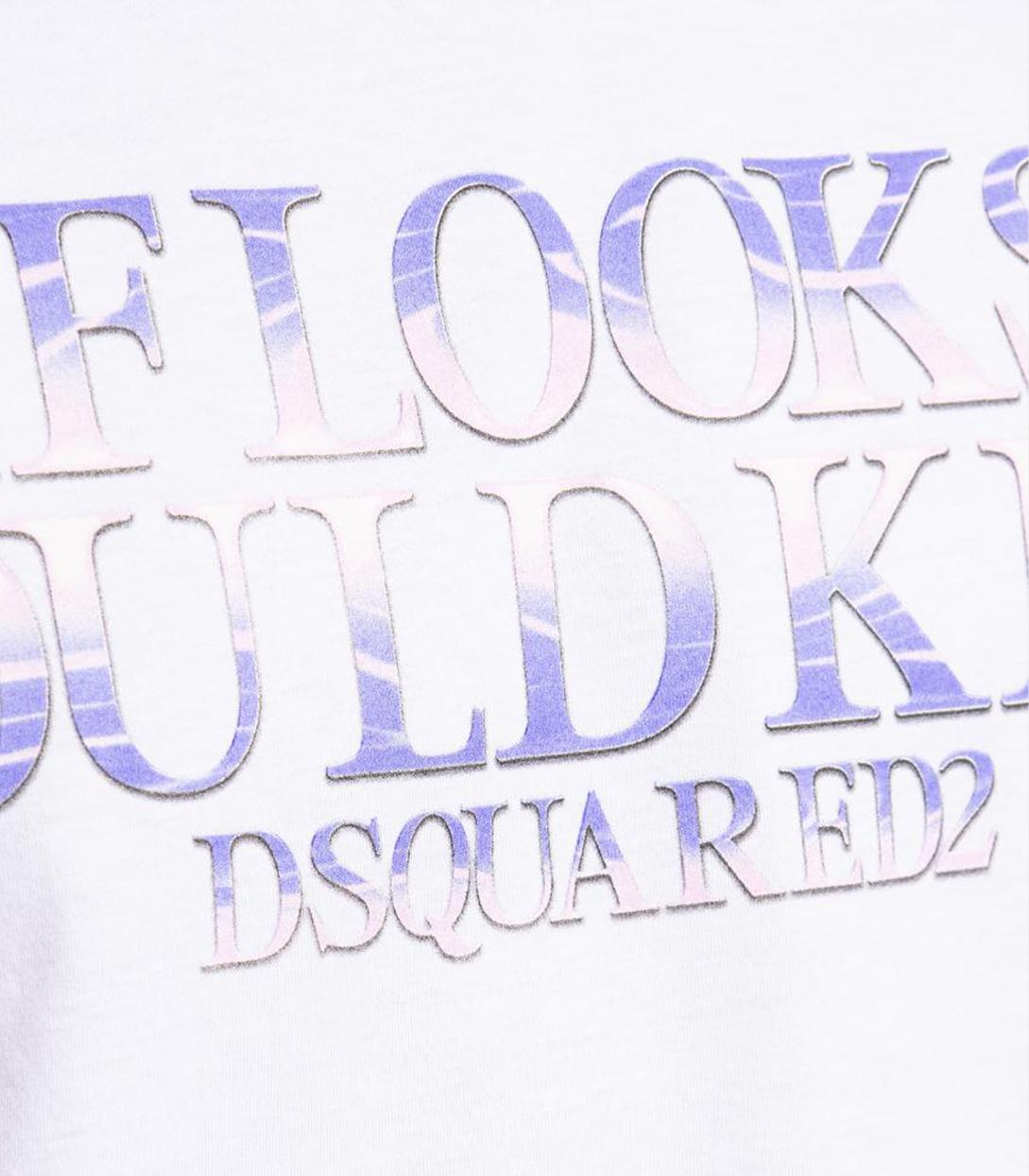 • crewneck T-shirt from Dsquared2. Made of cotton, this style showcases a purple and pink graphic print with the brand's logo, short sleeves and ribbing on the collar.