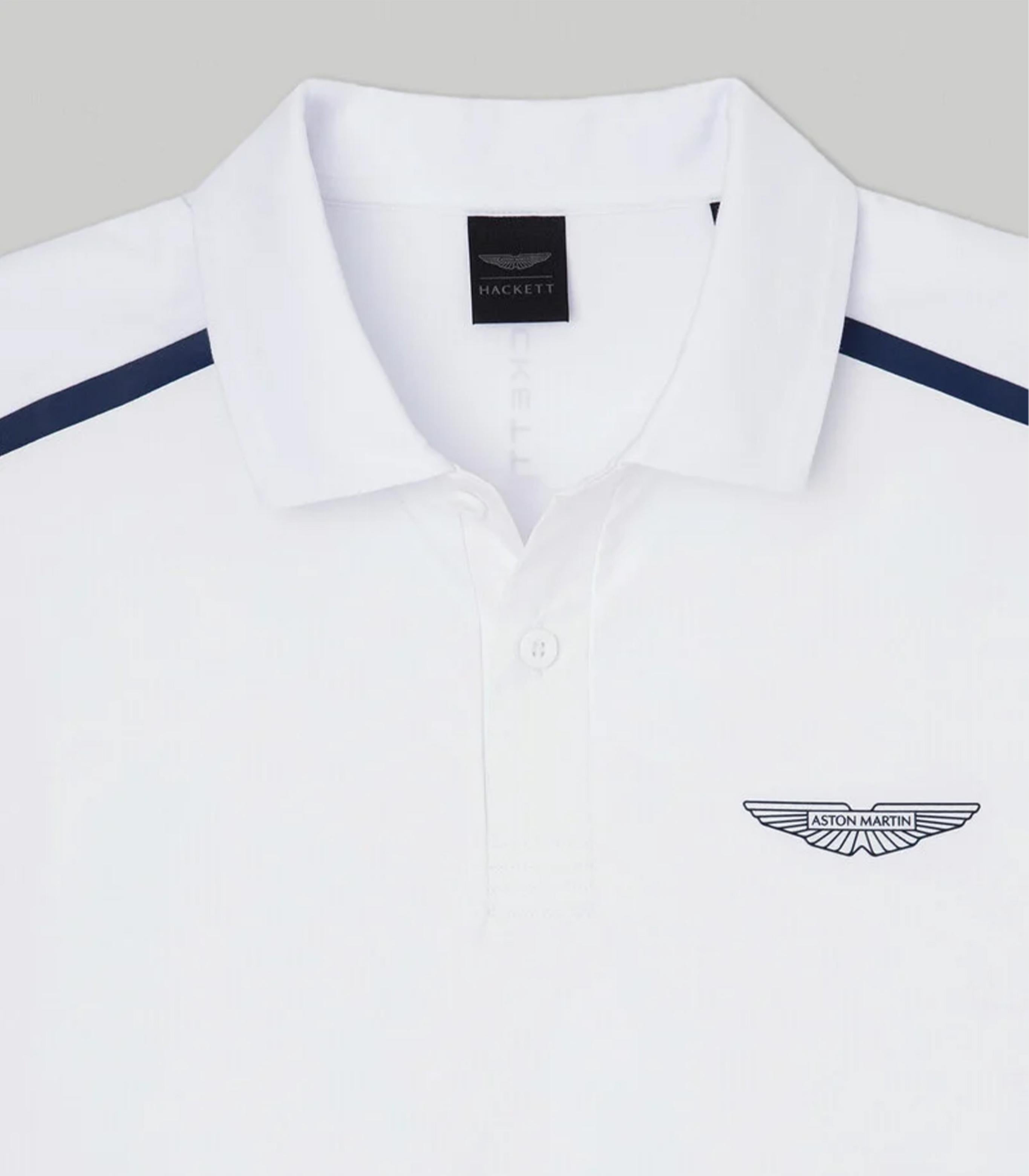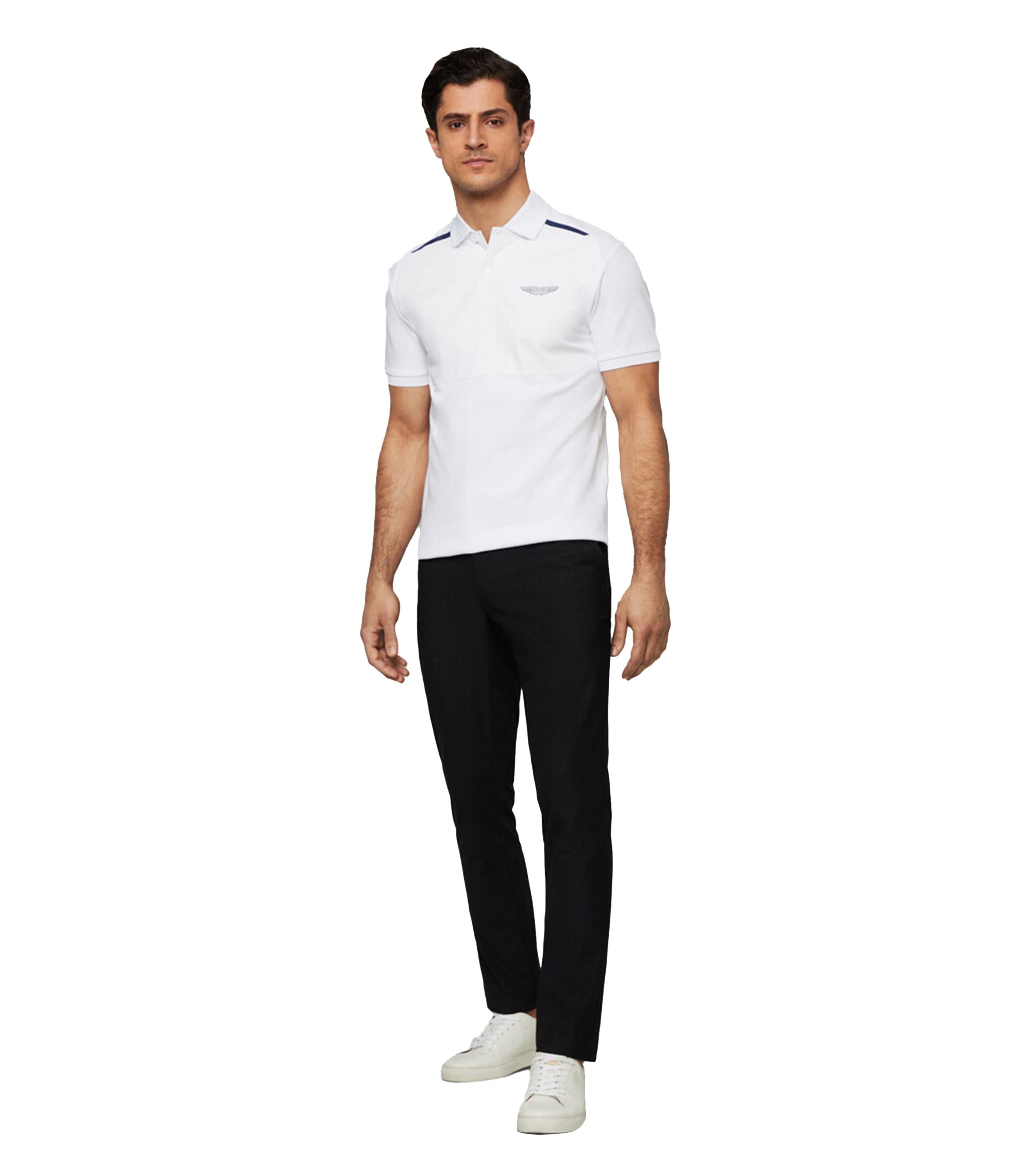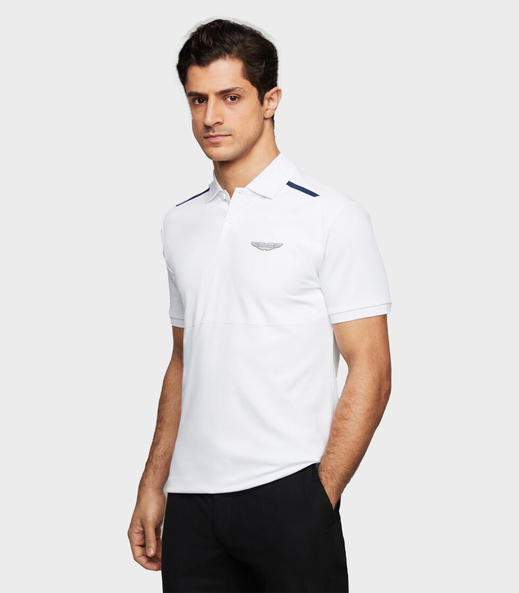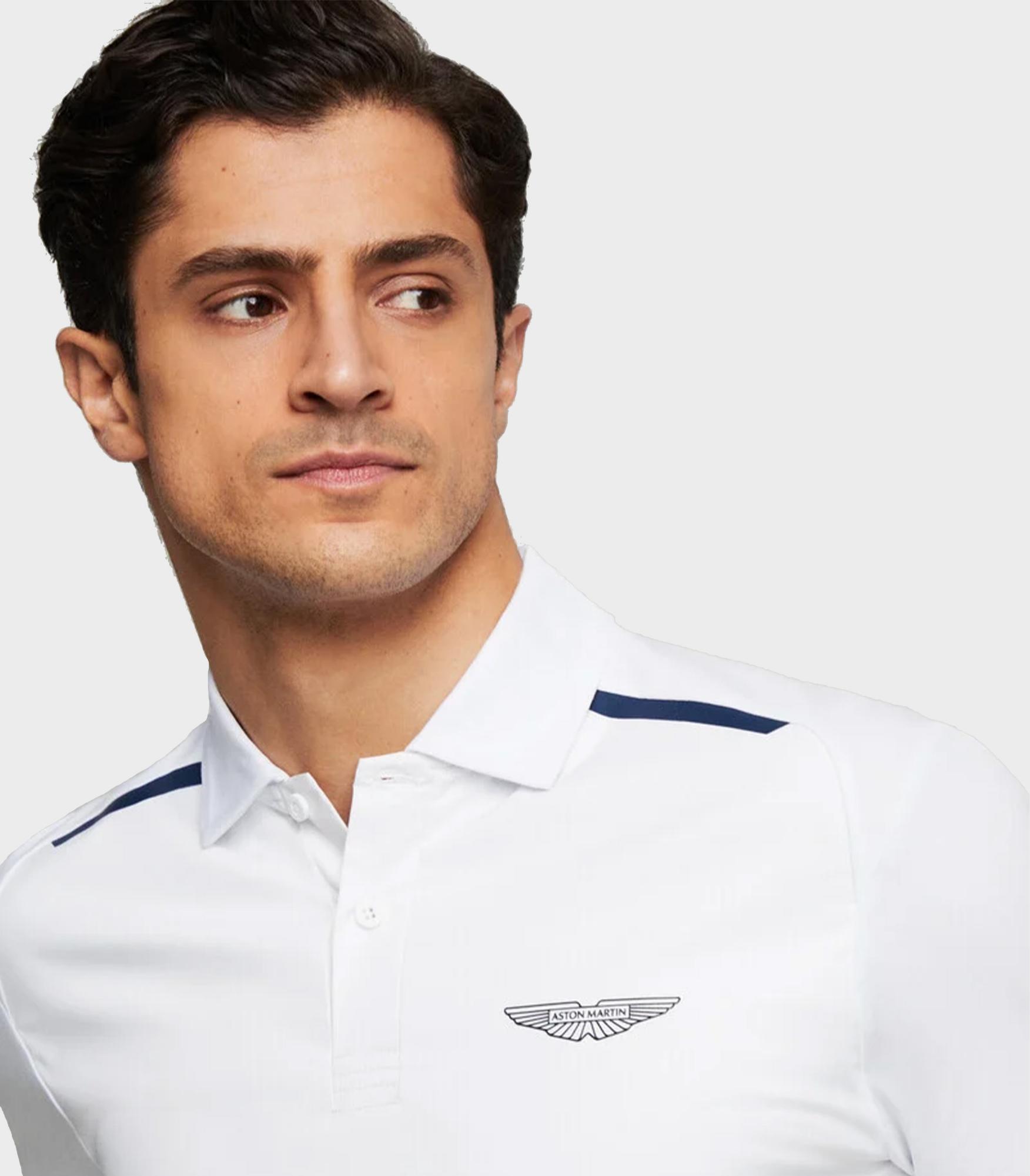 • A superb short-sleeve polo shirt from the ASTON MARTIN RACING collection, which combines the innovative cotton interlock fabric with tonal microfibre on the front. The garment features heat tape inserts on the shoulders and the wings logo which represents this collection.