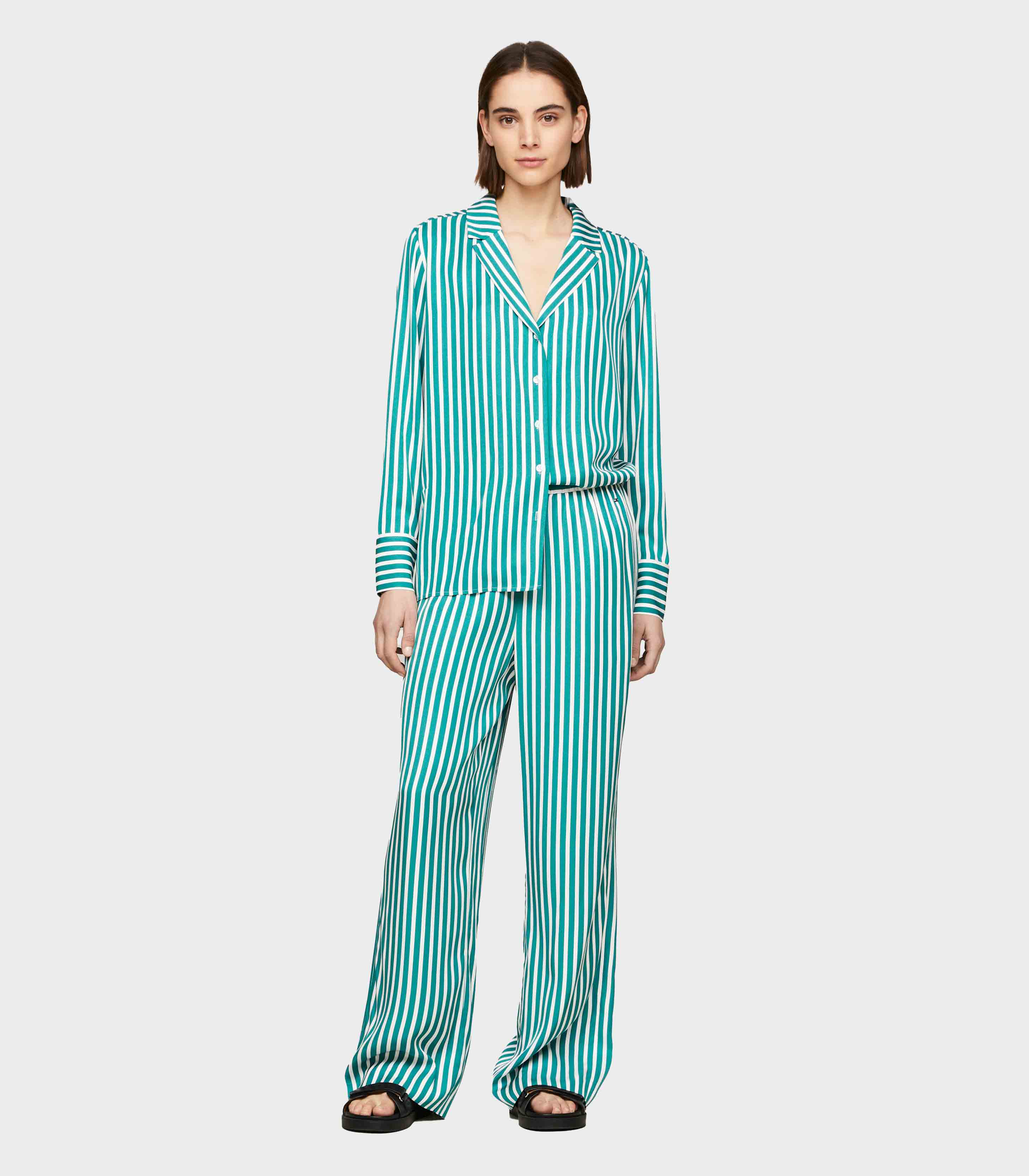 • Tommy Hilfiger - Women's Relaxed Wide Leg Stripe Pull-On Trousers