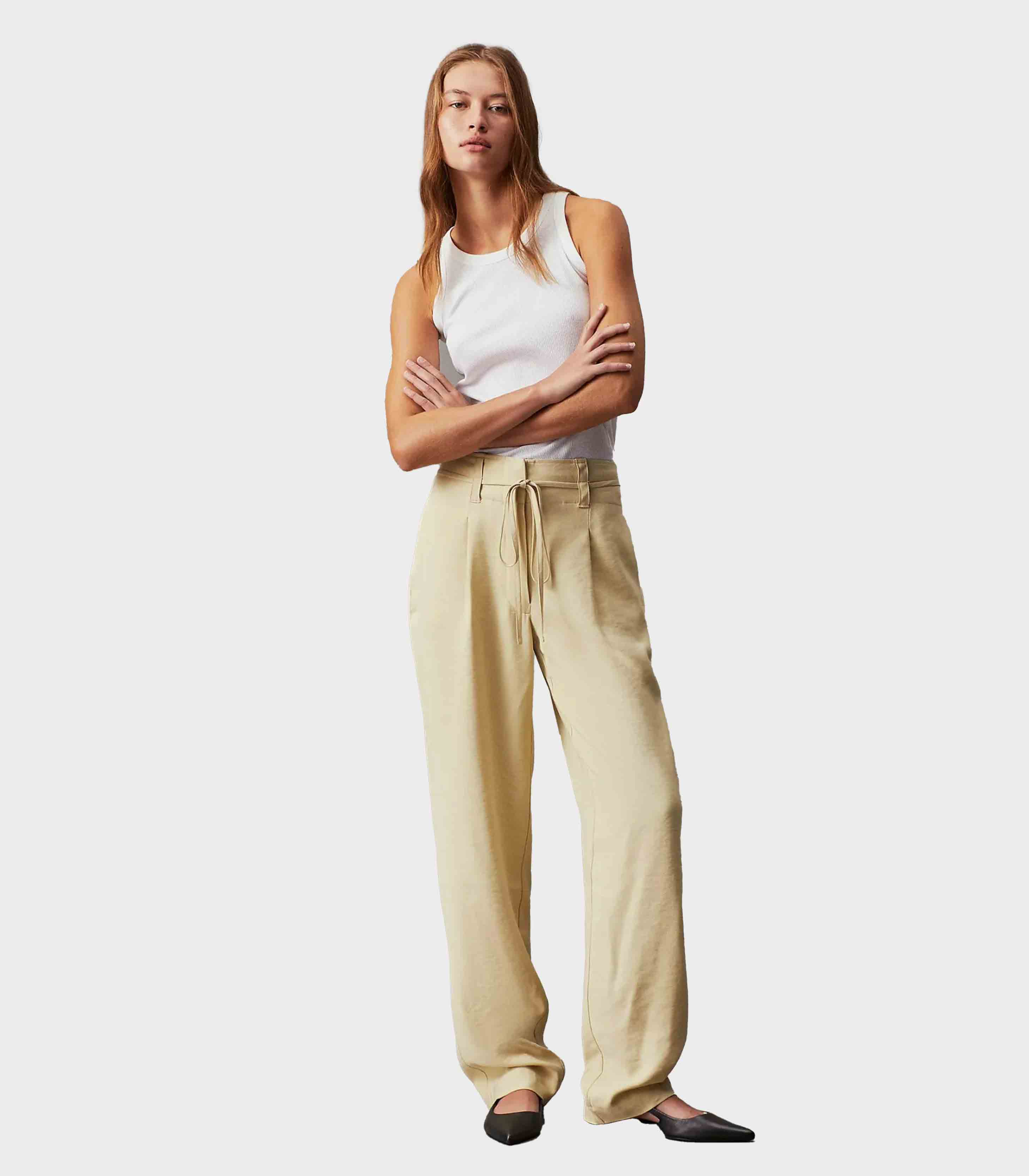 Calvin klein jeans - waist ties tapered twill pant , l , green haze , style j20j223119