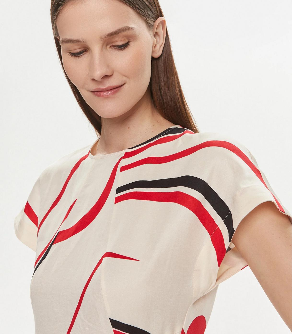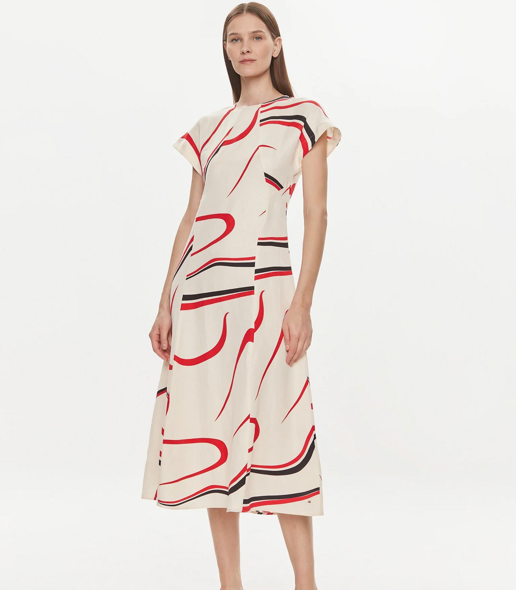 Tommy hilfiger - ribbon f&f ss long dress , 38 , big ribbon print/ ecru , style ww0ww42031