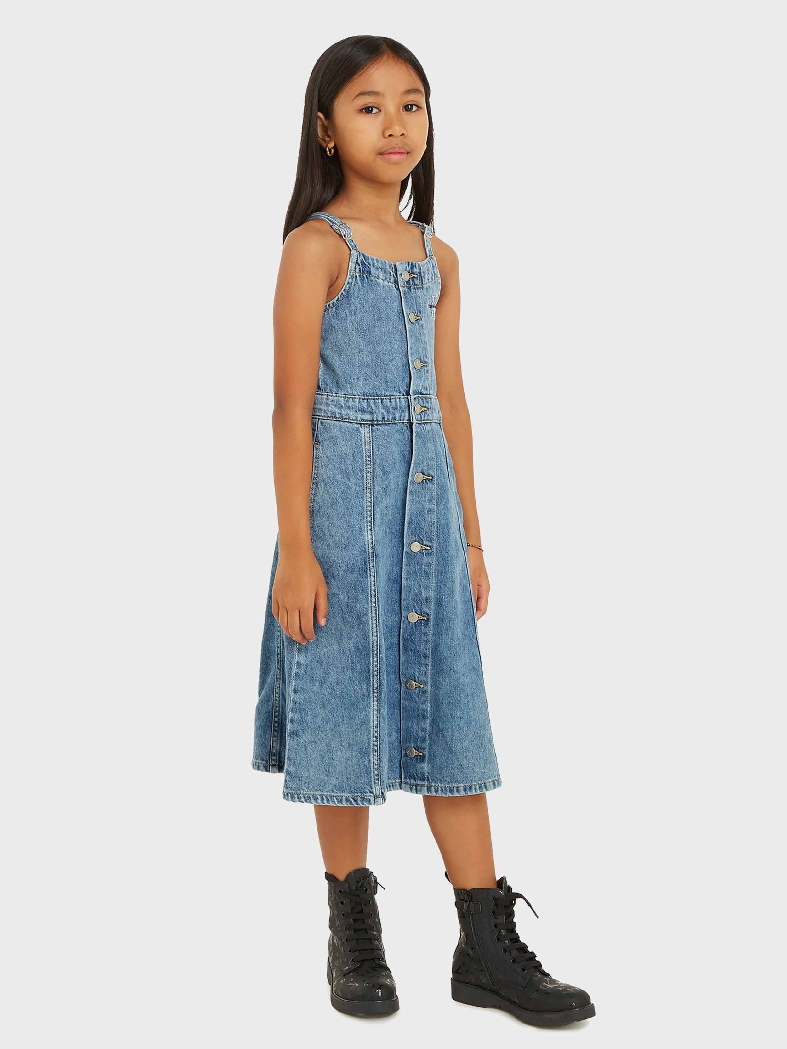 Calvin Klein - MARBLE BLUE LW DENIM STRAP DRESS , 6 , Mid Marble Blue , Style IG0IG02397