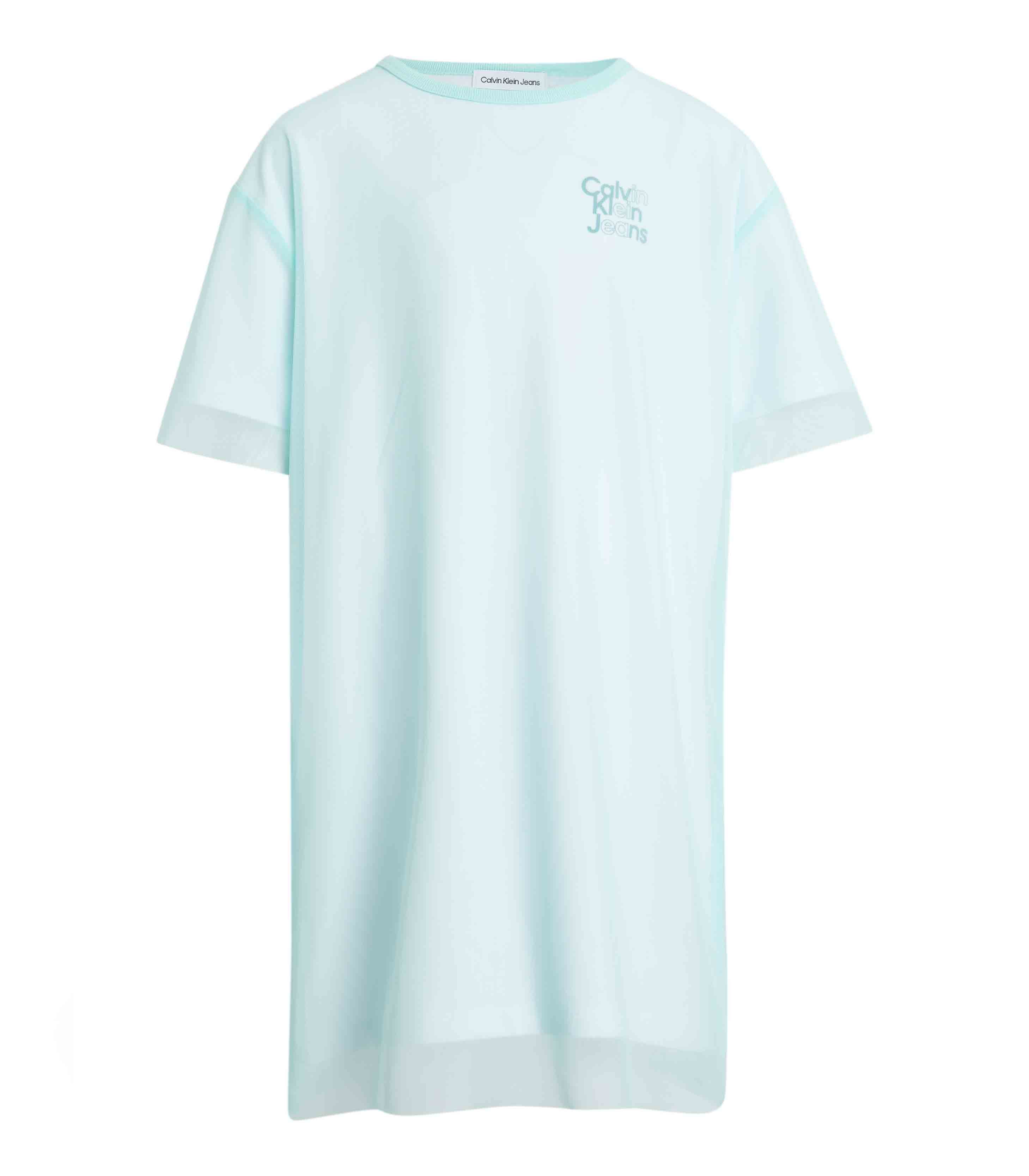 Calvin klein - gradient lg mesh layer ss dress , 14 , blue tint , style ig0ig02469