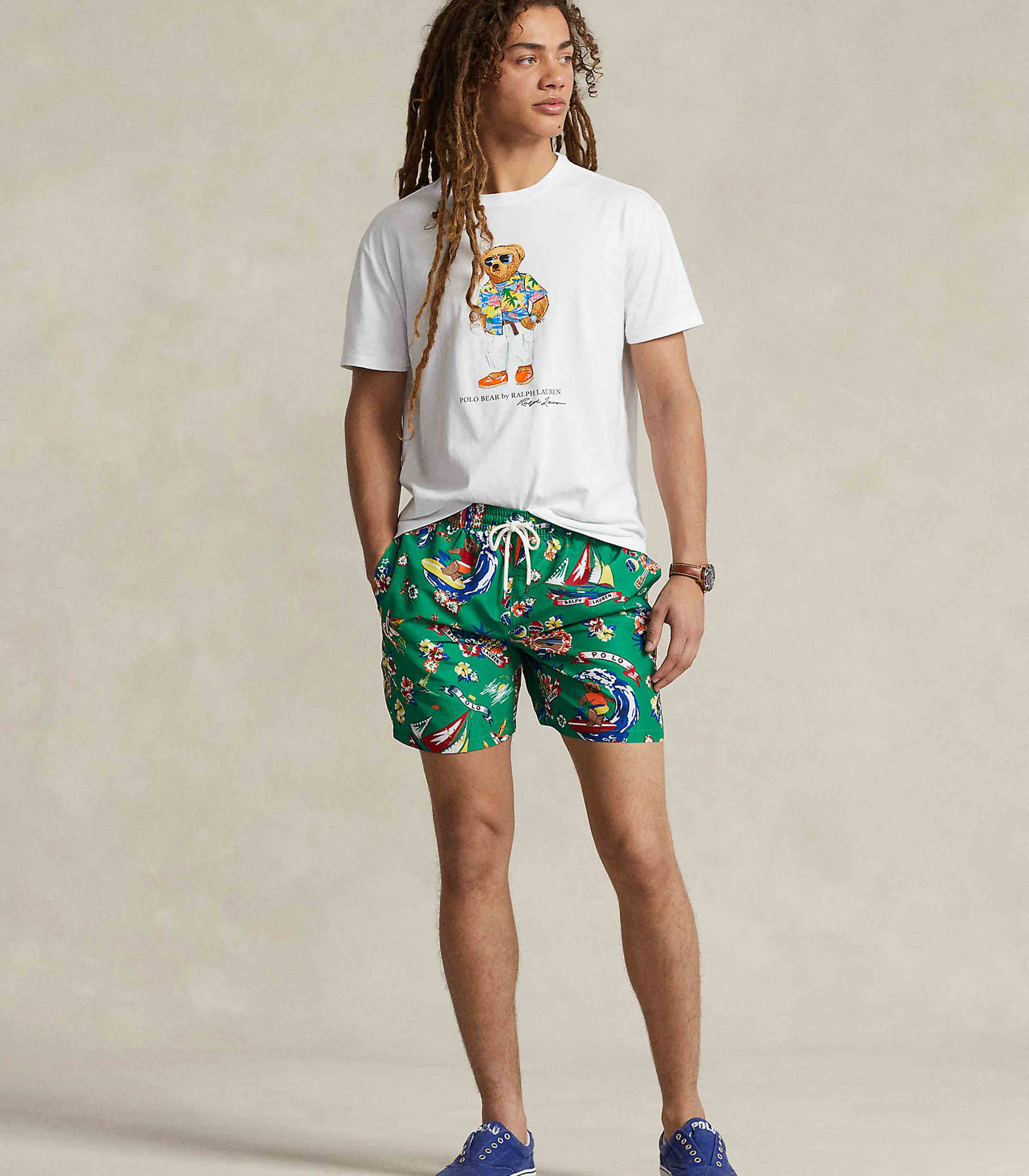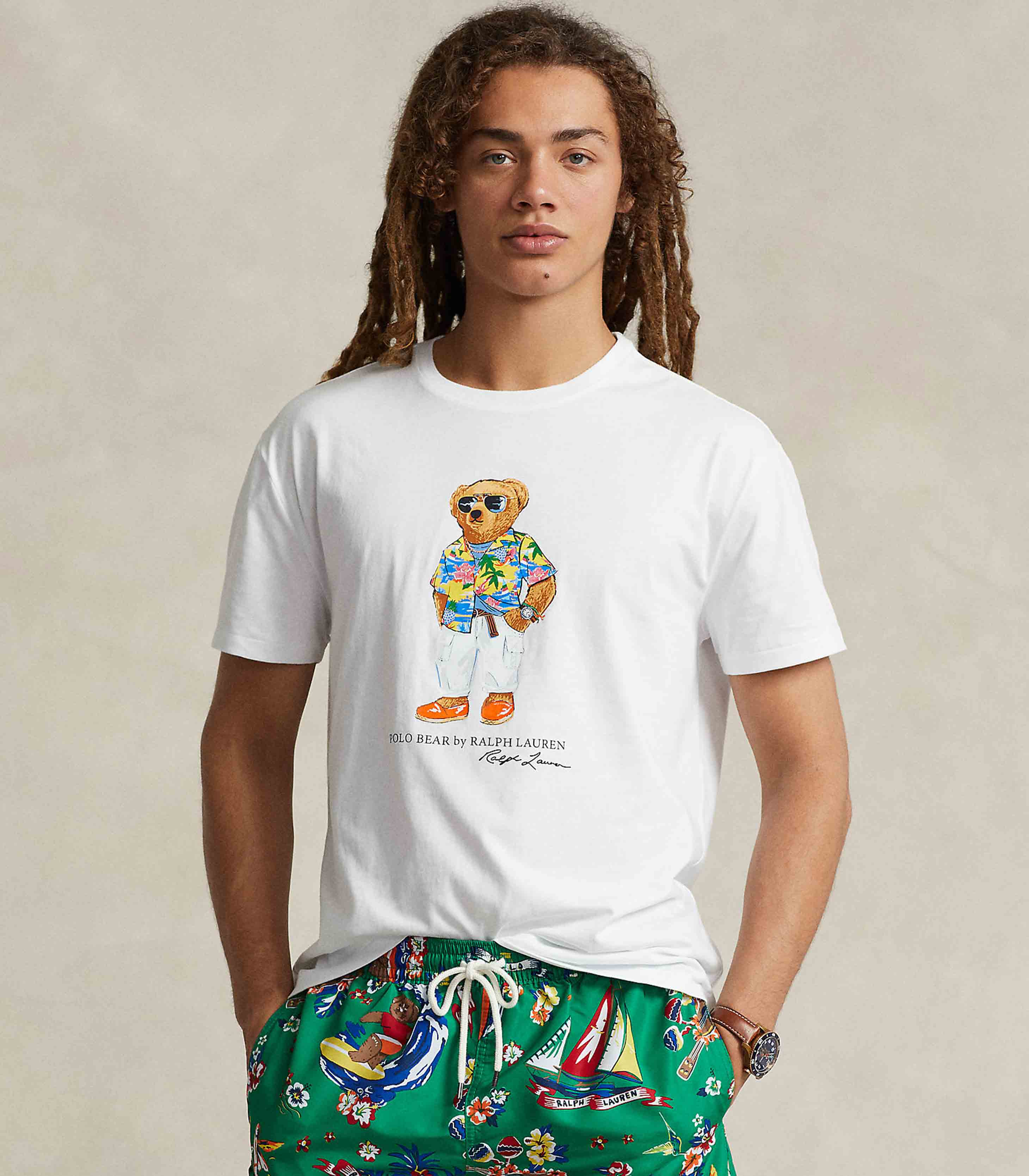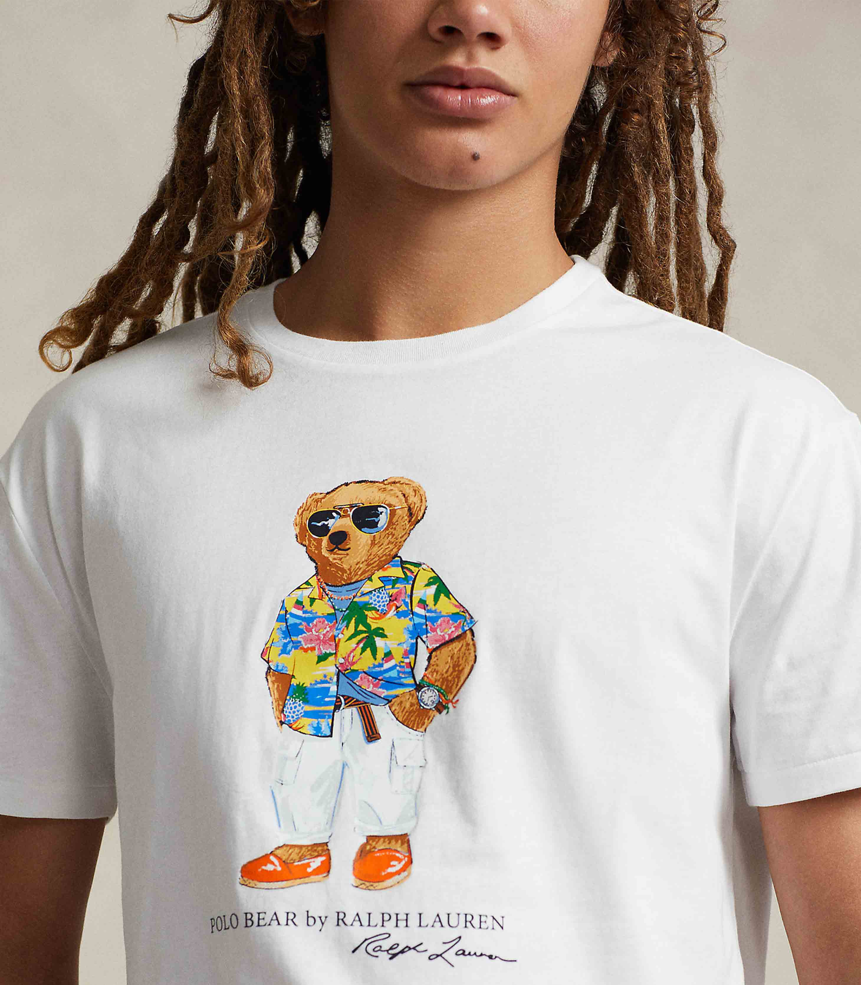• Polo Bear, “Polo Bear by Ralph Lauren,” and “Ralph Lauren” script printed at the center front.