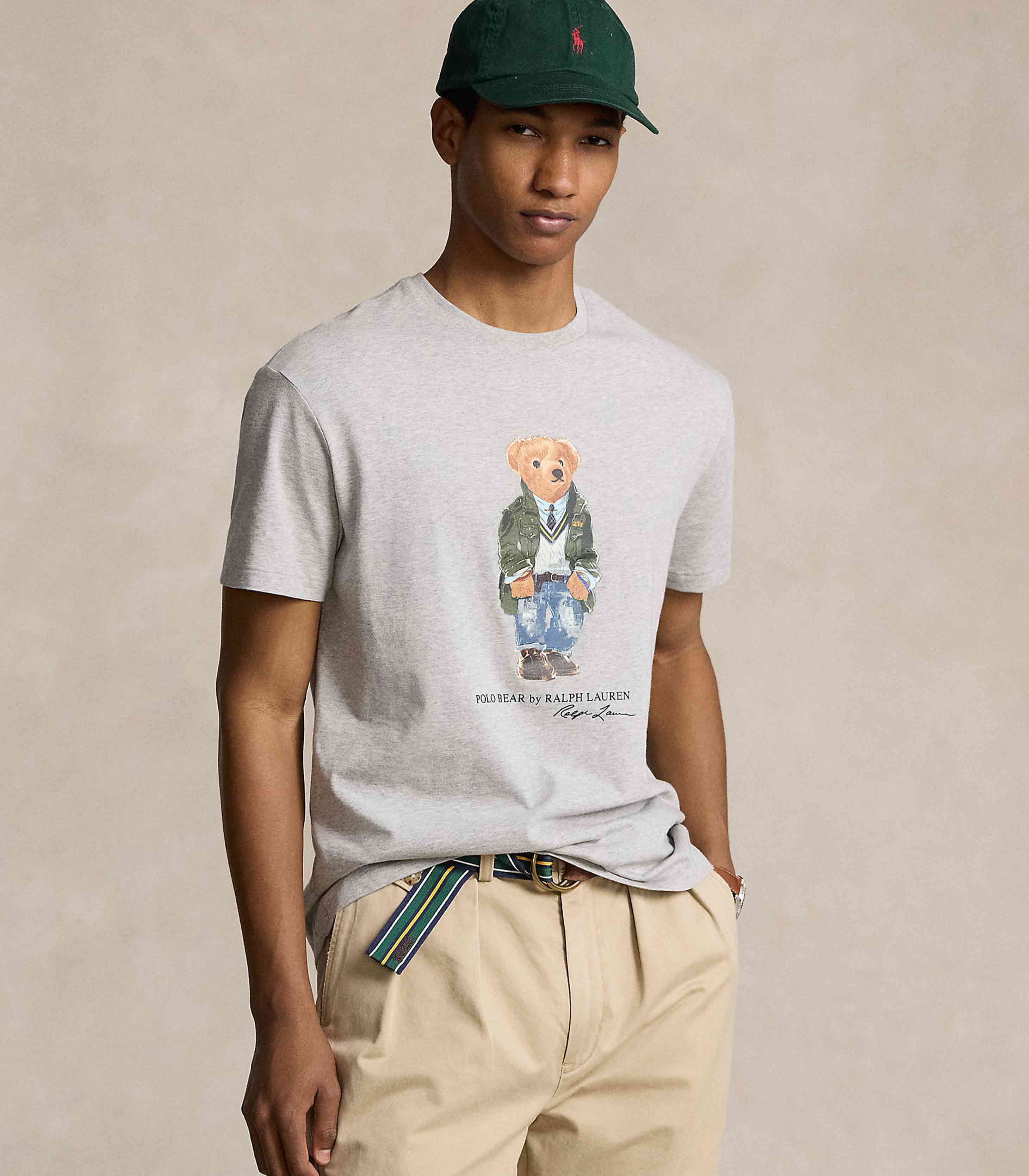 • Polo Bear, “Polo Bear by Ralph Lauren,” and “Ralph Lauren” script printed at the center front.