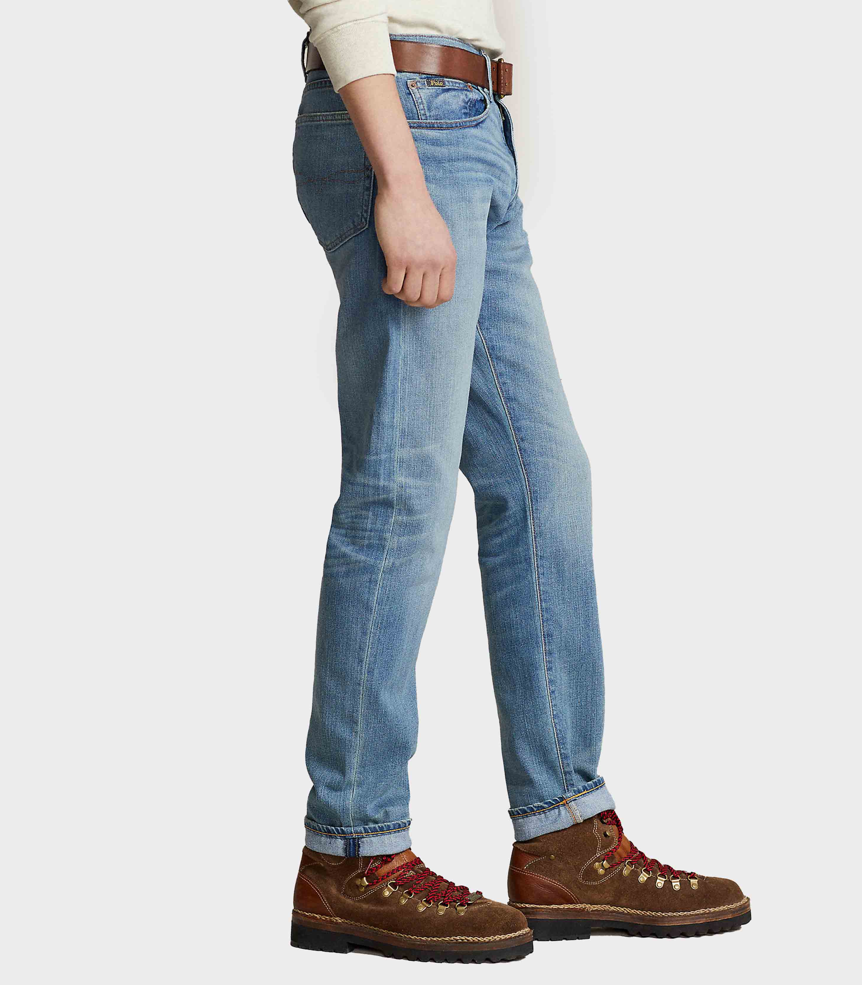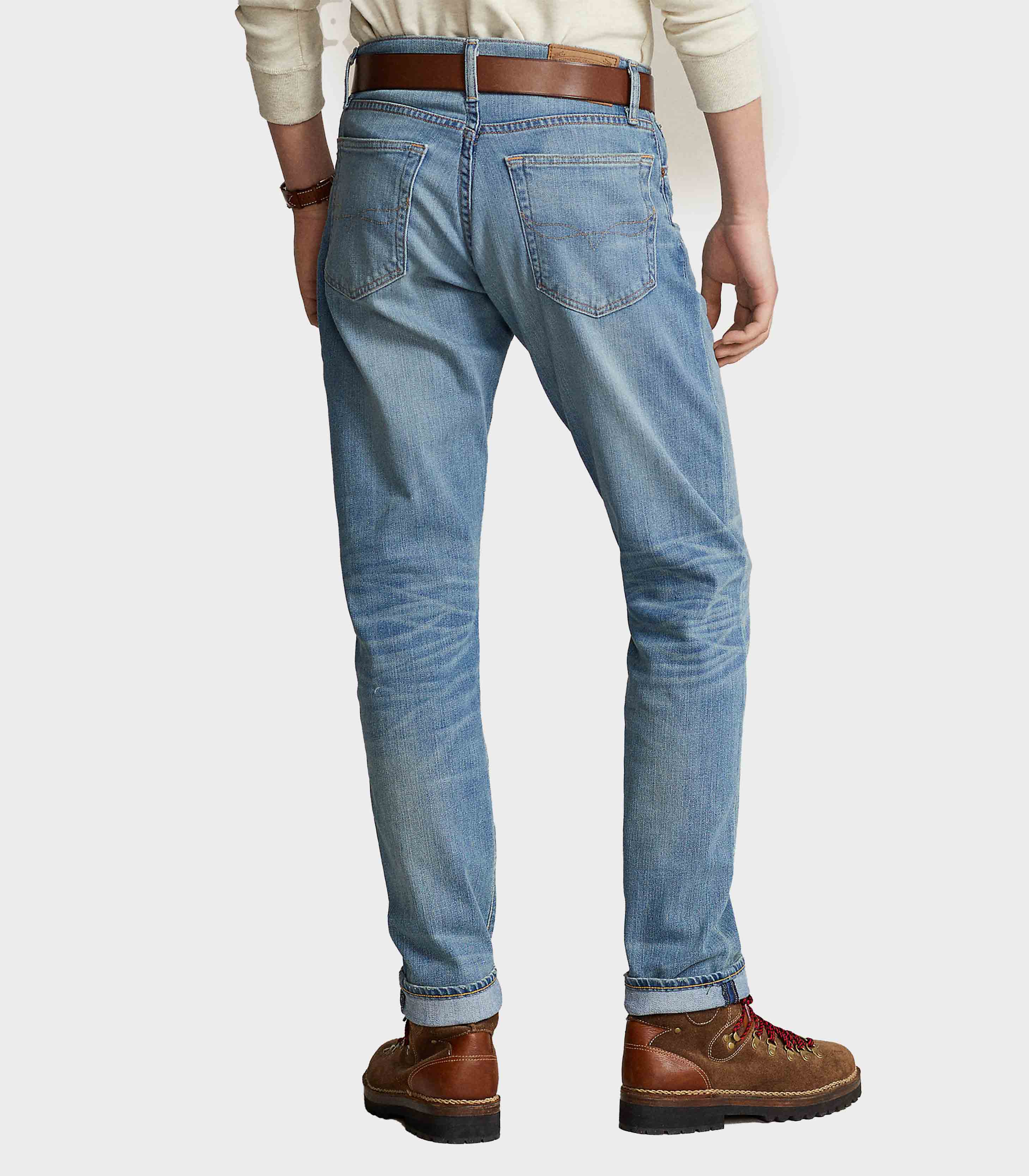 • Five-pocket styling with signature metal rivets. "Polo" label at the coin pocket.
