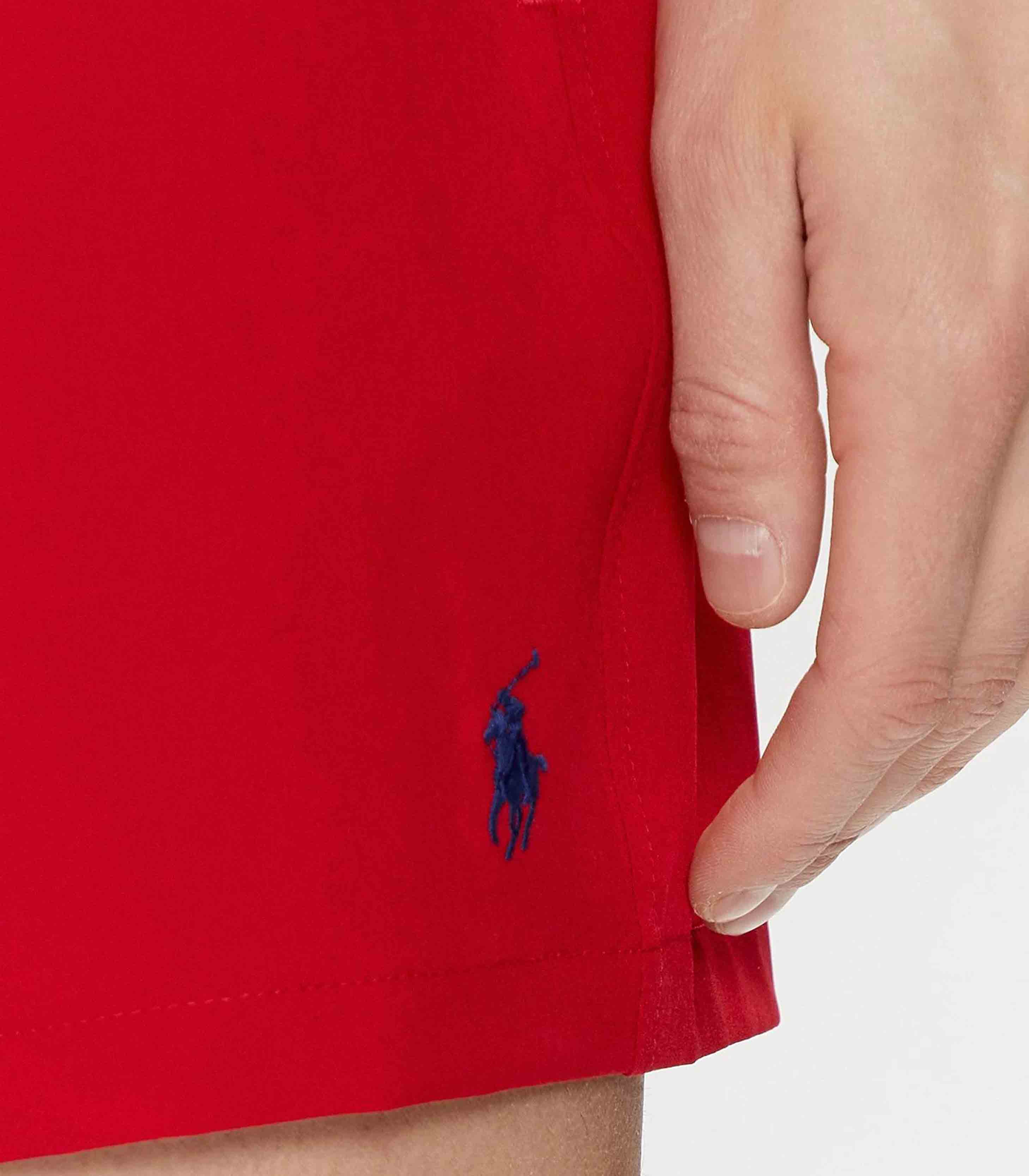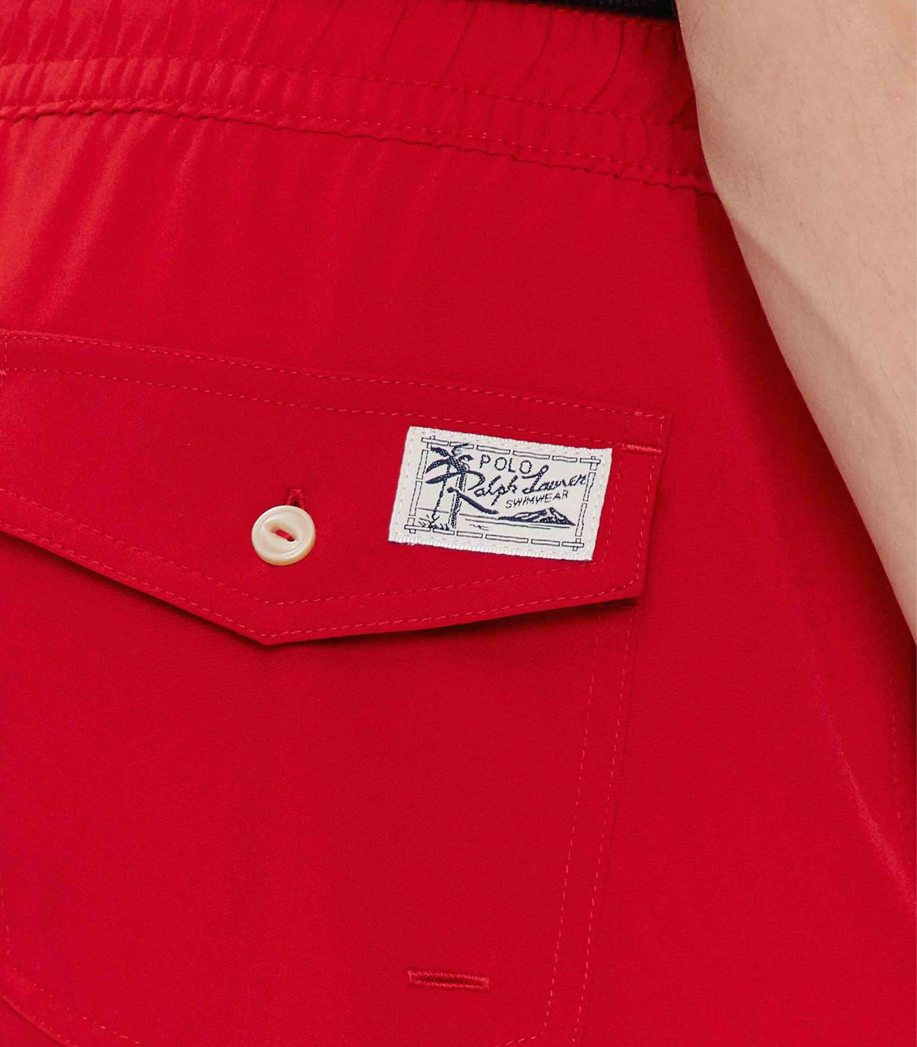 • Side on-seam pockets. Back right buttoned pocket. “Polo Ralph Lauren Swimwear” label at the back pocket.