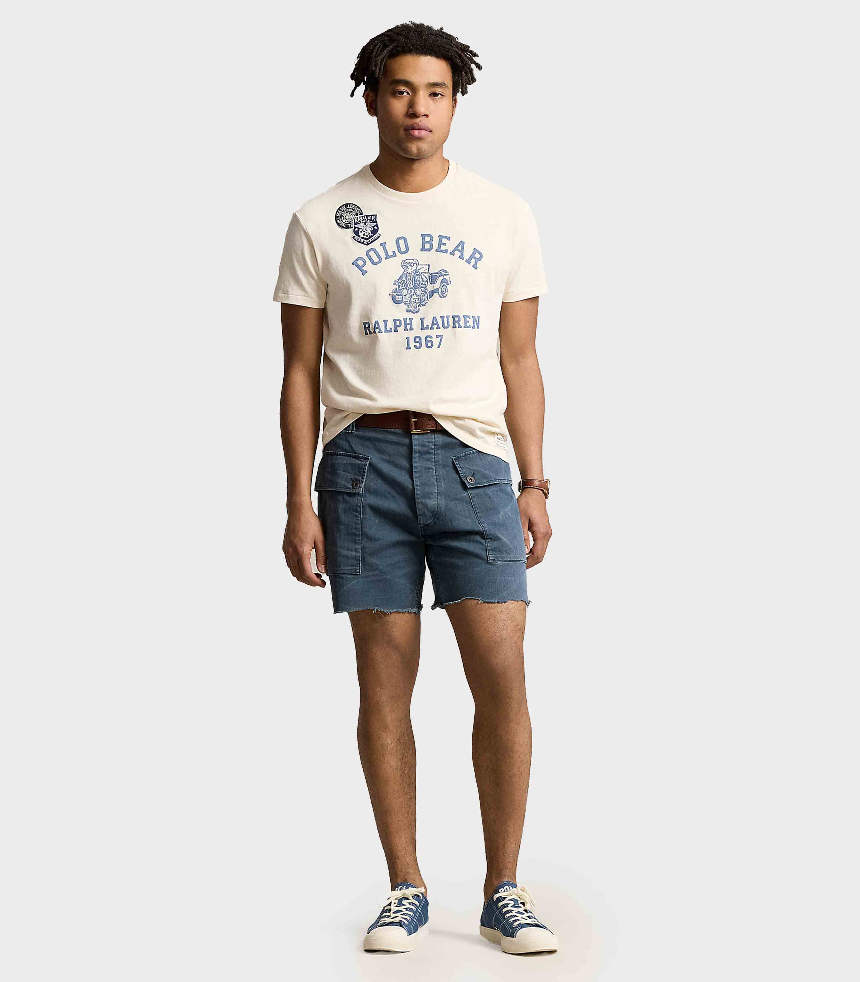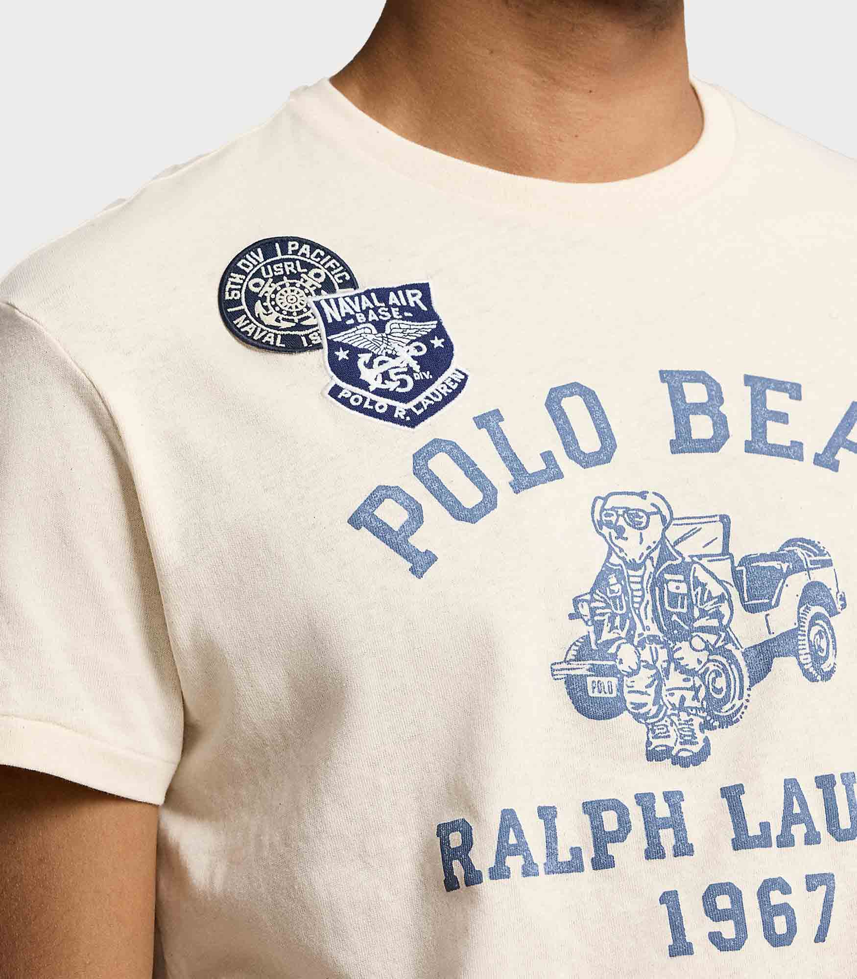 • This cotton T-shirt features our beloved Polo Bear, as well as surplus-inspired patches and stencil prints throughout.