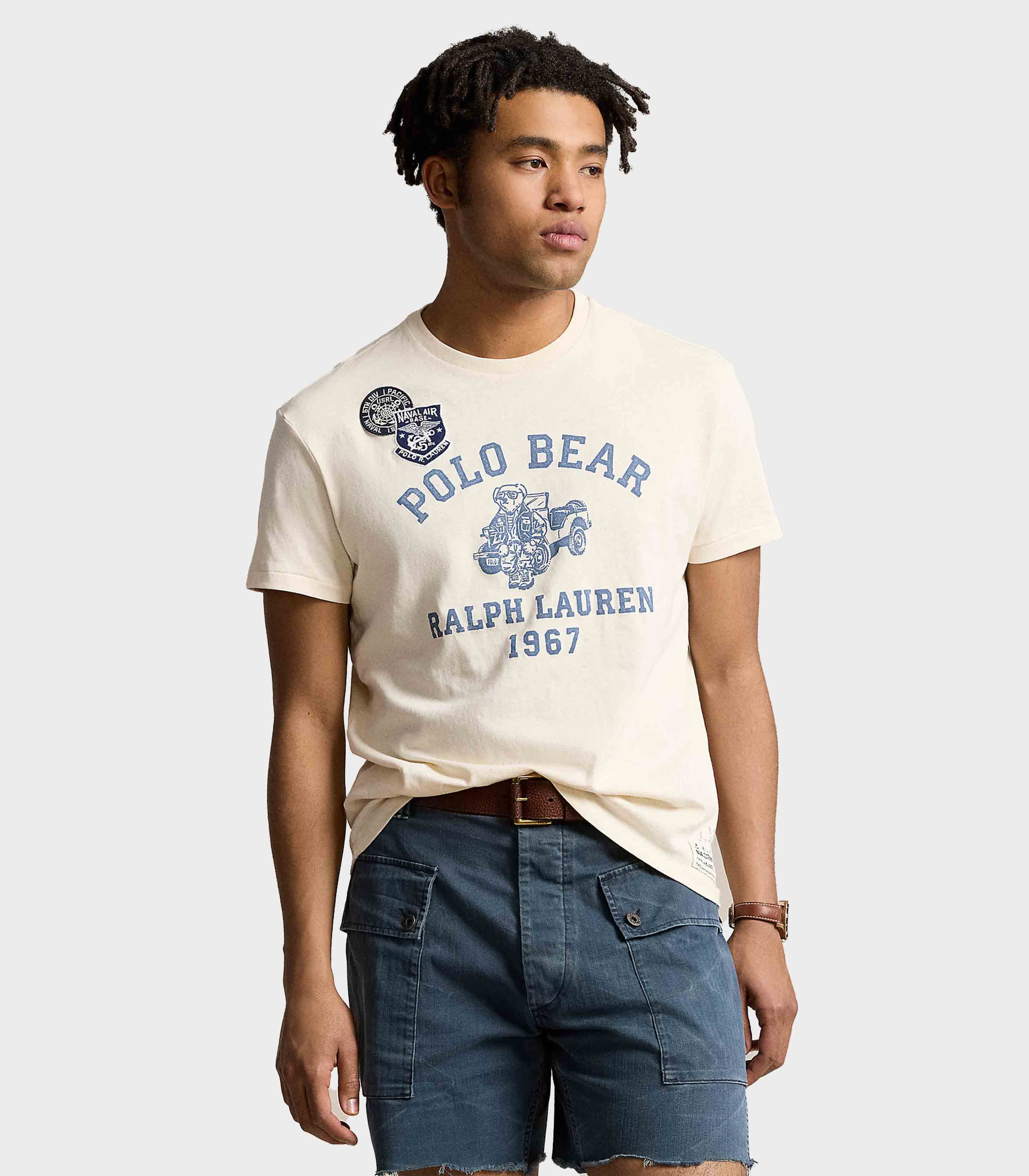 • "Polo Bear," "Ralph Lauren 1967," and our Polo Bear printed at the center front. Signature patches at the right chest. "R.L.P.C." label at the left hem. Stencil-printing throughout.