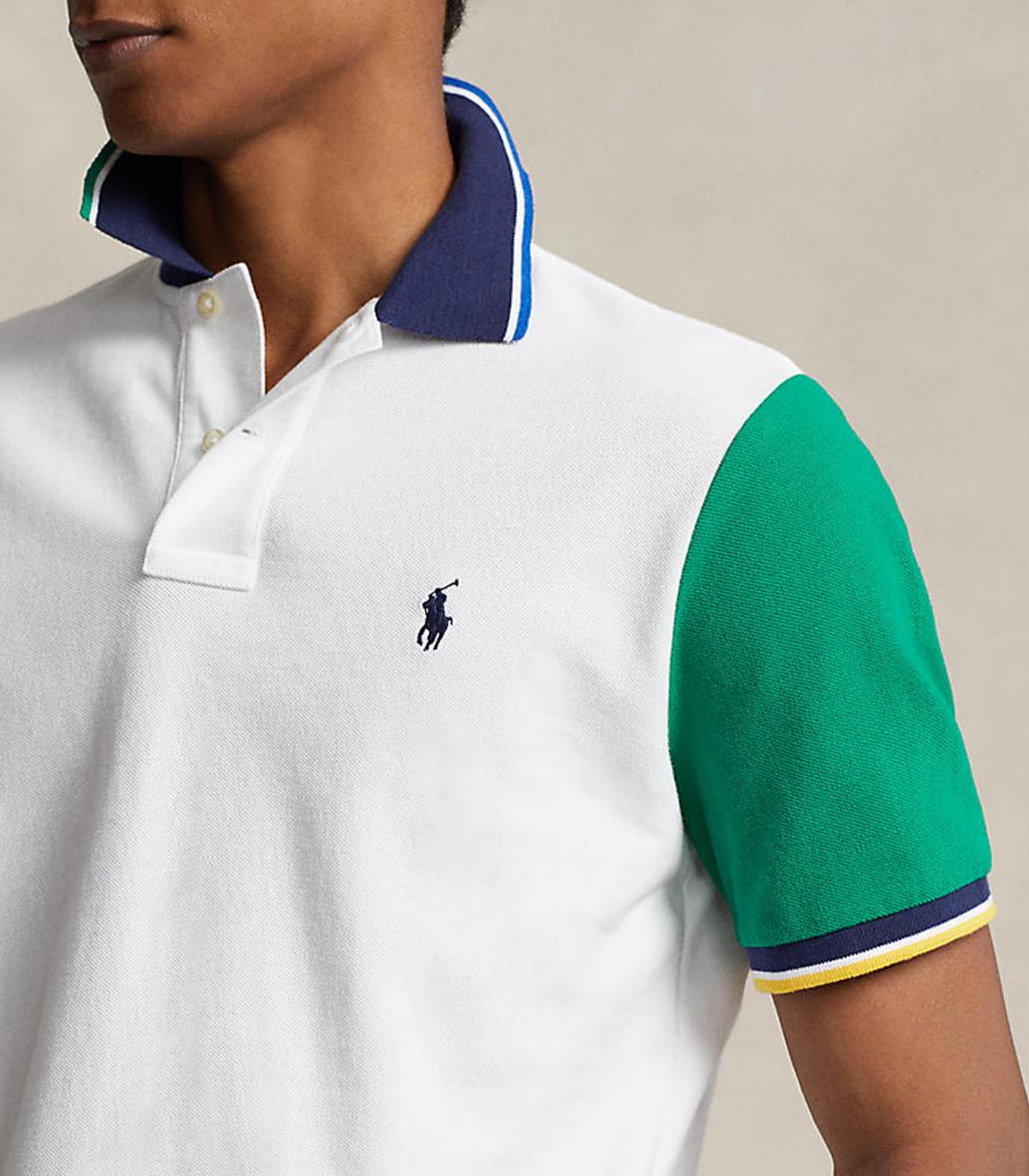 • An American style standard since 1972, the Polo shirt has been imitated but never matched. Over the decades, Ralph Lauren has reimagined his signature style in a wide array of colors and fits, yet all retain the quality and attention to detail of the iconic original. This color-blocked version is made with our highly breathable cotton mesh, which offers a textured look and a soft feel.