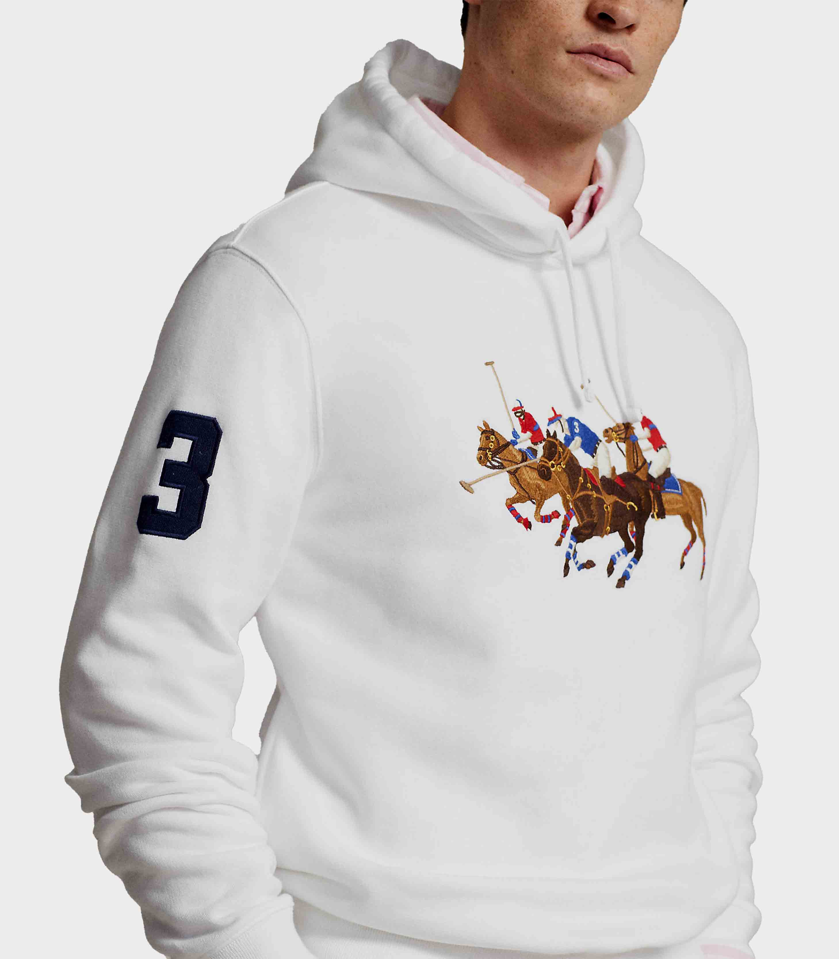 • Made with a soft cotton blend, this hoodie features our signature Triple-Pony logo and a “3” patch, representing the number typically worn by a polo team’s strongest player.