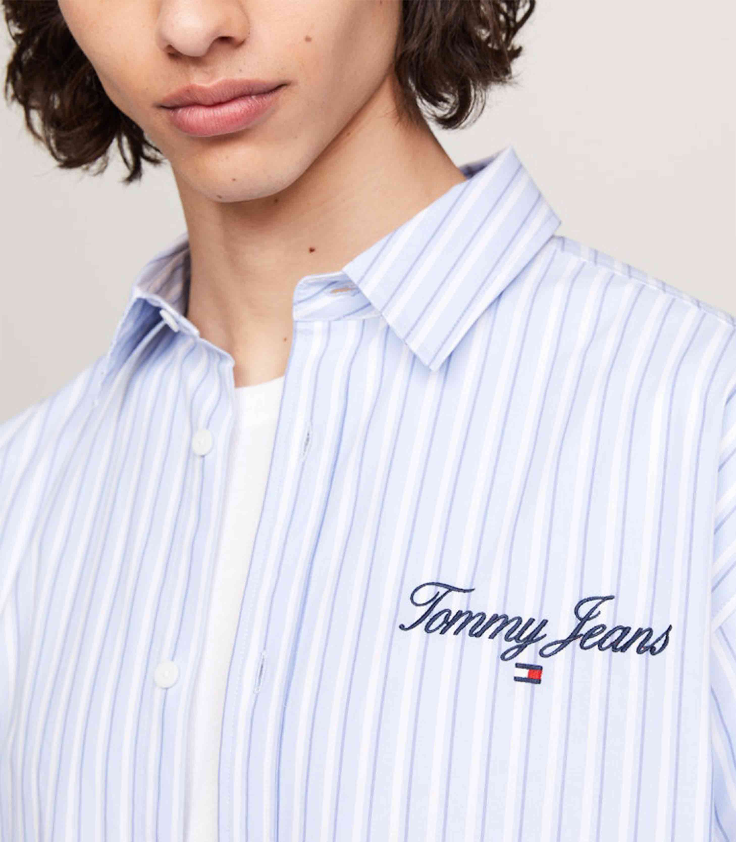 Tommy hilfiger jeans - tjm rlx stripe luxe shirt , xs , moderate blue stripe , style dm0dm18955