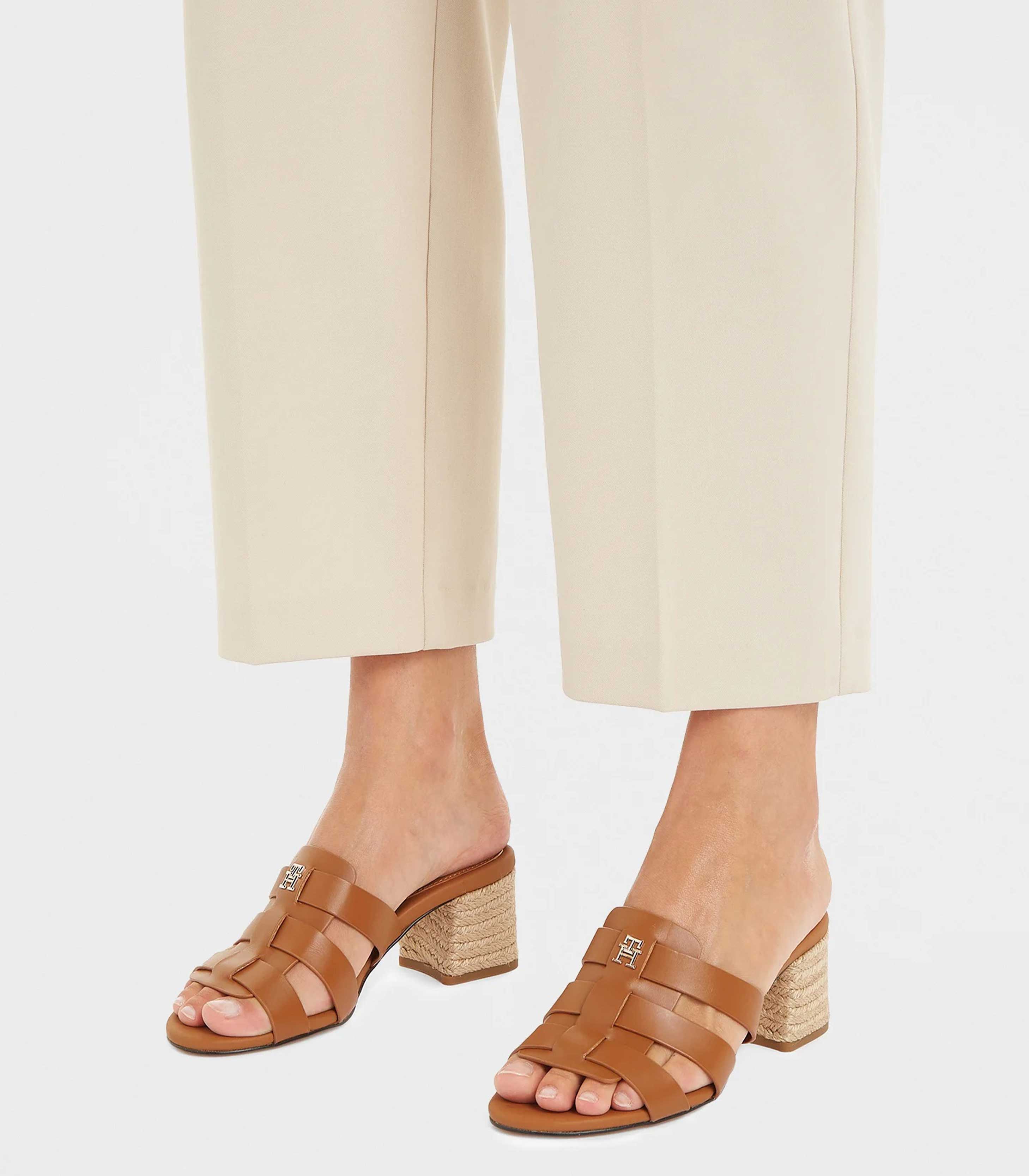 • Tommy Hilfiger - Block Mid Heel Leather Sandal