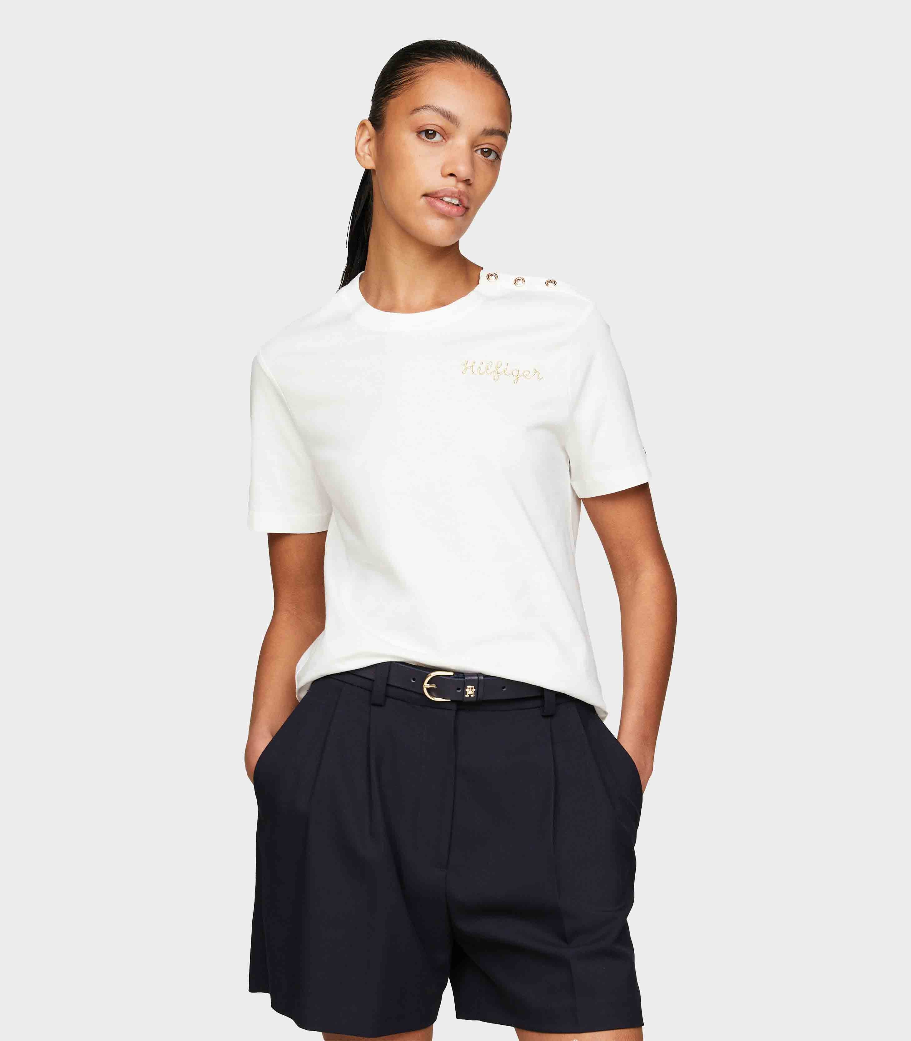 Tommy Hilfiger - Women's Gold Button Stripe Tshirt