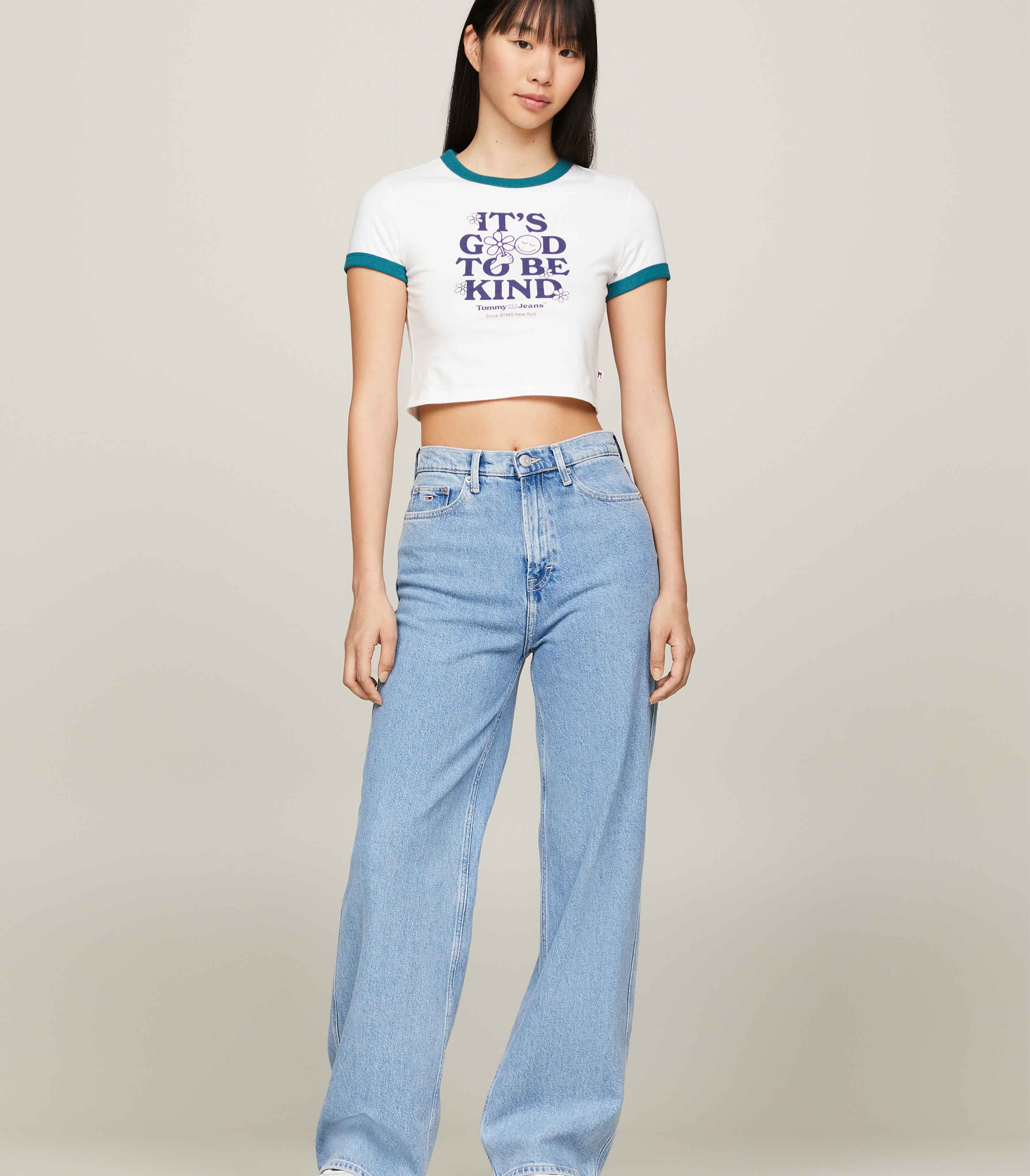 Tommy Hilfiger Jeans -Women's Slim Fit Cropped Slogan T - Shirt