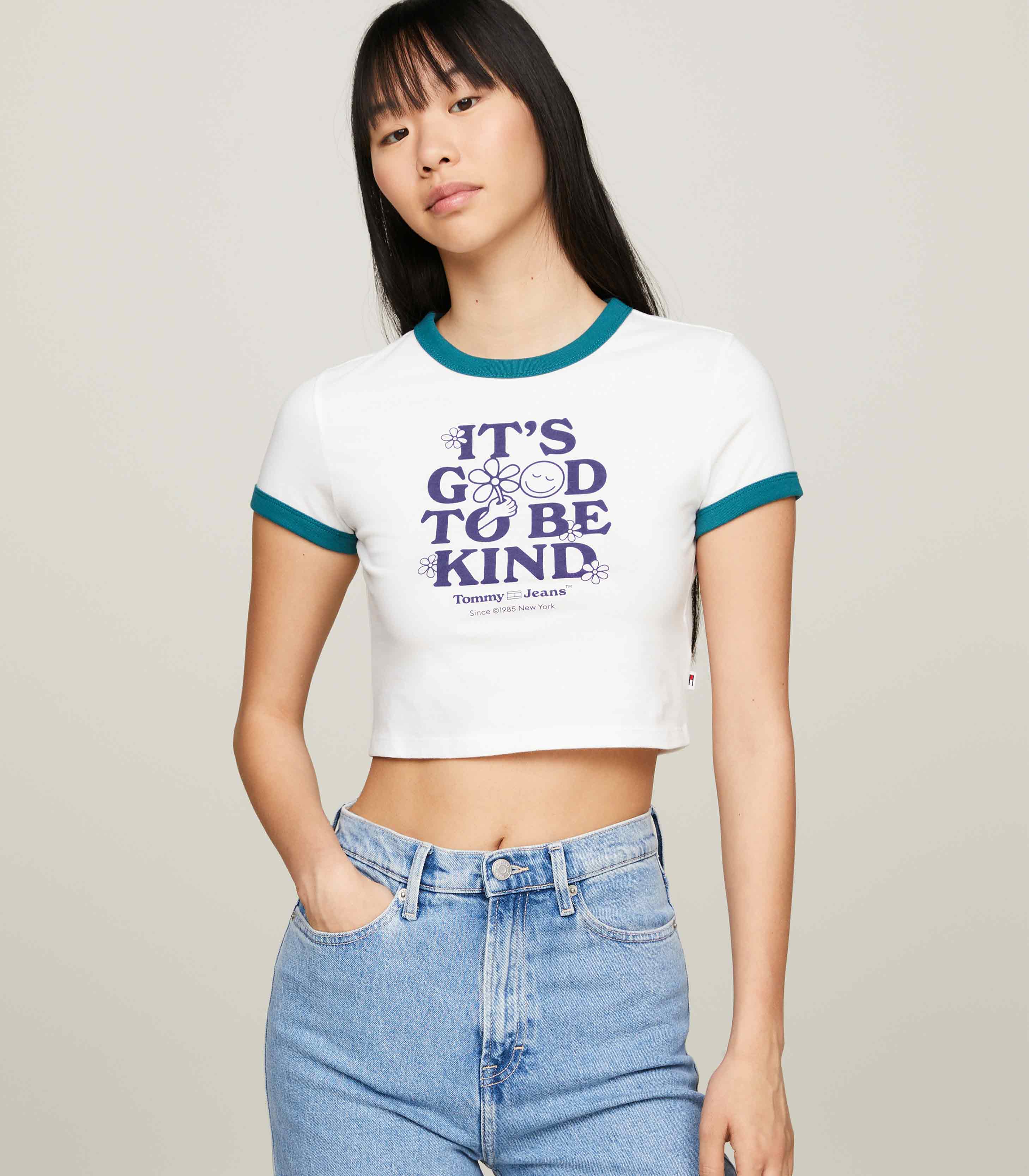 • Tommy Hilfiger Jeans -Women's Slim Fit Cropped Slogan T - Shirt
