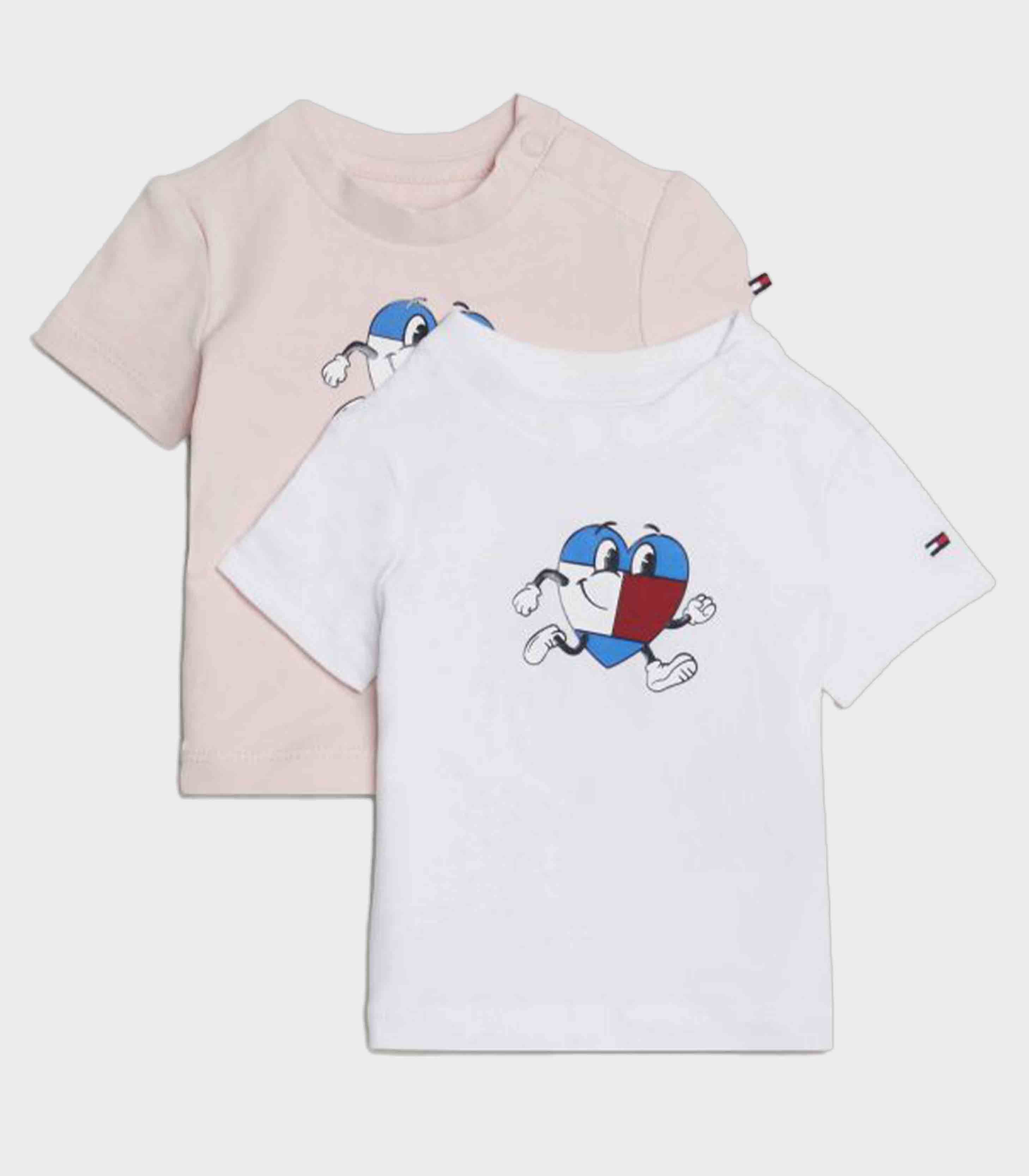 Tommy hilfiger - baby flag tee 2 pack giftbox , 80 , whimsy pink , style kn0kn01820