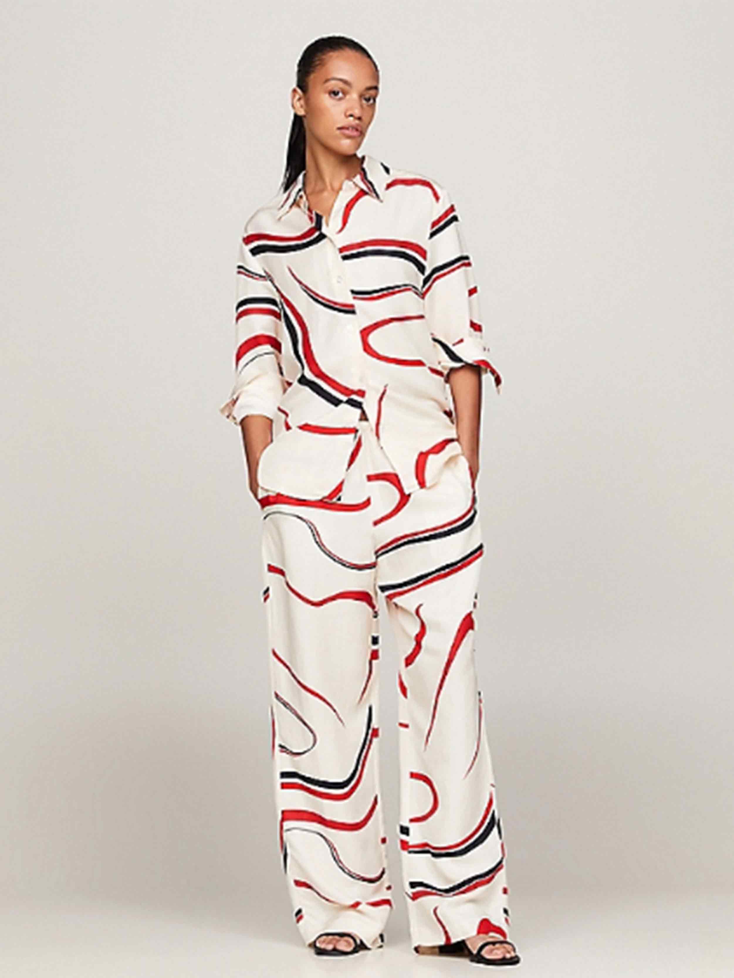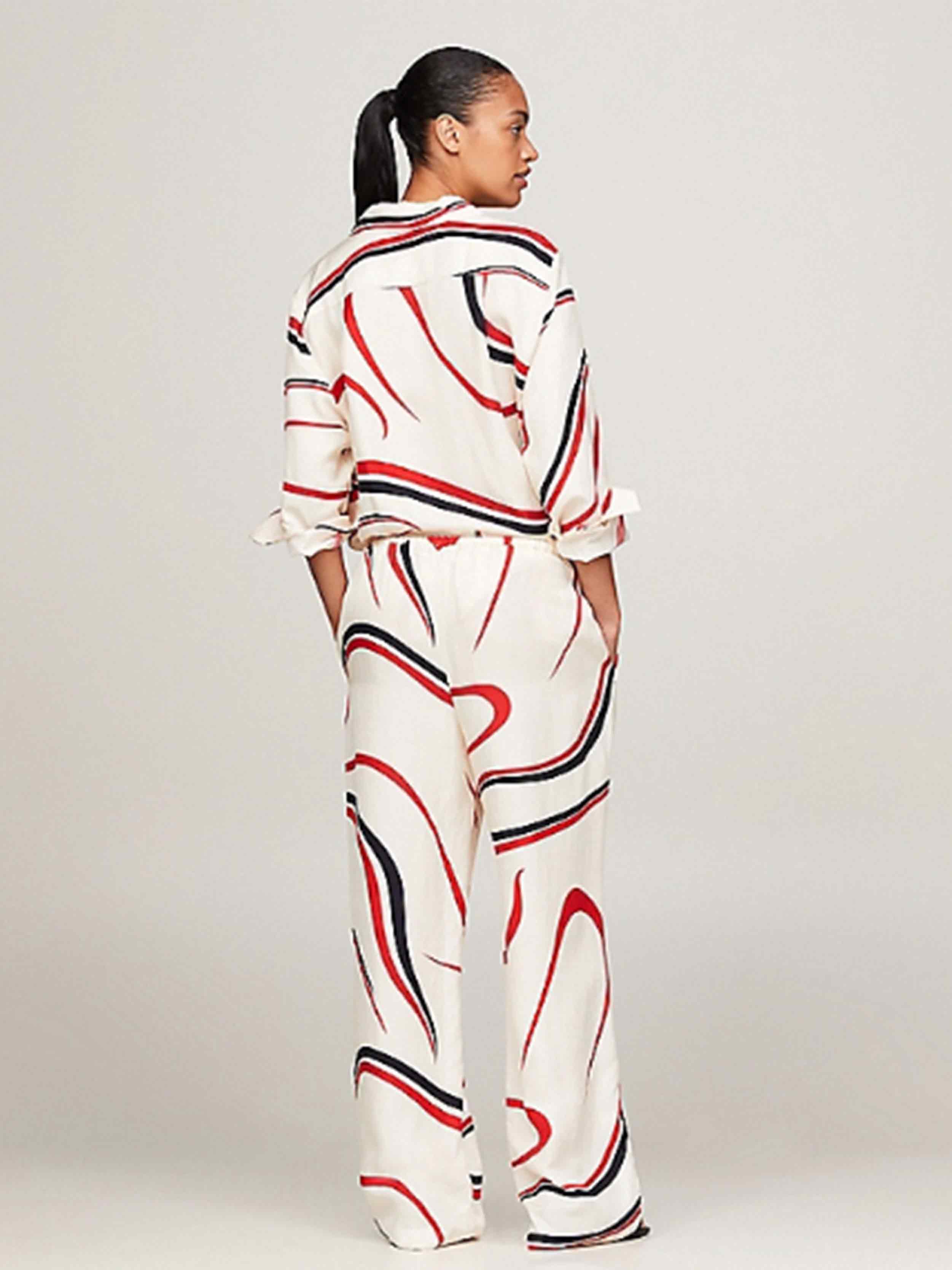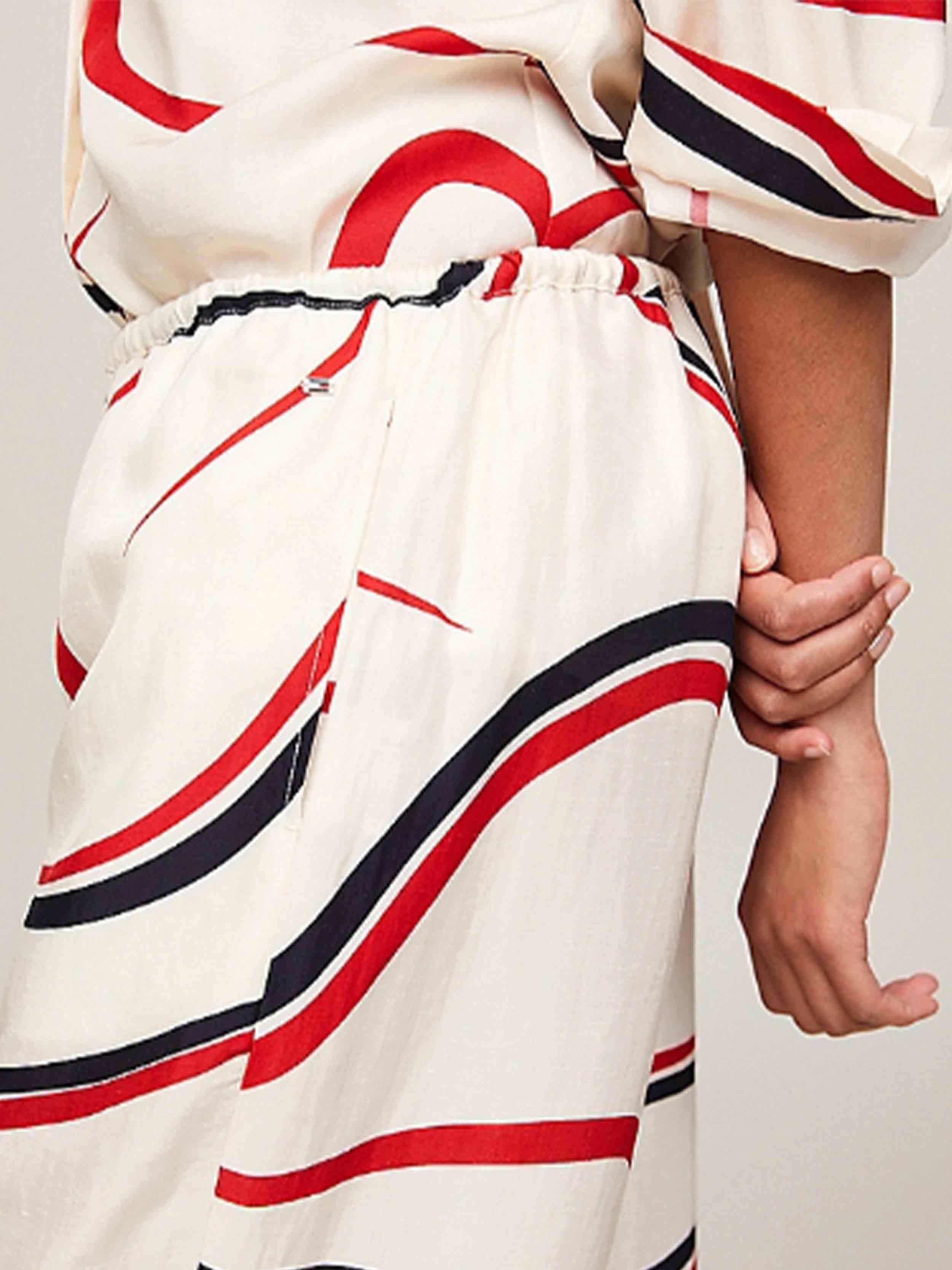 Tommy hilfiger - ribbon viscose pull on pant , 36 , big ribbon print/ ecru , style ww0ww41587