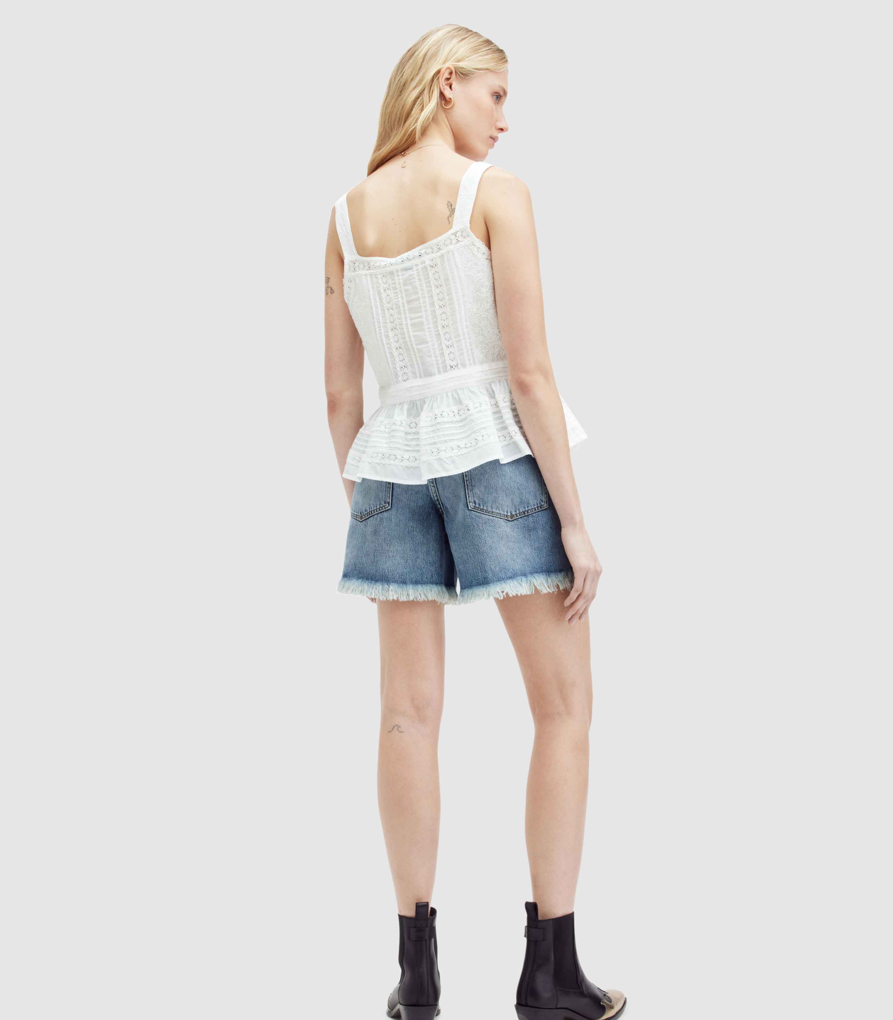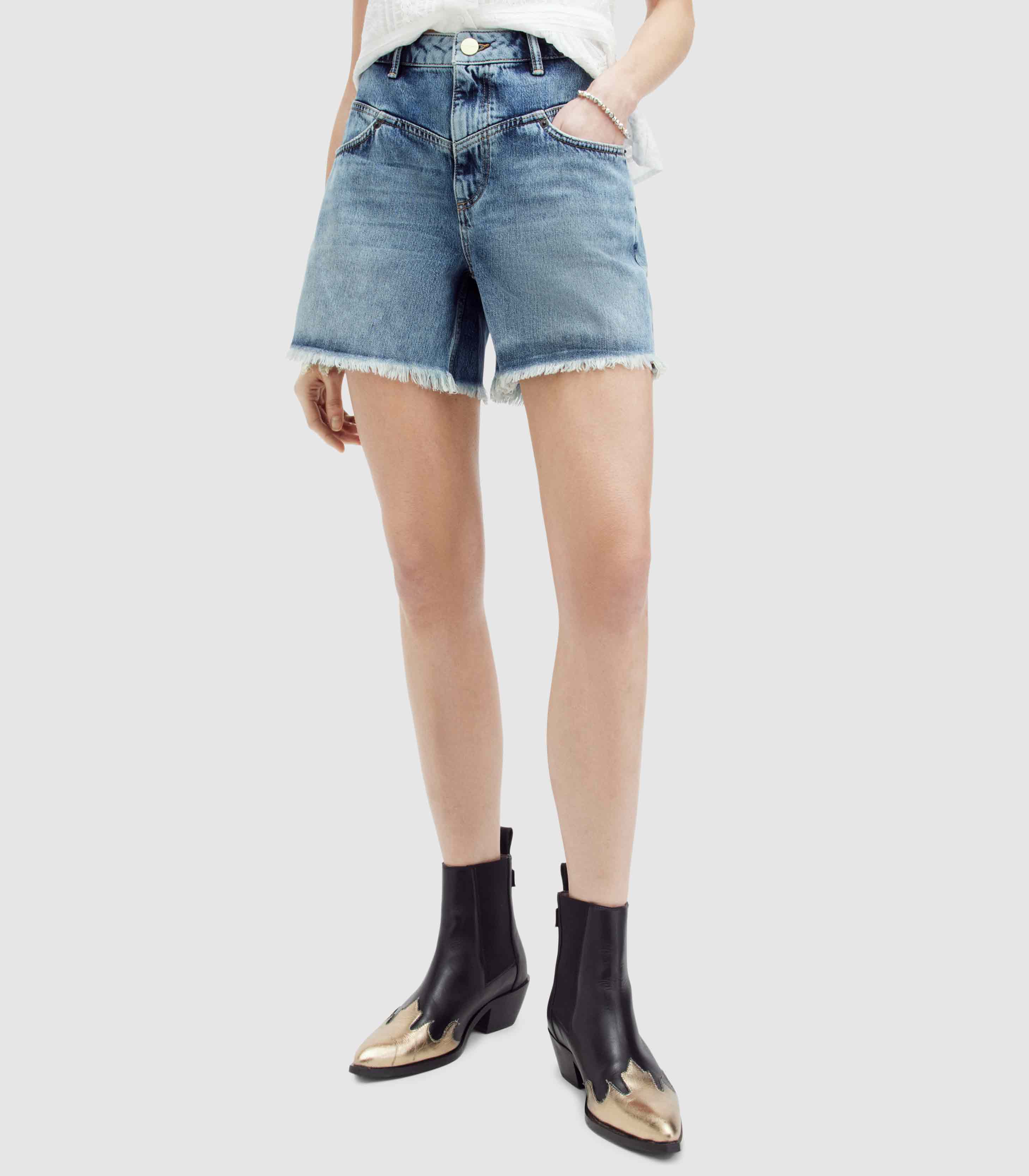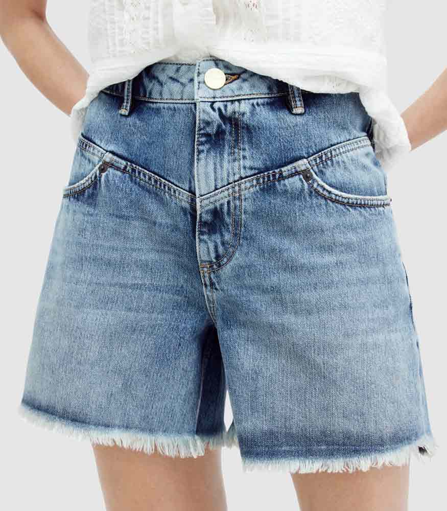 AllSaints - Emmy High Rise Denim Mid Length Shorts