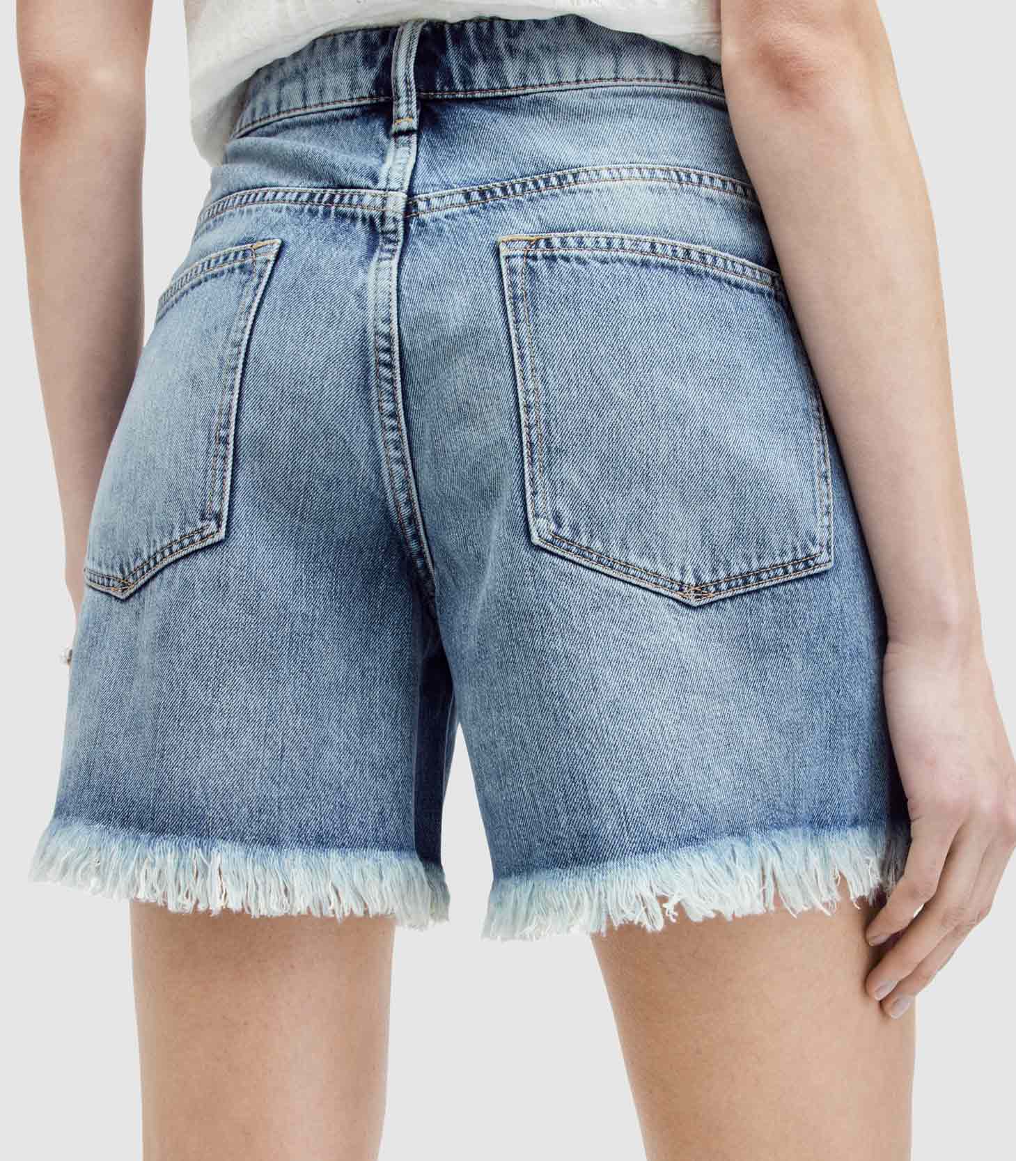 • AllSaints - Emmy High Rise Denim Mid Length Shorts