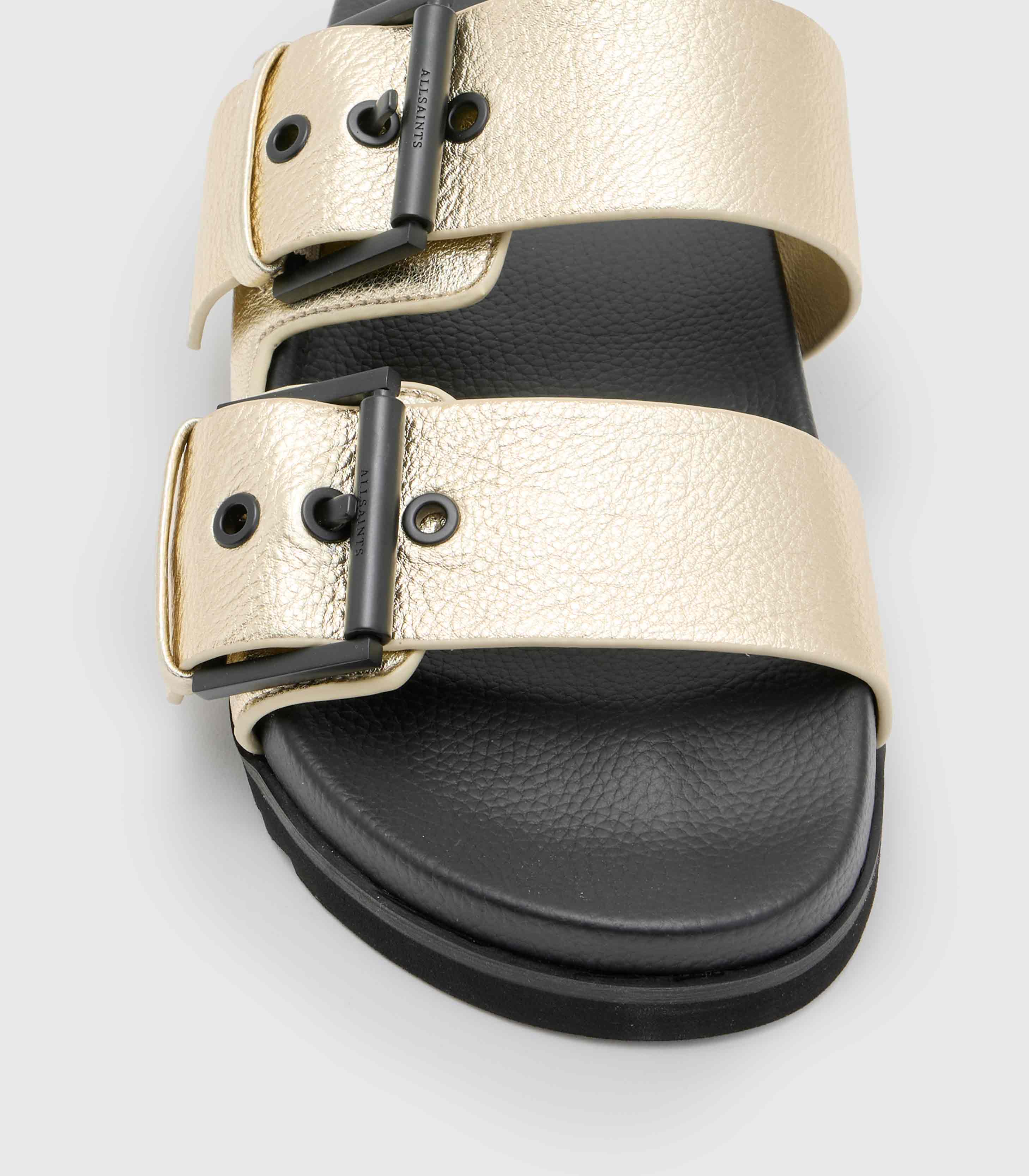 • Allsaints- Sian Metallic Leather Buckle Sandals