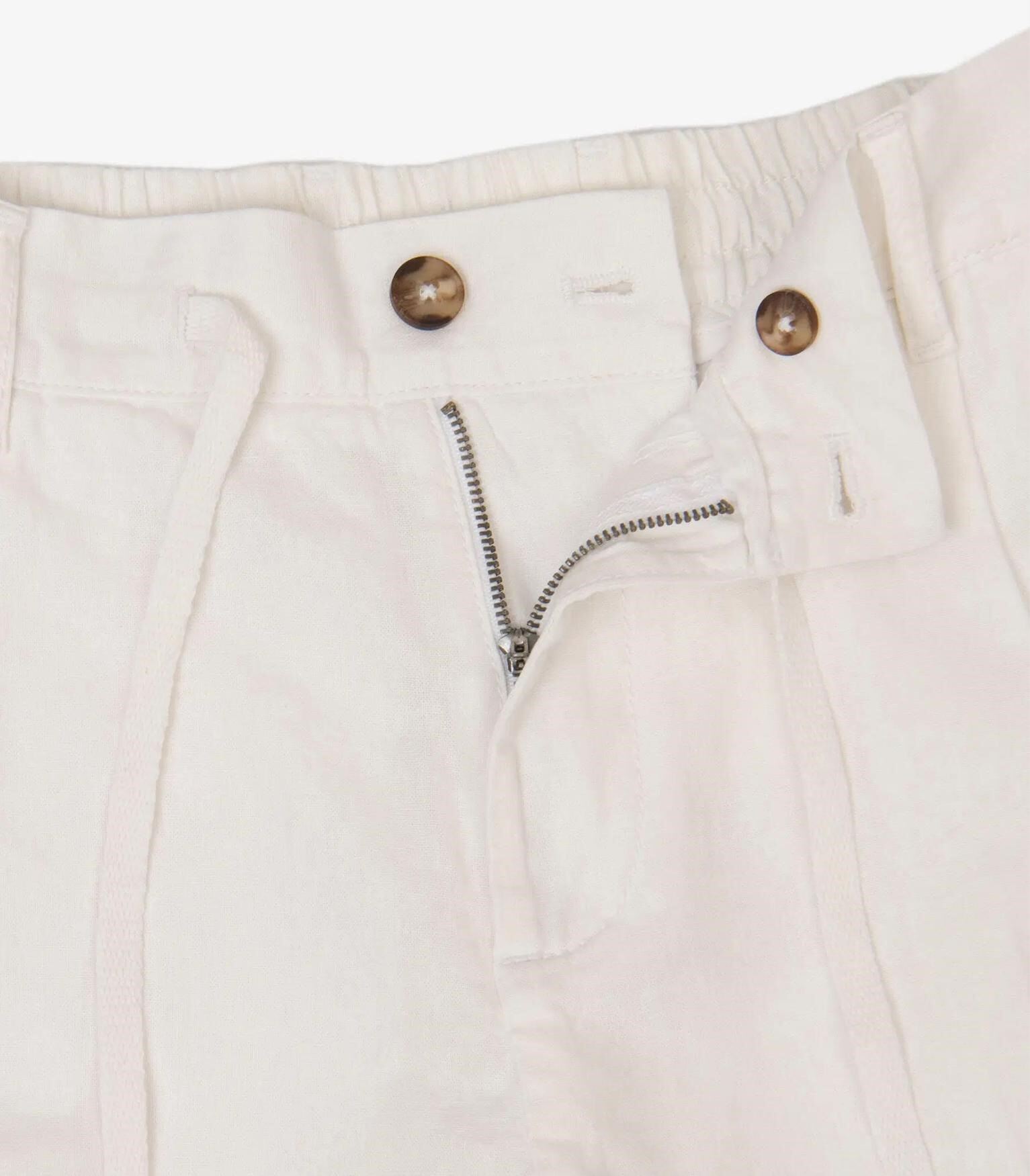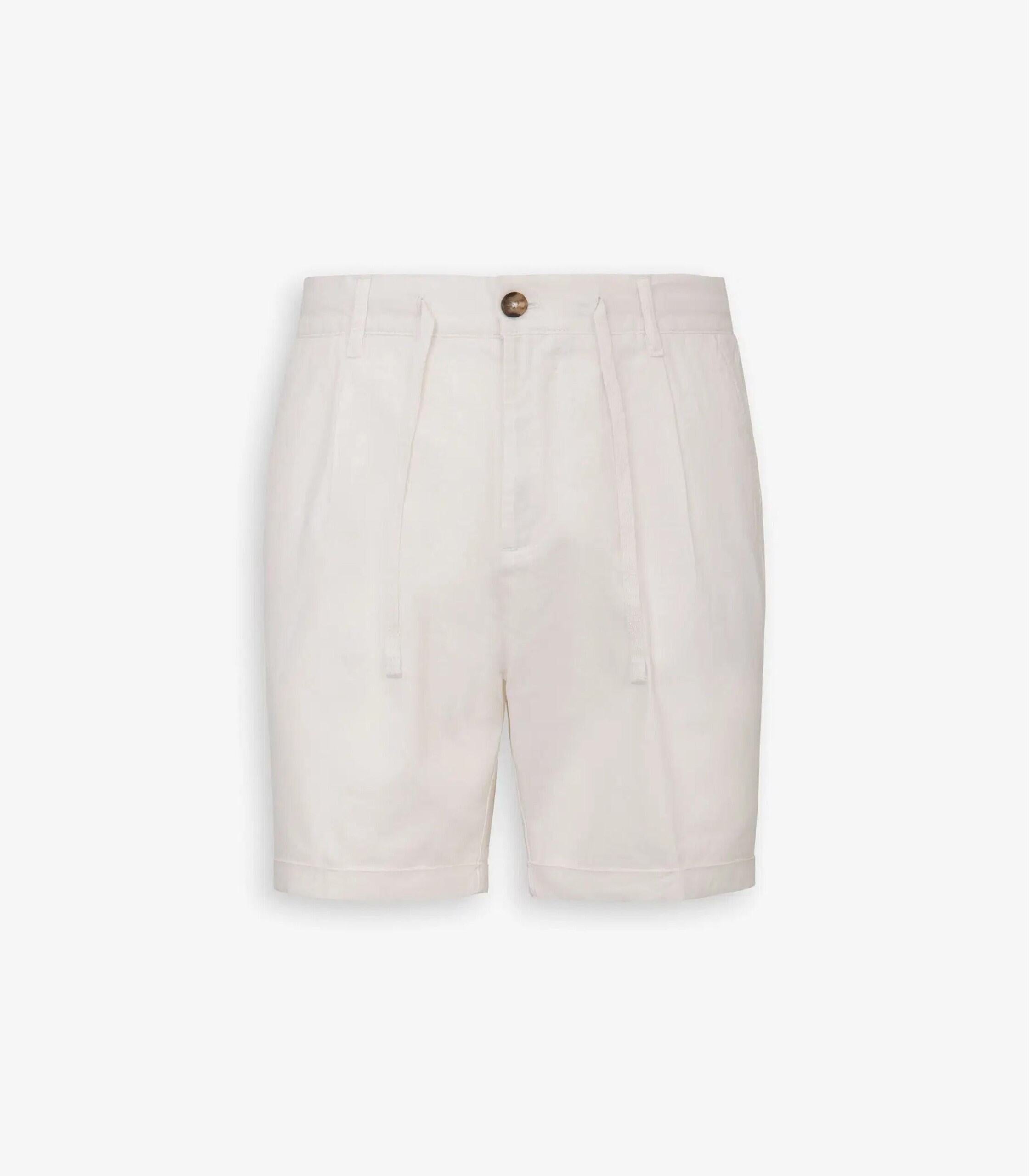 • Linen blend garment-washed Bermuda shorts in solid colour.