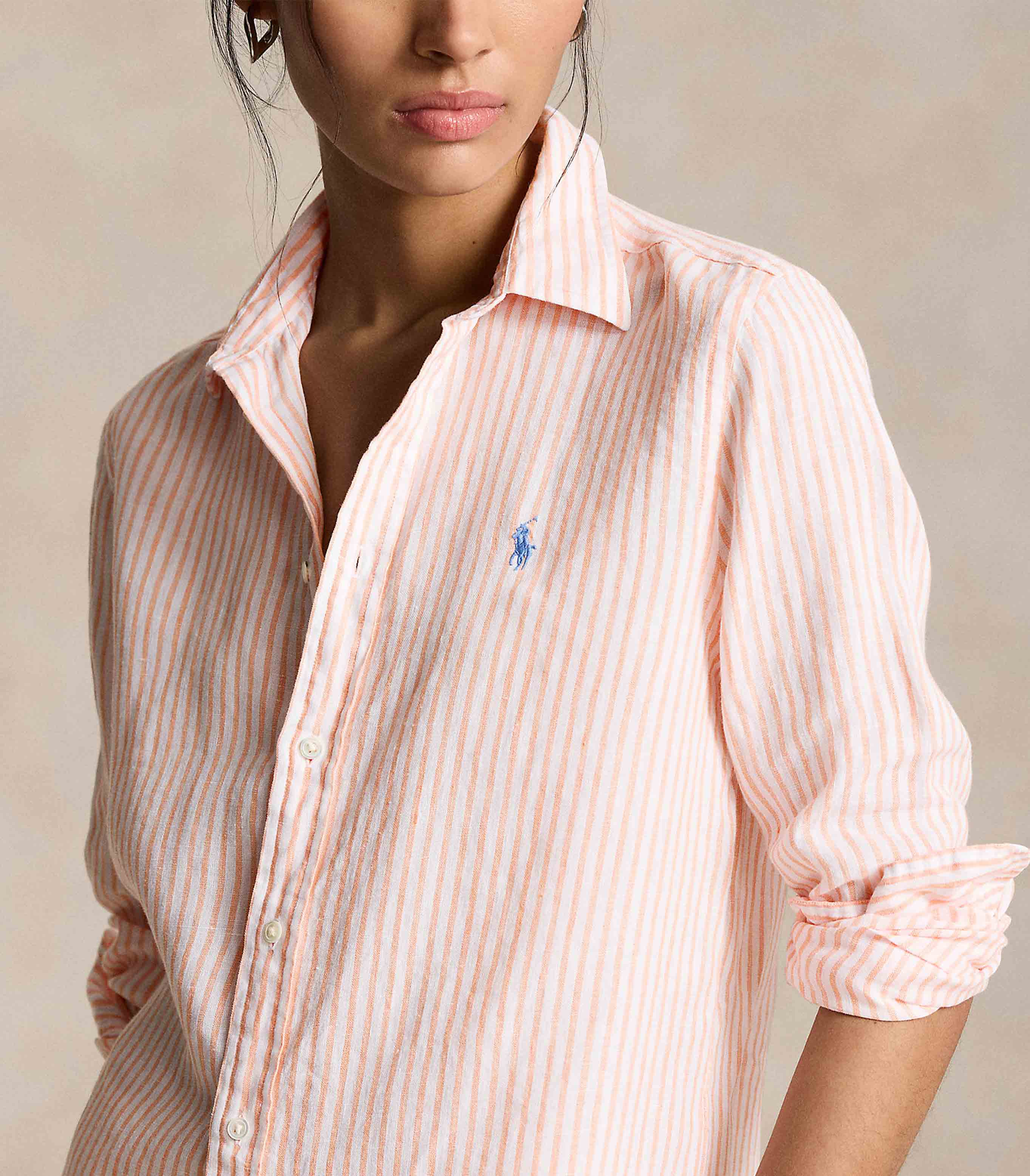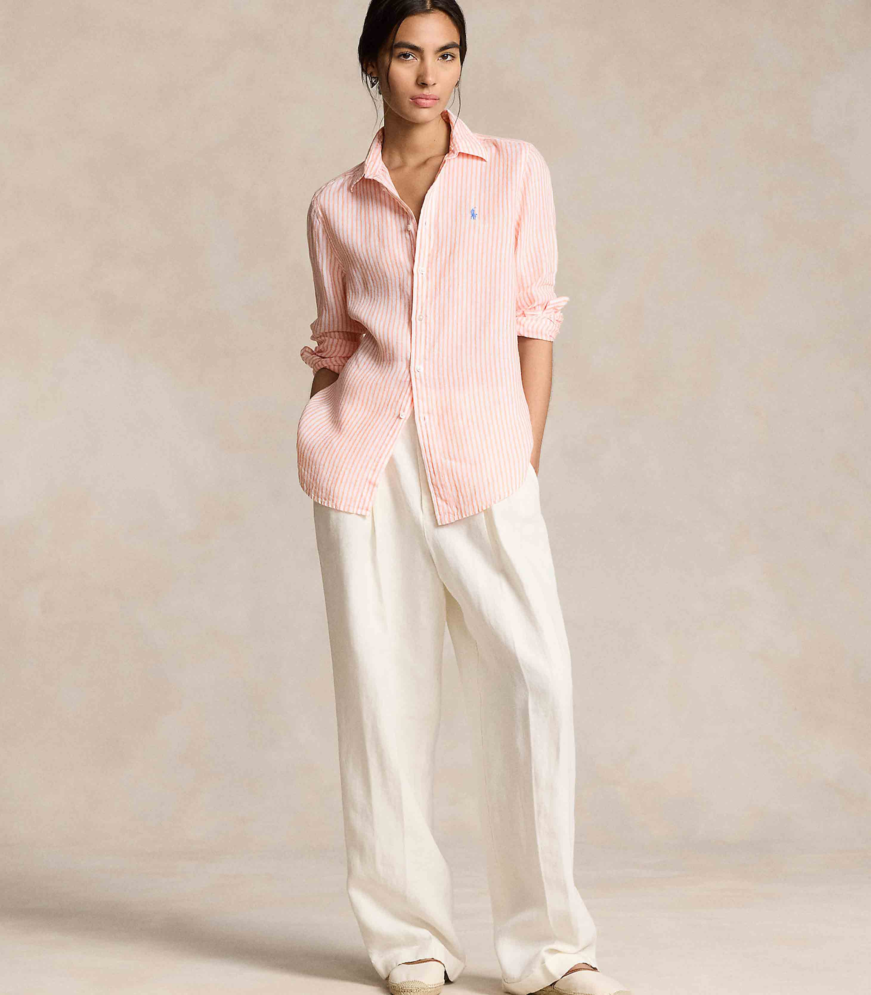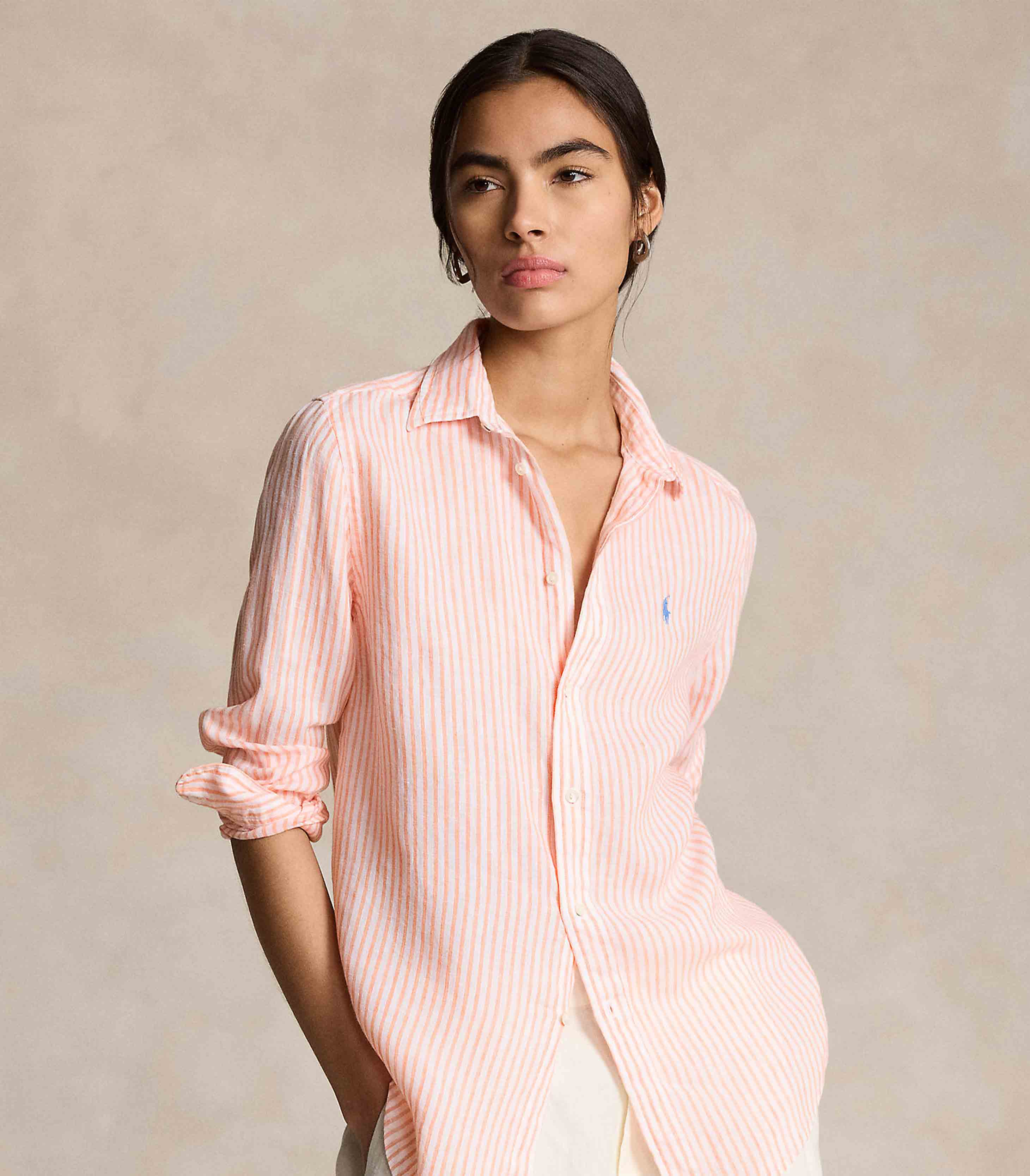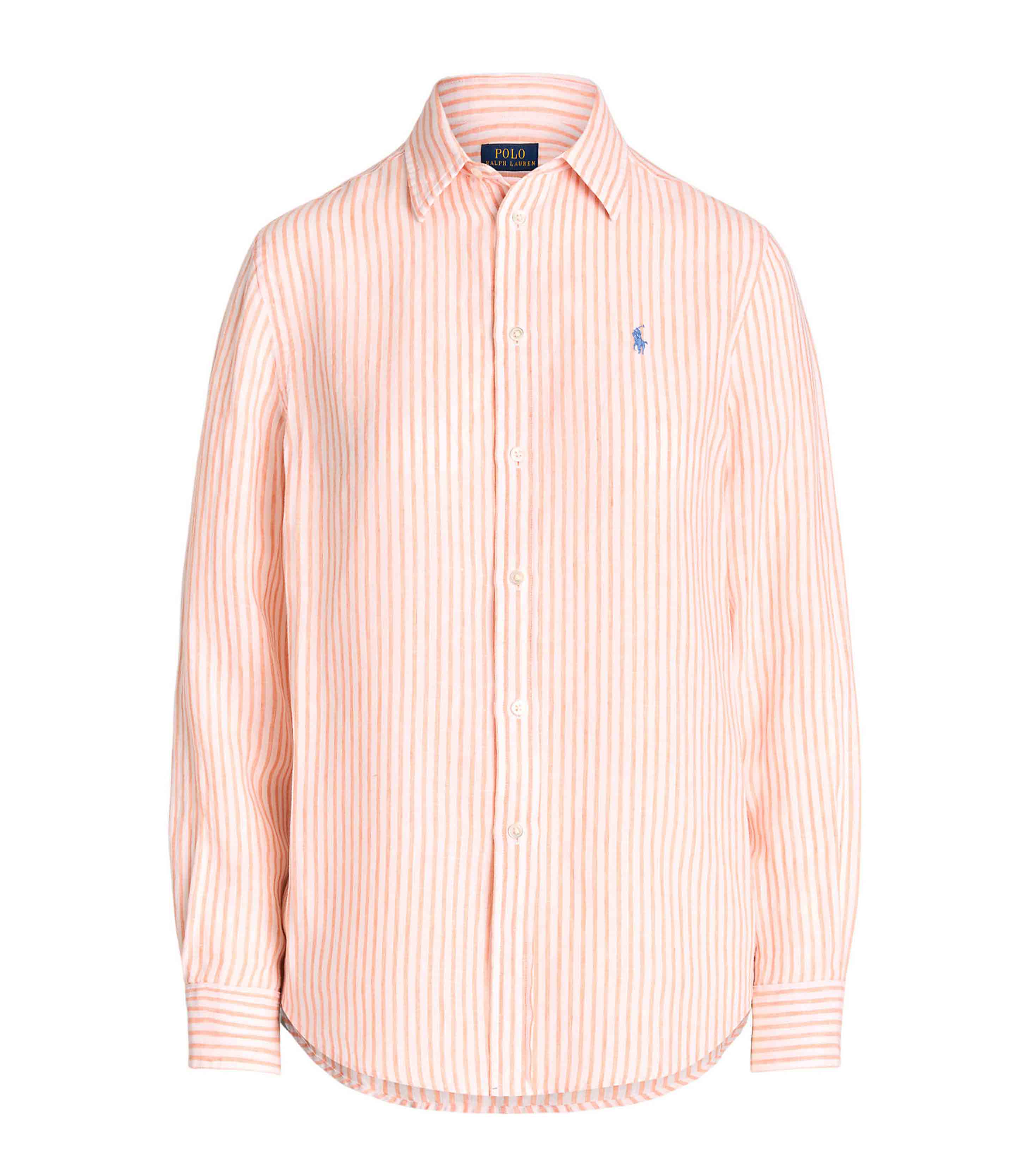 • Vertical stripes and lightweight linen meet a relaxed silhouette in this point collar shirt. Lustrous shell buttons and our meticulously embroidered Pony add smart finishing touches.