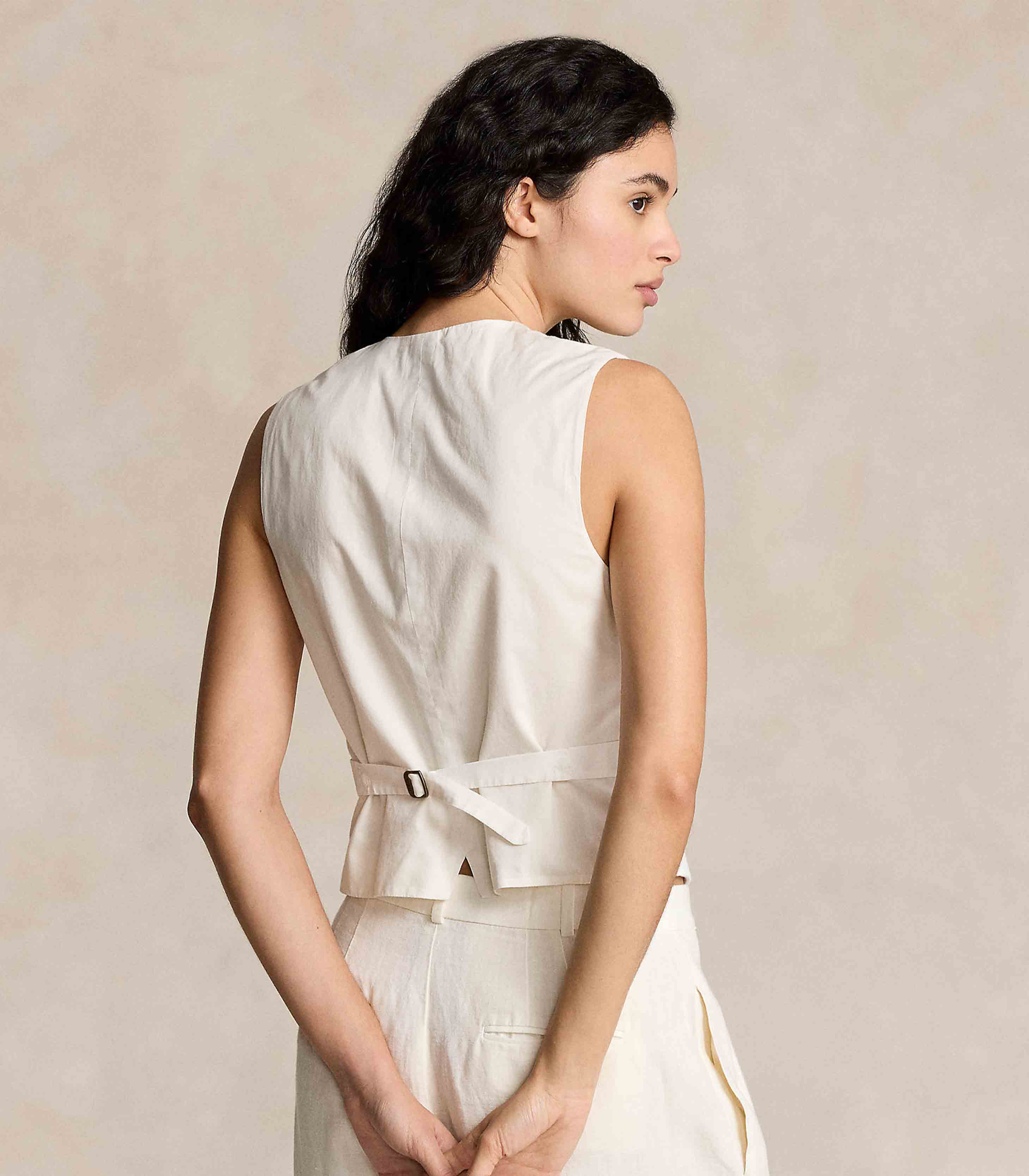 • Rendered in lightweight linen at the front and cotton at the back, this vest is tailored for a slim silhouette and features a buckled detail at the back.