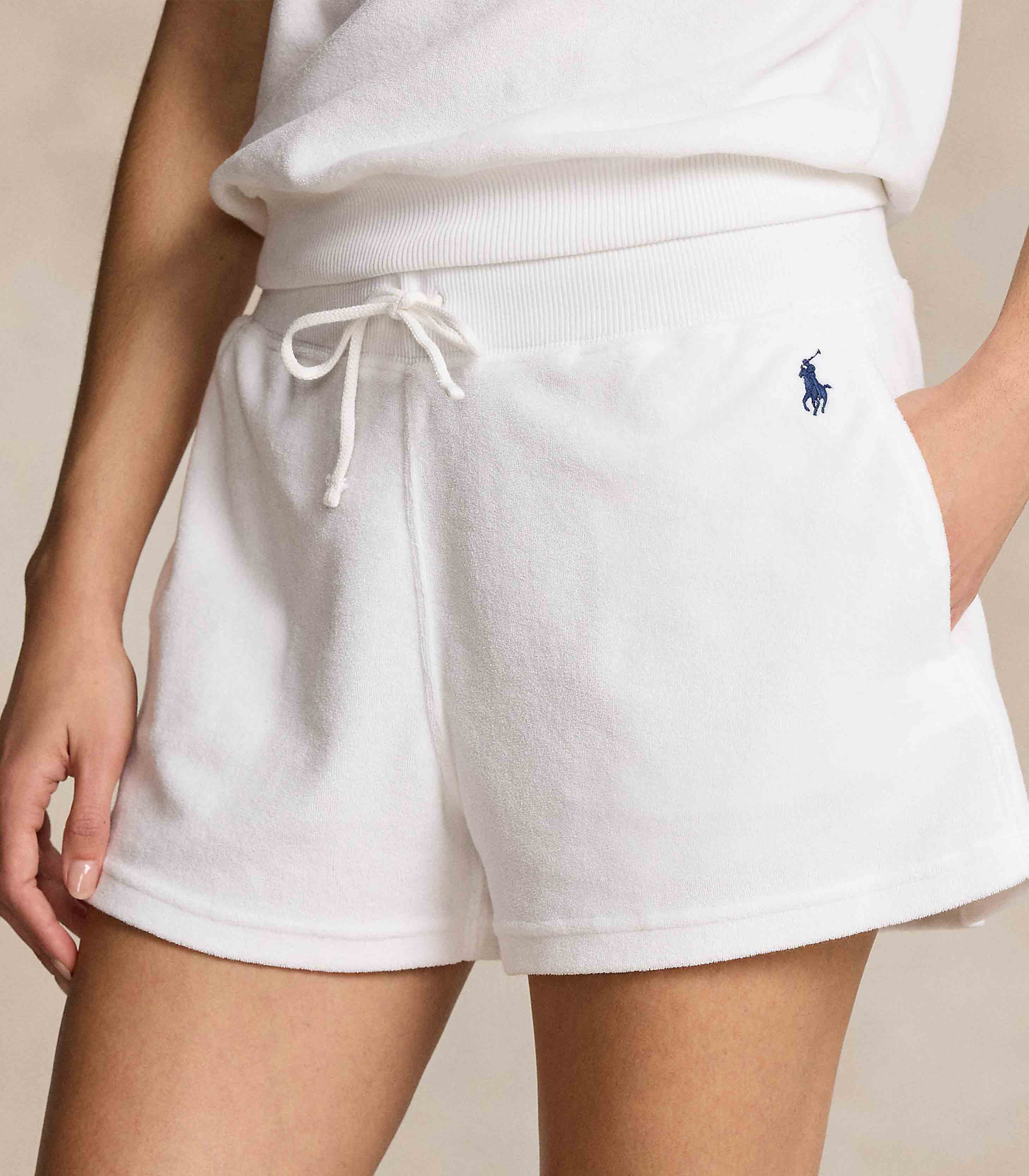 • Crafted with soft, cotton-blend Terry, these drawstring shorts our finished with our signature embroidered Pony for a heritage touch.