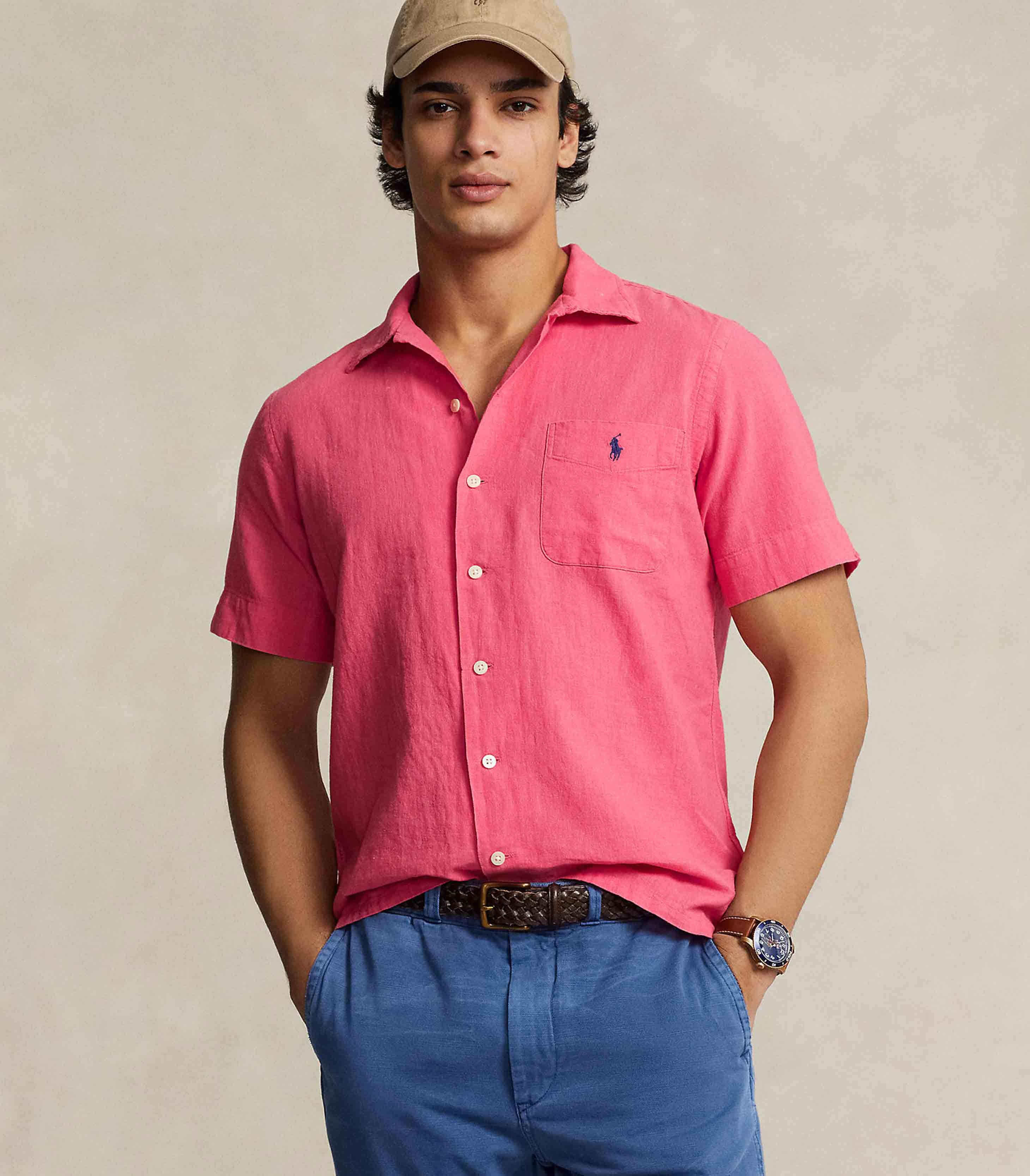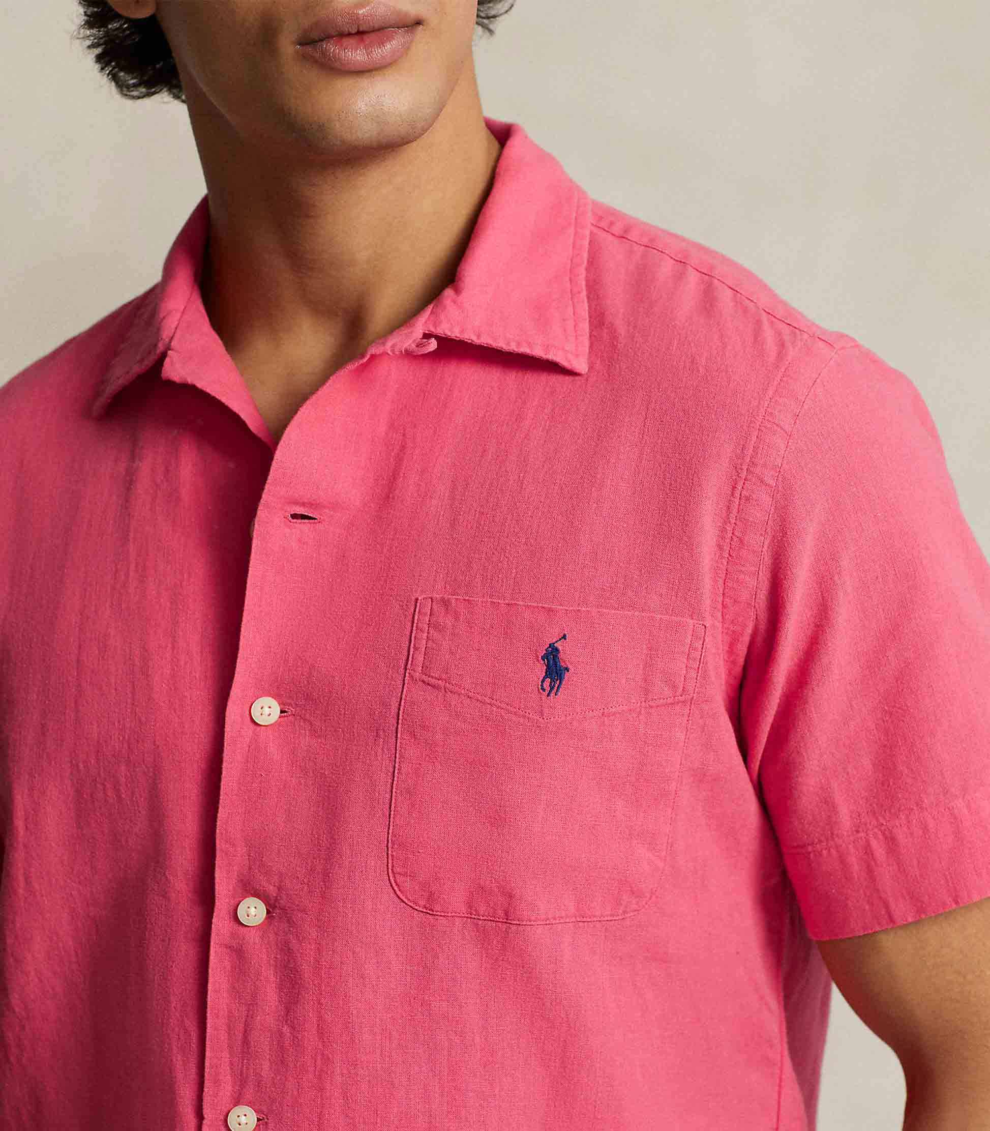 • This shirt is crafted with a lightweight linen-and-cotton blend and double-washed to impart an incredible softness.