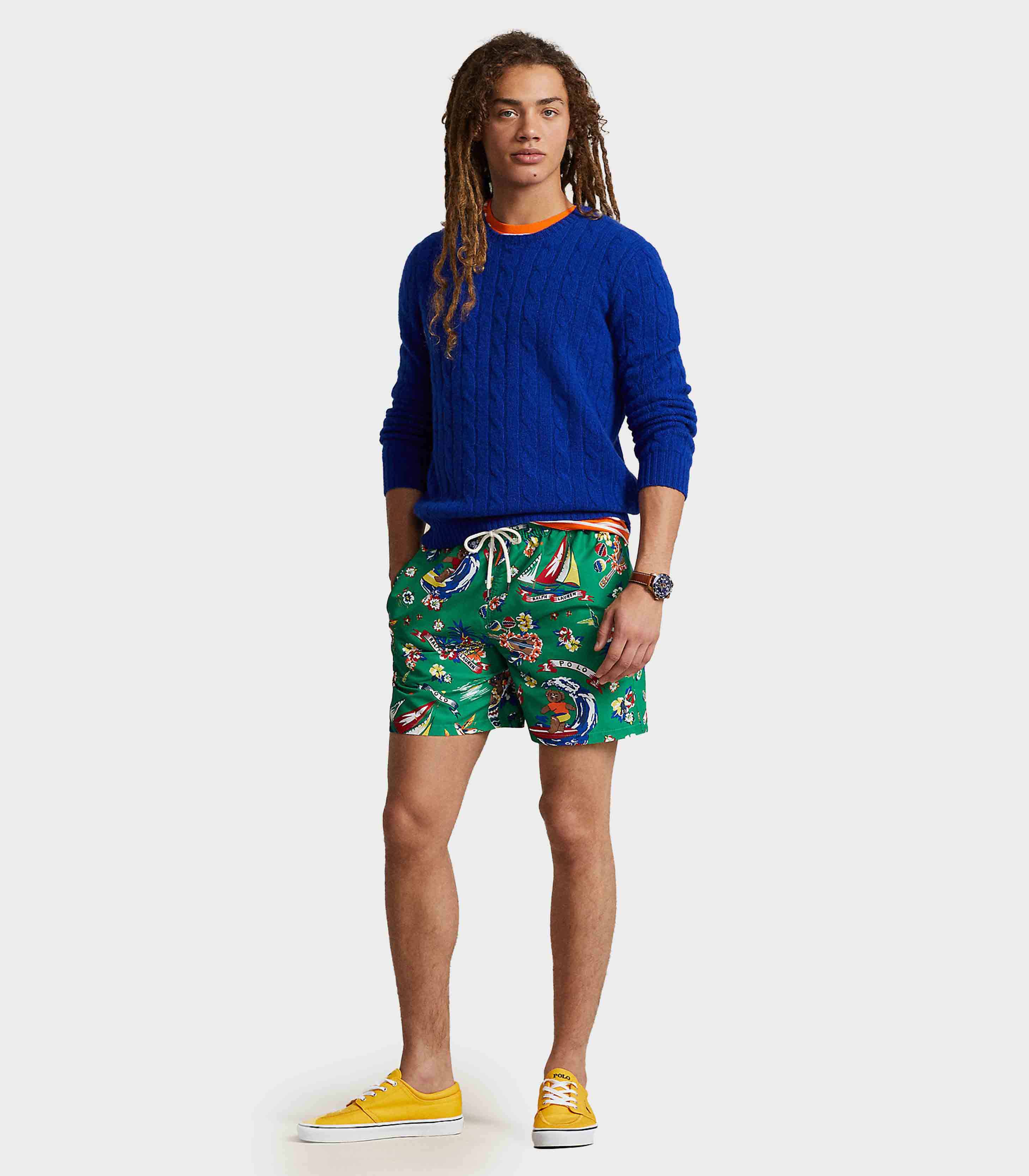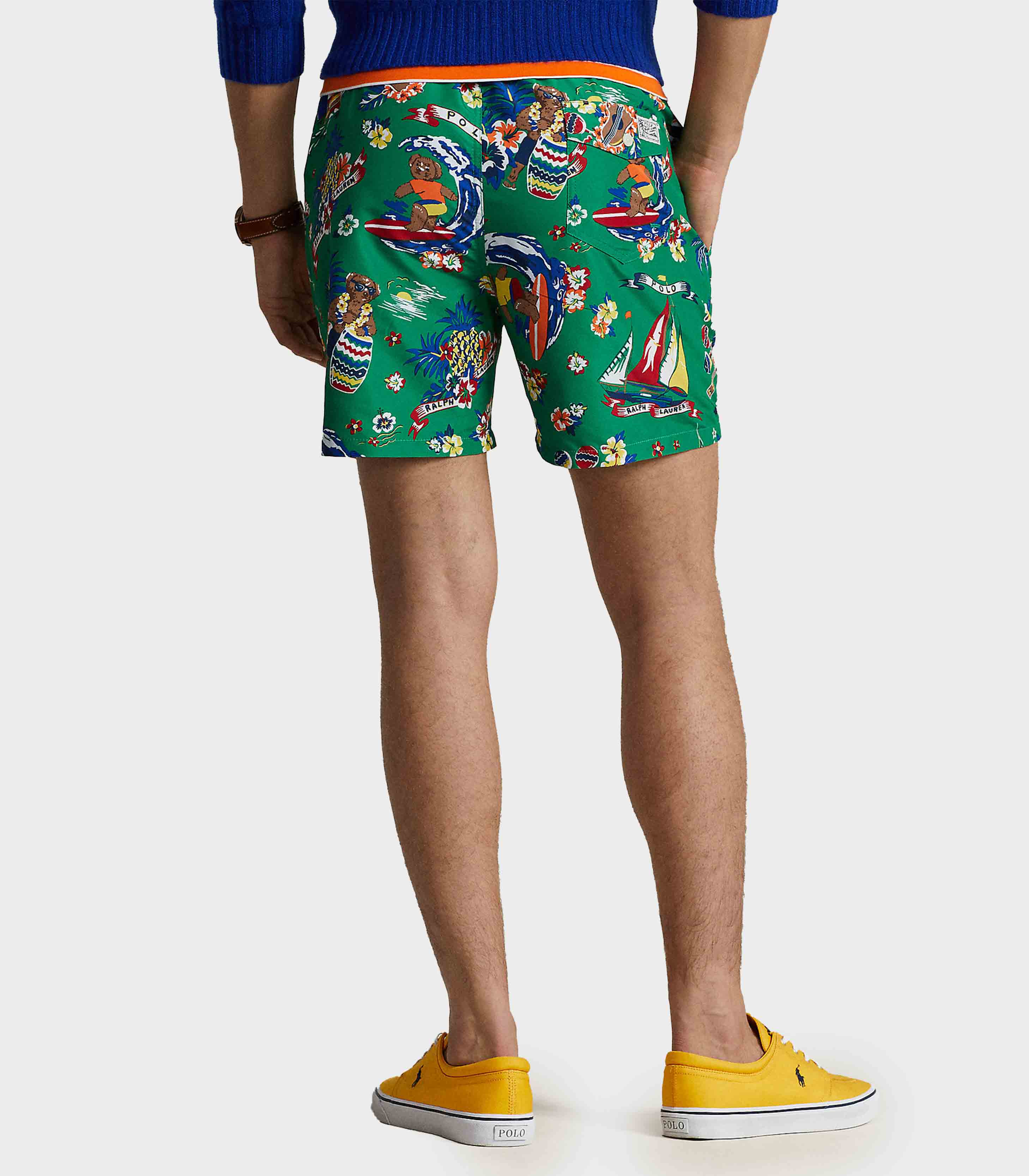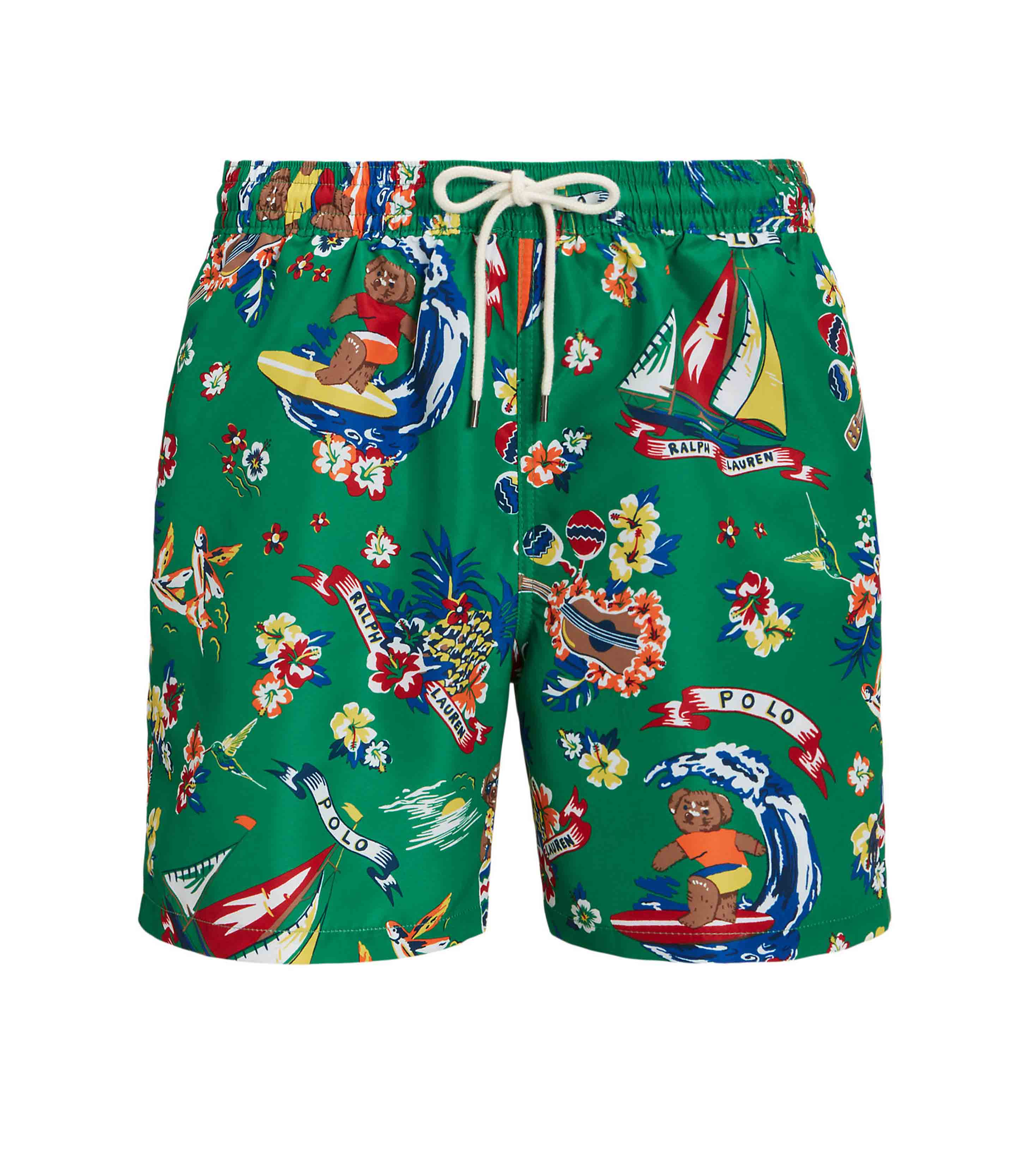• Finished with an allover print including our beloved Polo Bear, these mesh-lined swim trunks deliver iconic style both in the water and out.