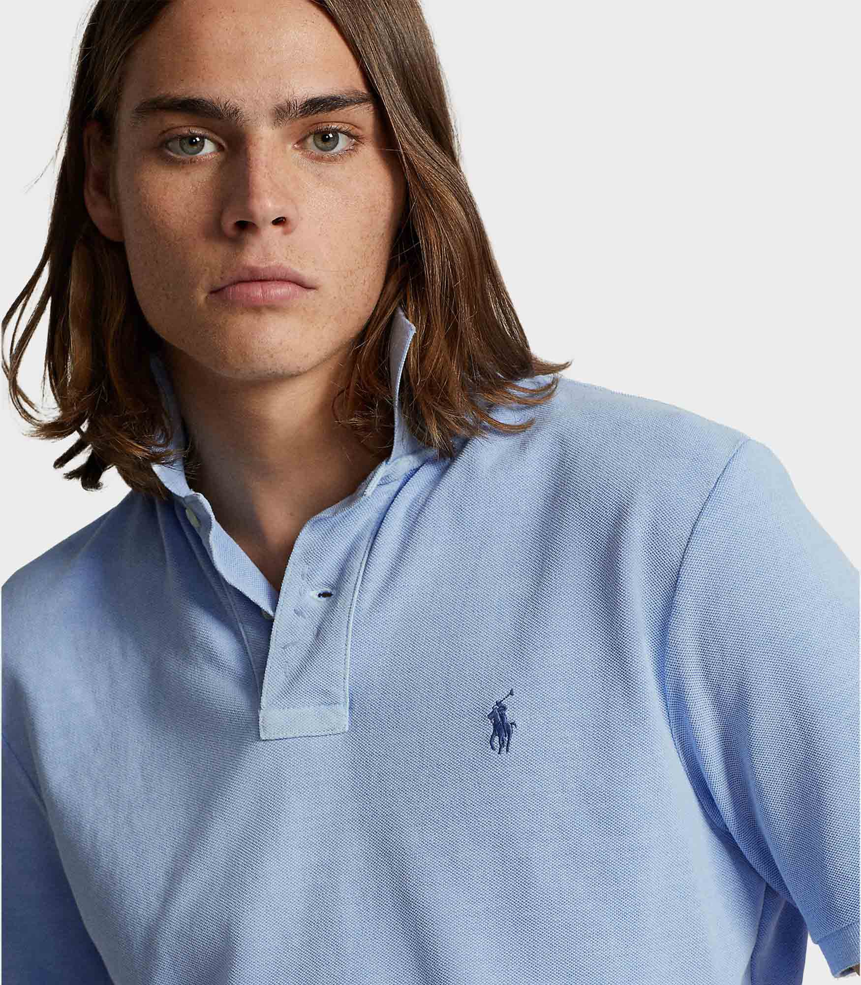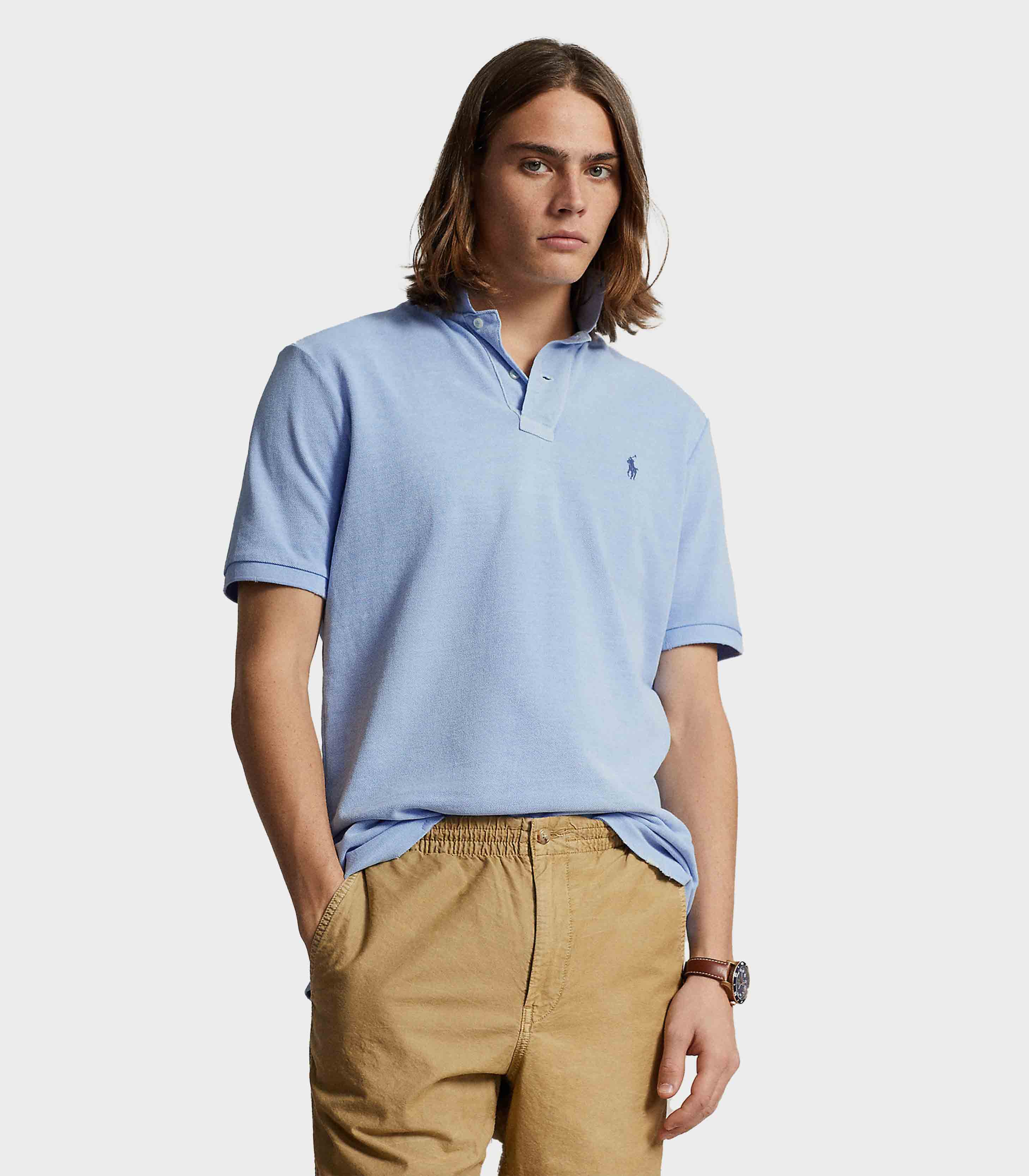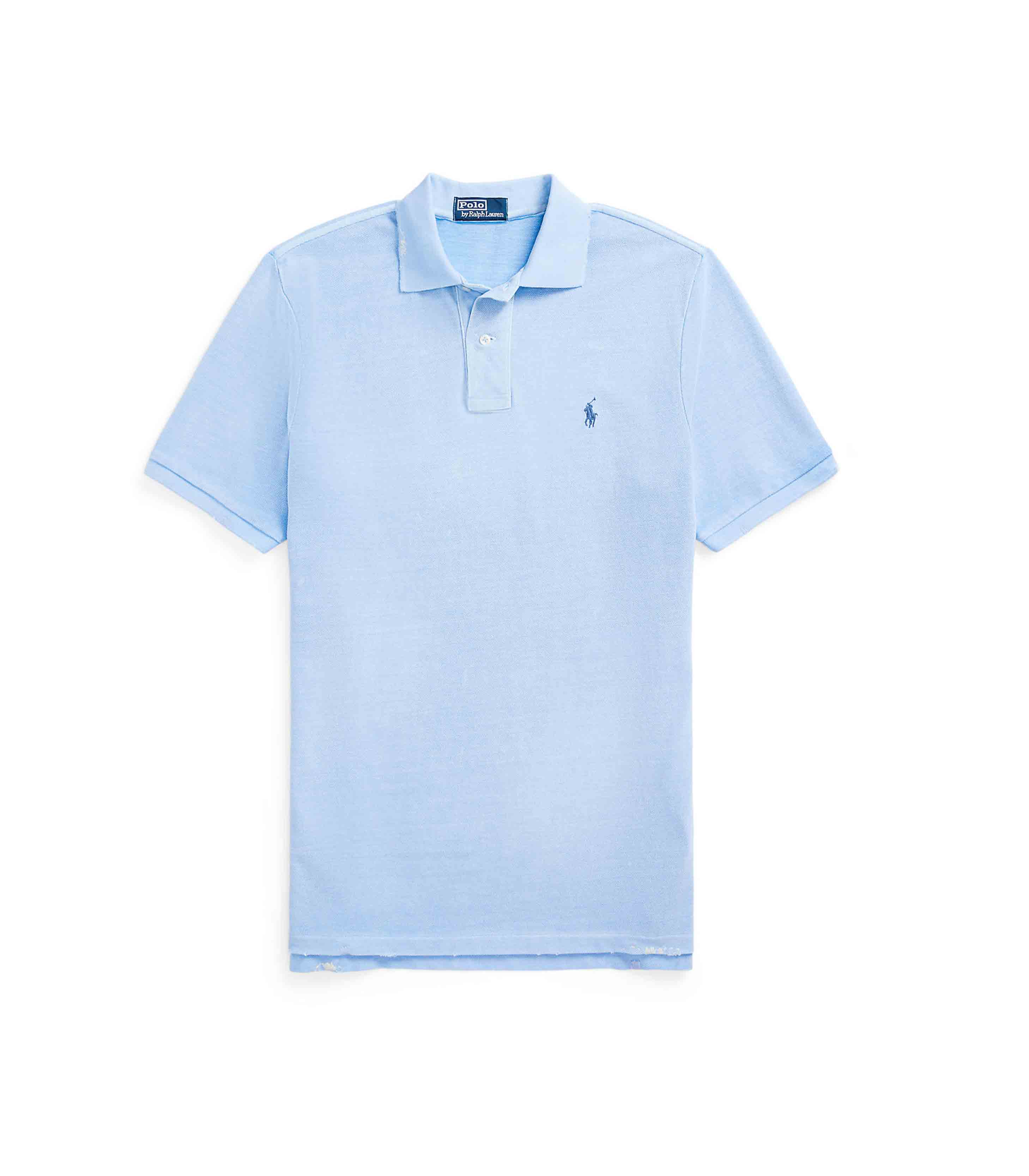 • An American style standard since 1972, the Polo shirt has been imitated but never matched. Over the decades, Ralph Lauren has reimagined his signature style in a wide array of colors and fits, yet all retain the quality and attention to detail of the iconic original. This is made with our highly breathable cotton mesh, garment-dyed for a broken-in effect, and finished with mended details.