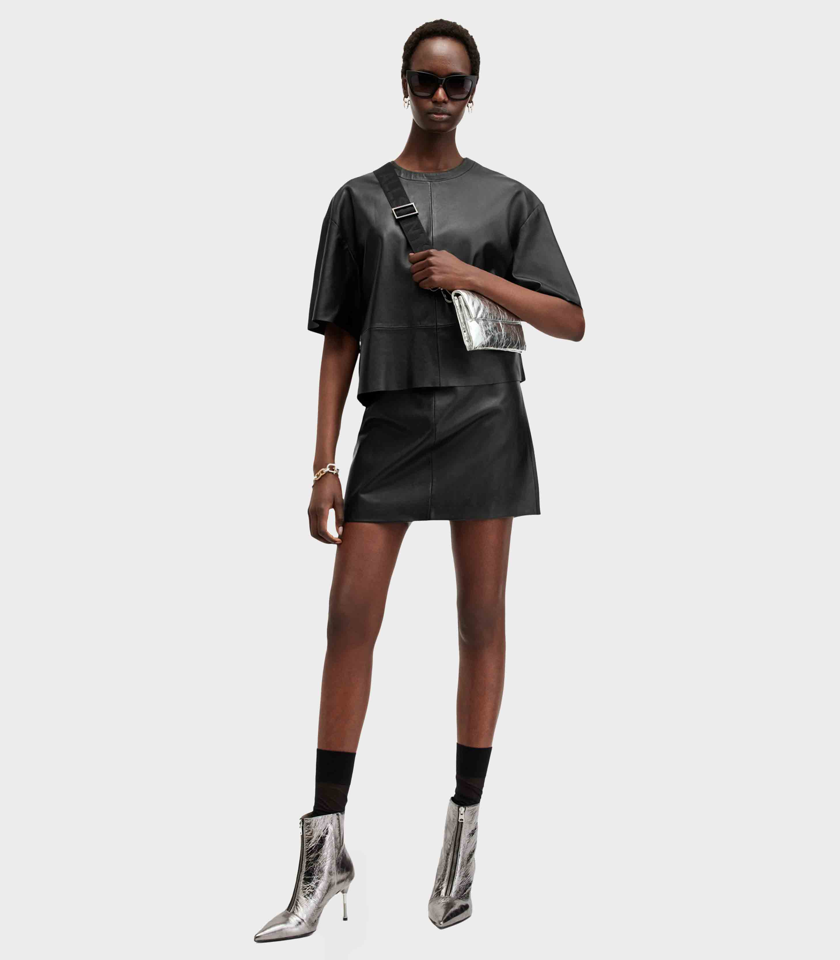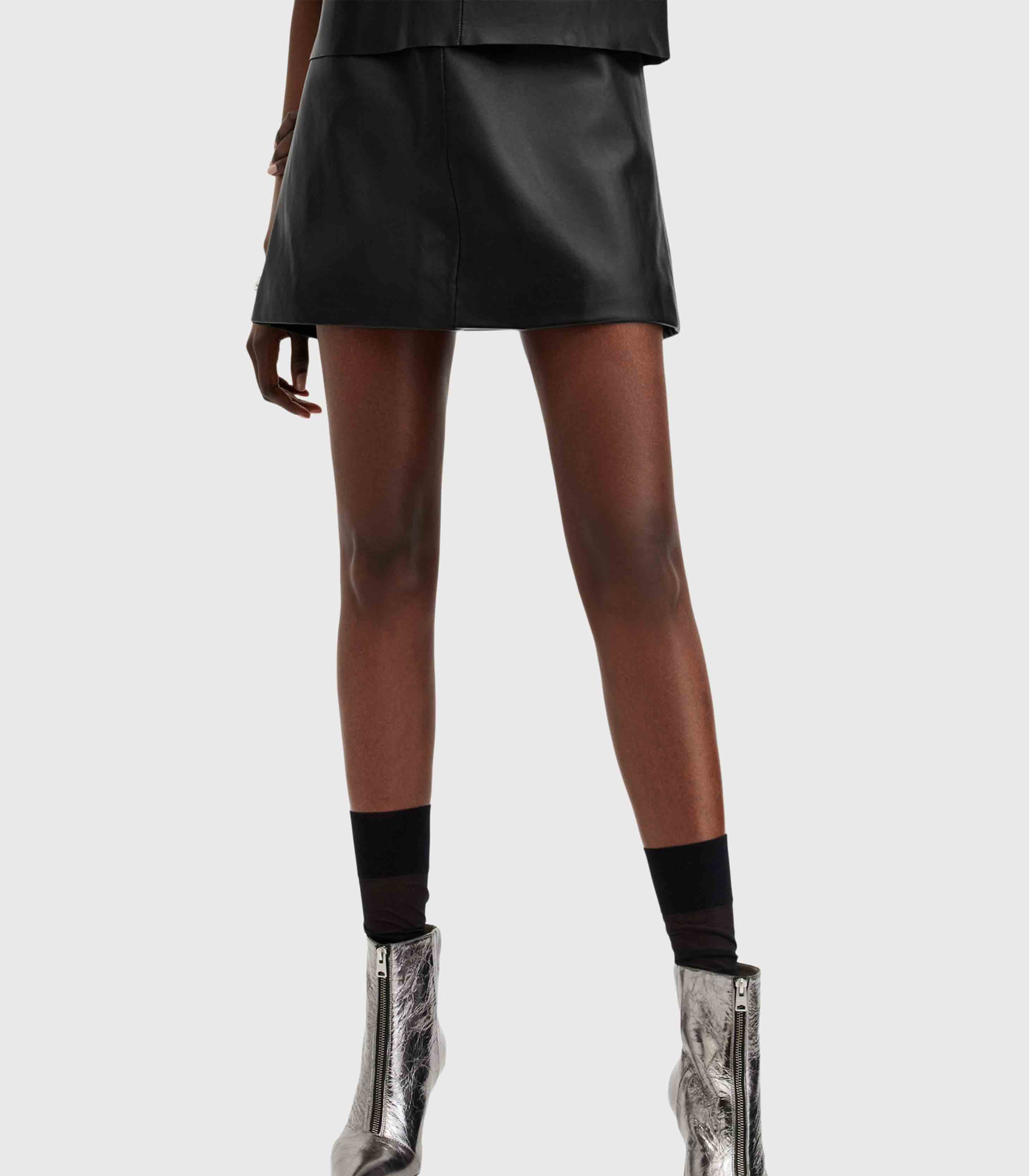 • A skirt from the AllSaints collection. A straight-cut model made of genuine leather.