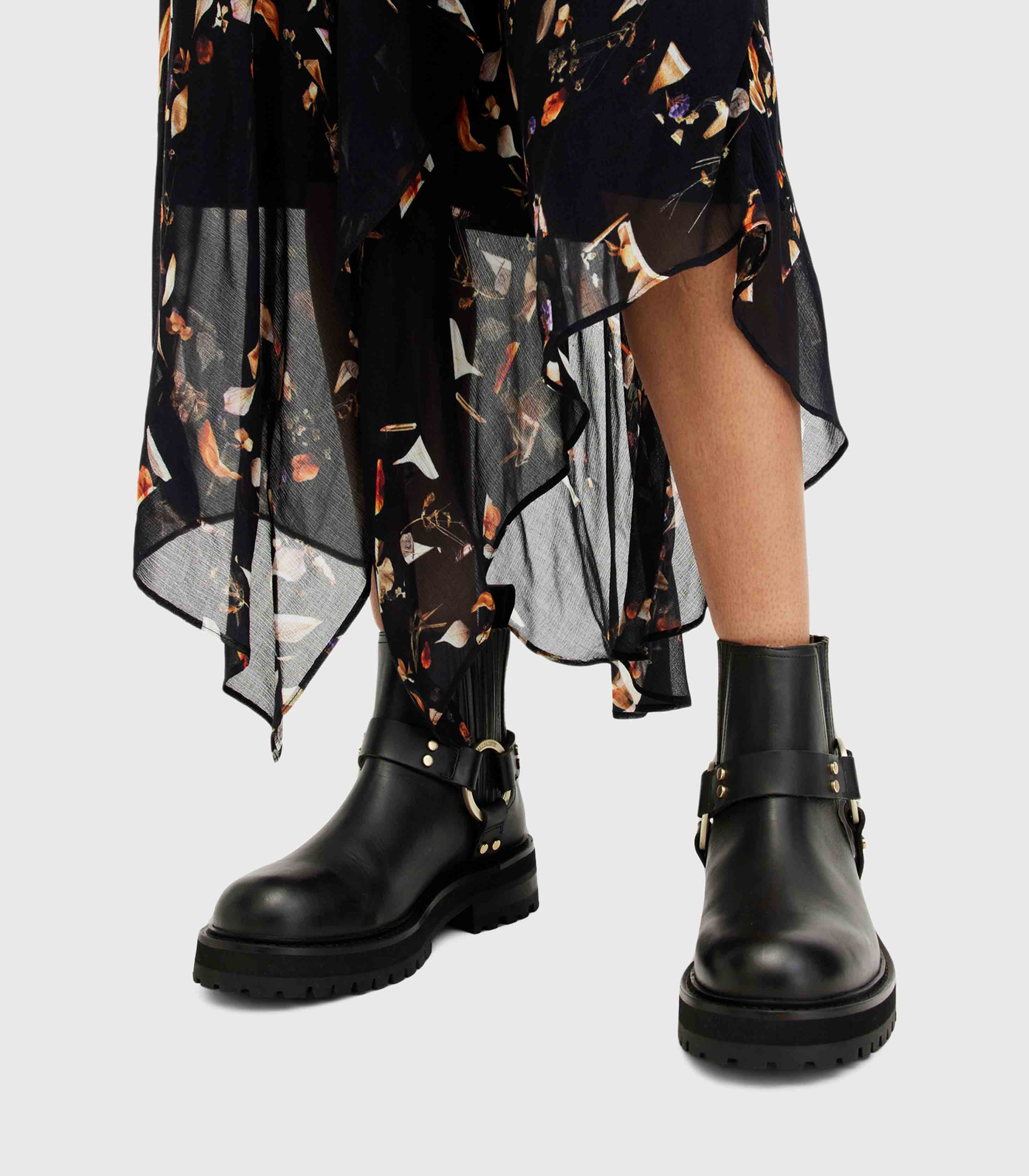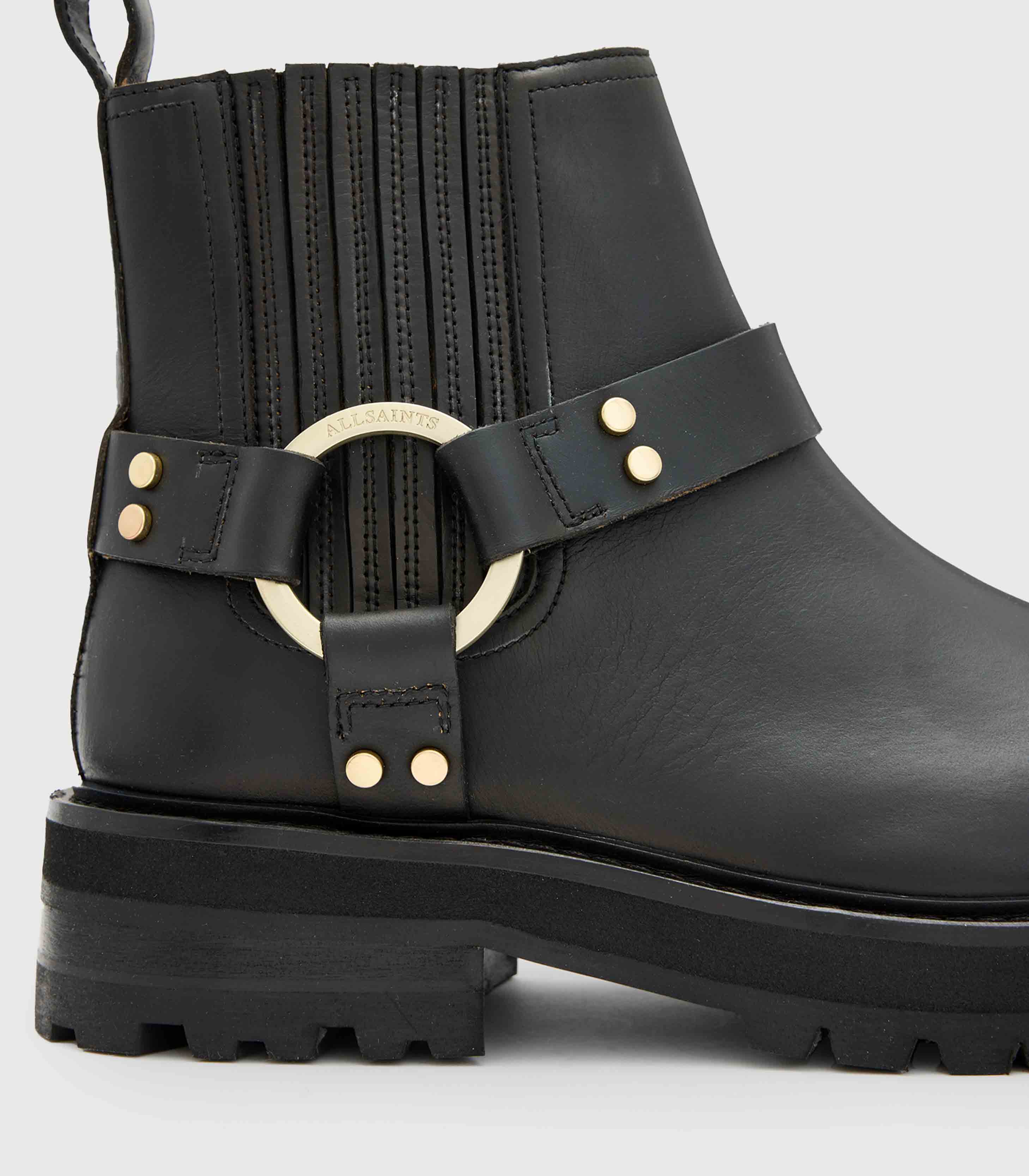 • Let's ride – bring out your inner biker with the Maddie Boots. It's complete with a standout D-ring detail and harness across the side, while the elastic gusset allows for an easier fit.