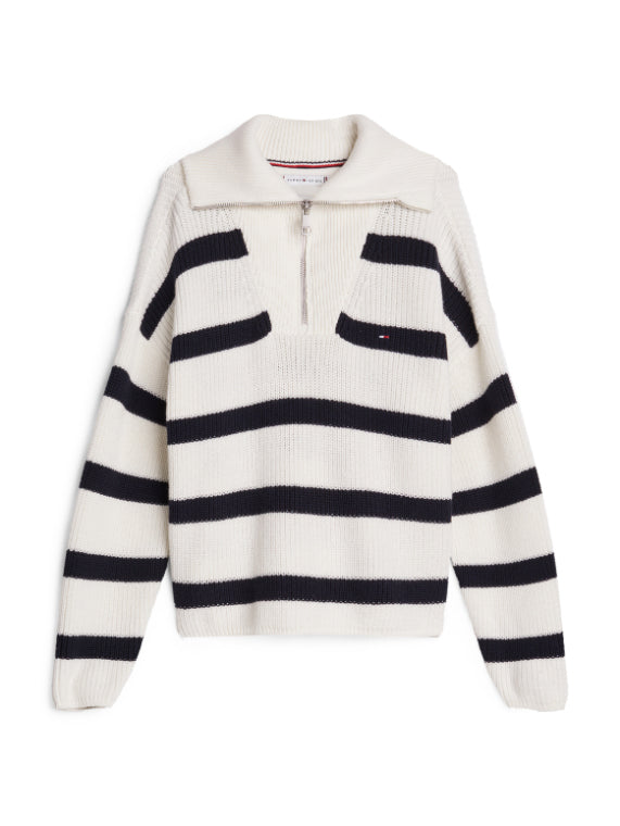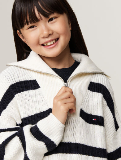 Tommy Hilfiger - Girls - Stripe Half - Zip High Neck Boxy Jumper