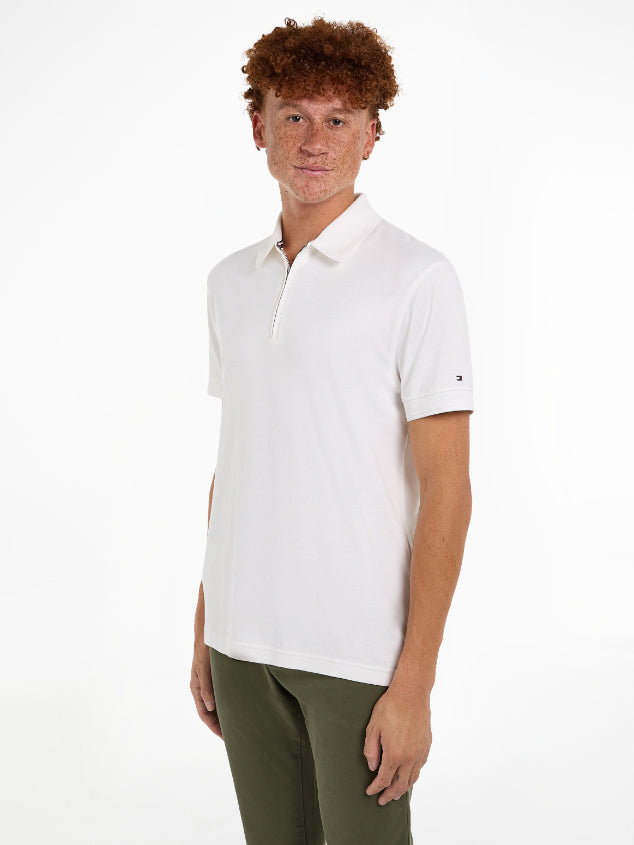 Tommy hilfiger - dc interlock zip slim polo , s , ecru , style mw0mw34746