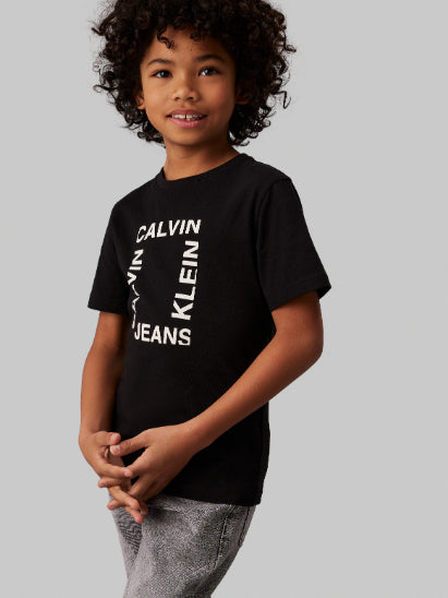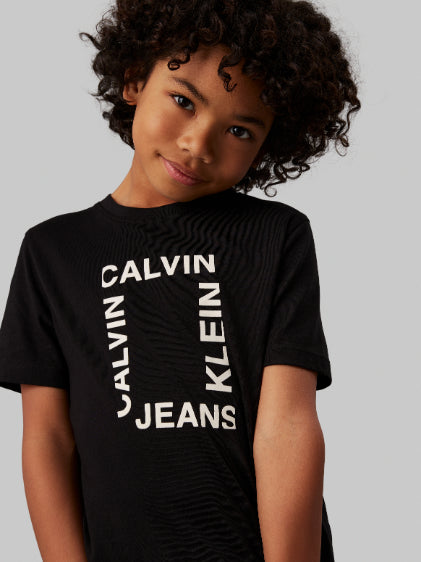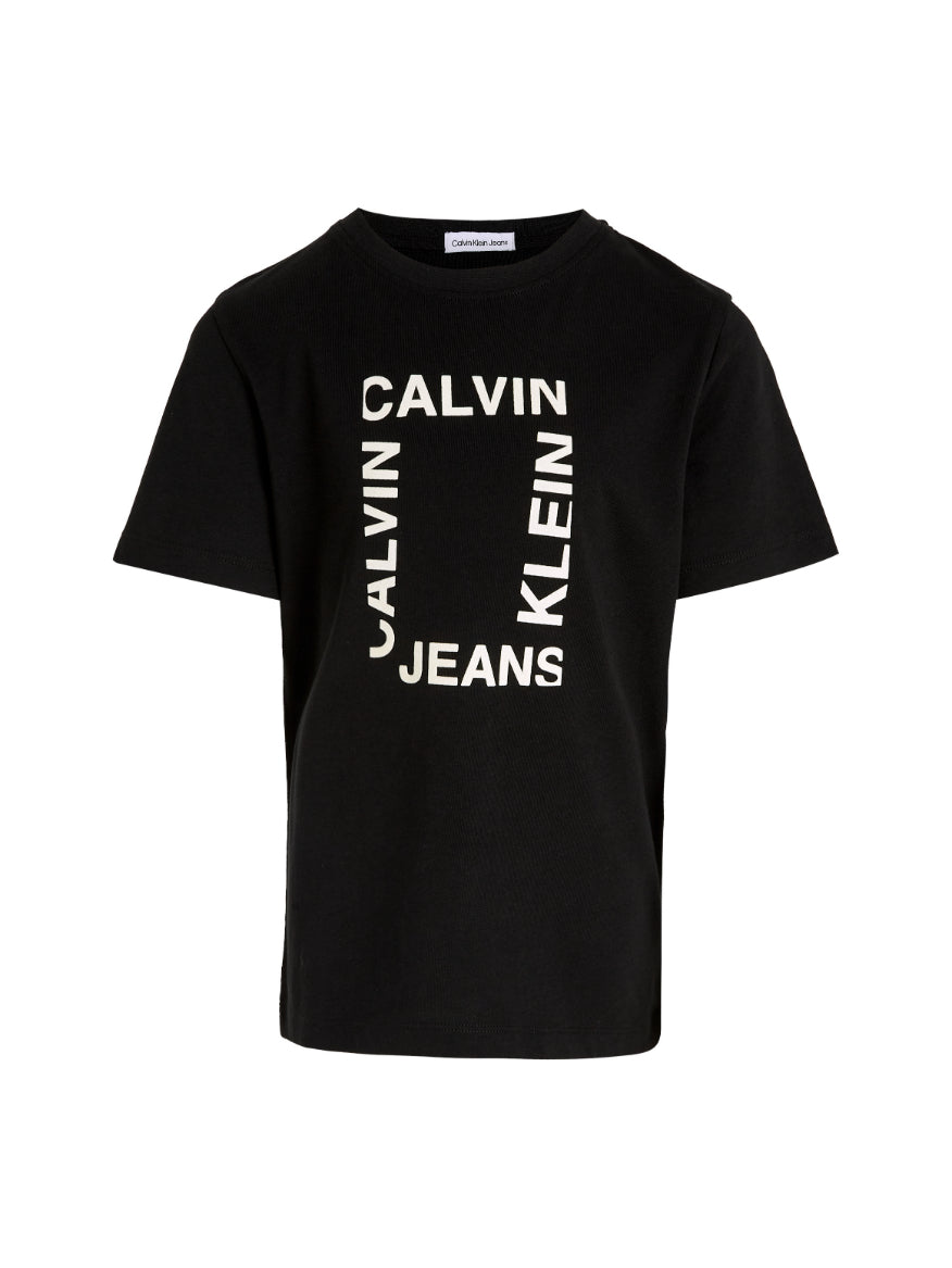 Calvin klein - maxi hero flock logo t-shirt , 4 , ck black , style ib0ib02159