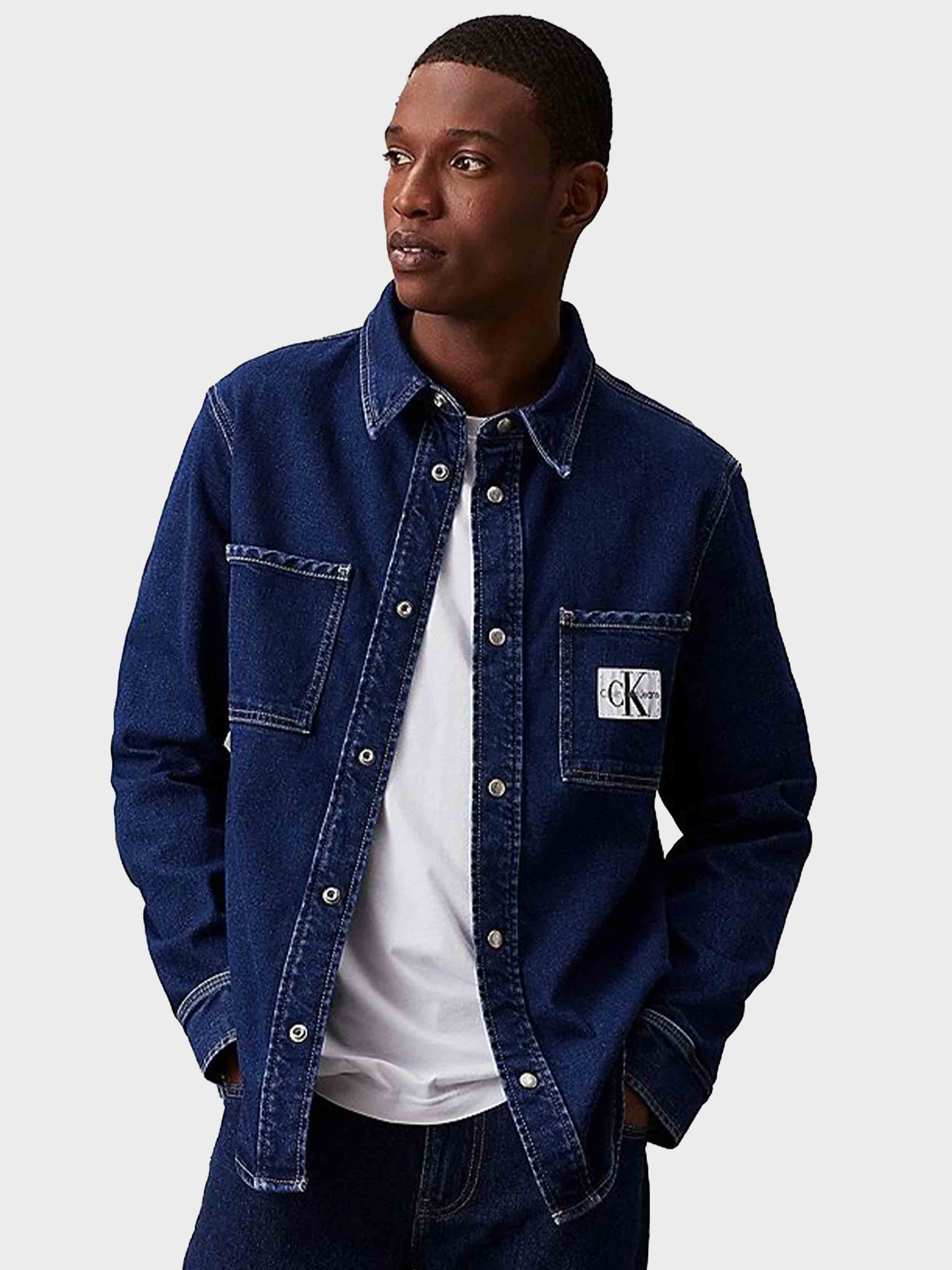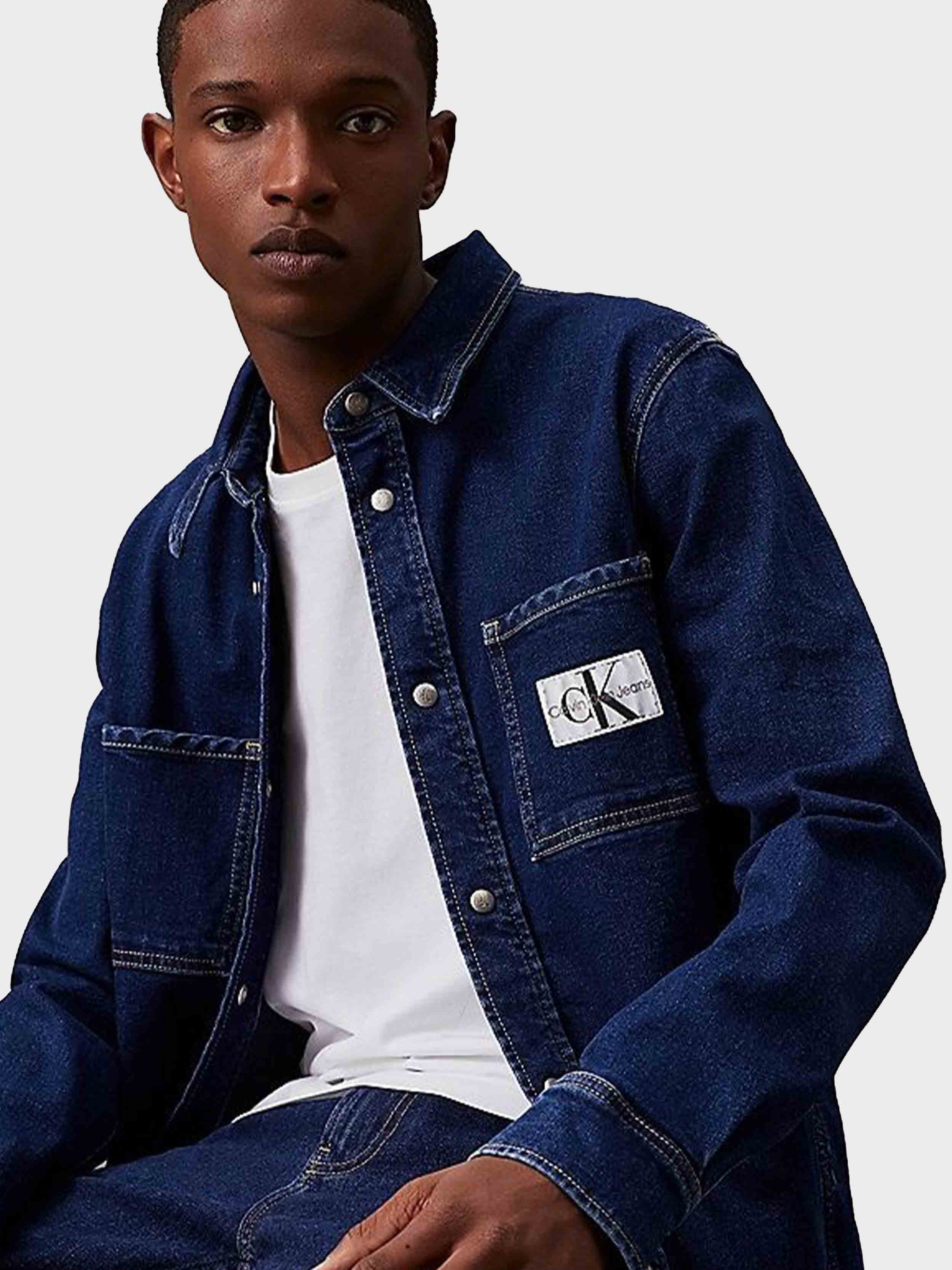 Calvin klein jeans - slim denim shirt , s , denim dark , style j30j325893