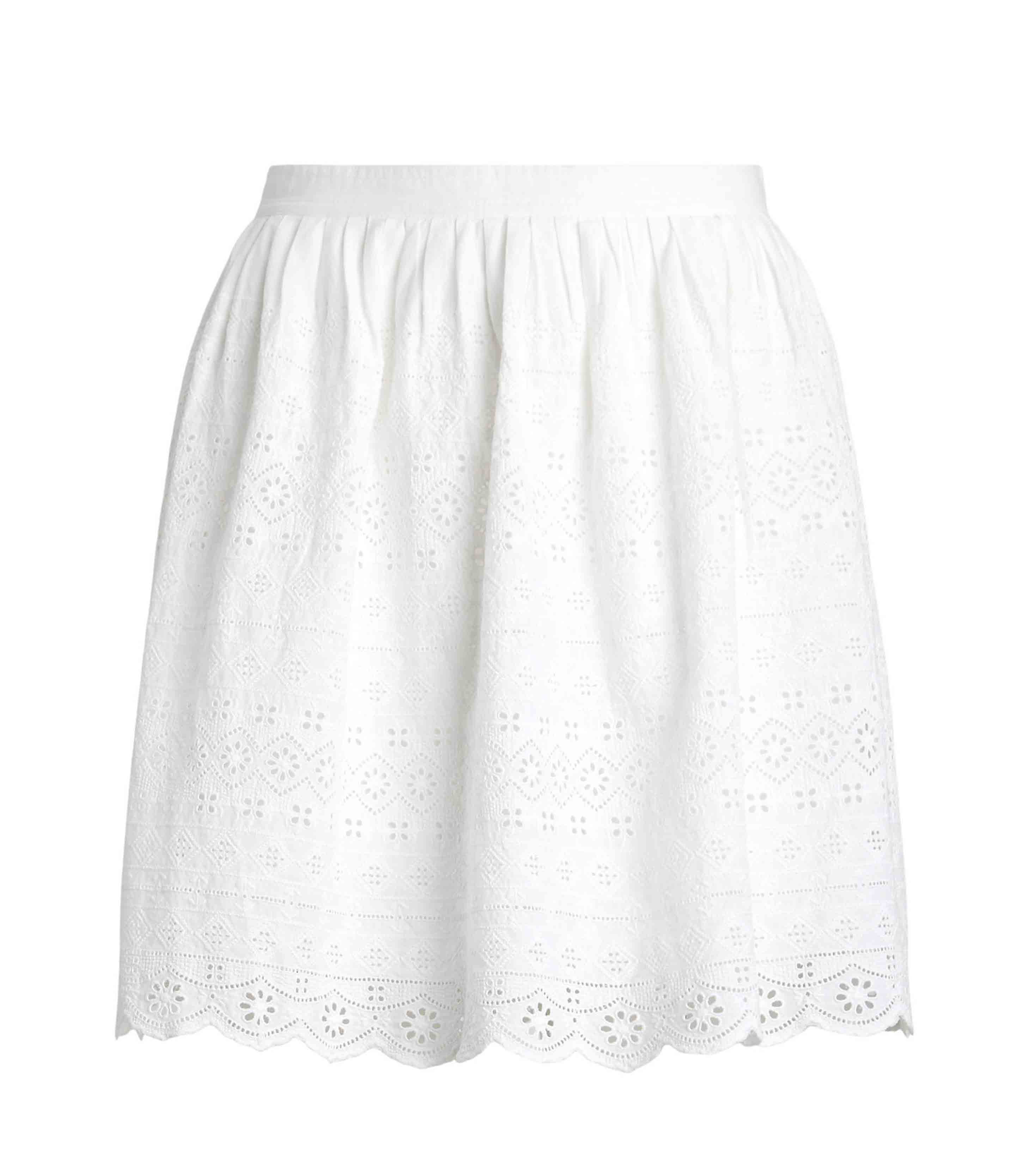 • Crafted with cotton and fully lined, this miniskirt combines allover eyelet embroidery with an A-line silhouette and a scalloped hem.