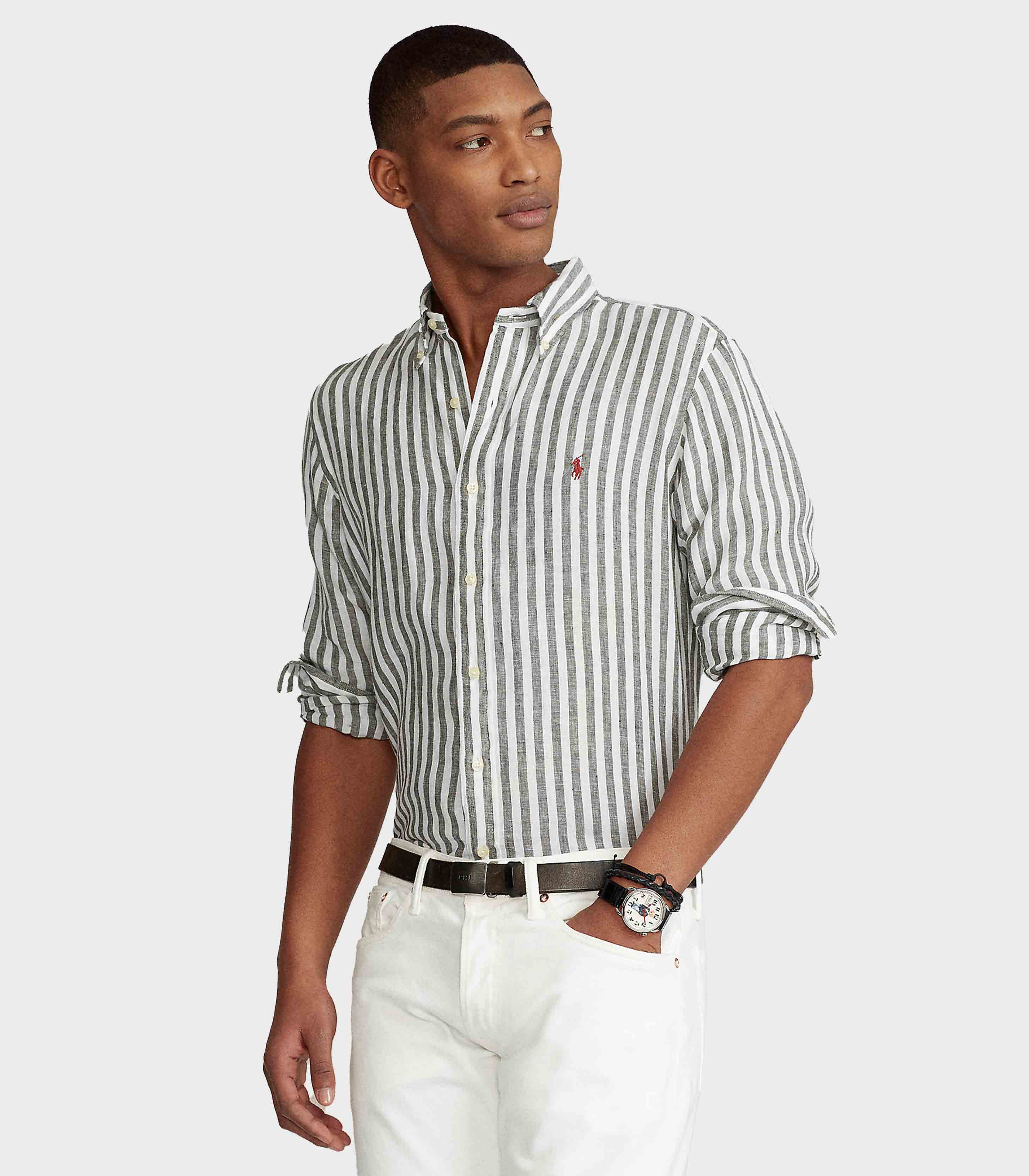 • Lightweight, naturally breathable linen and a trim fit establish this shirt as a warm-weather essential.