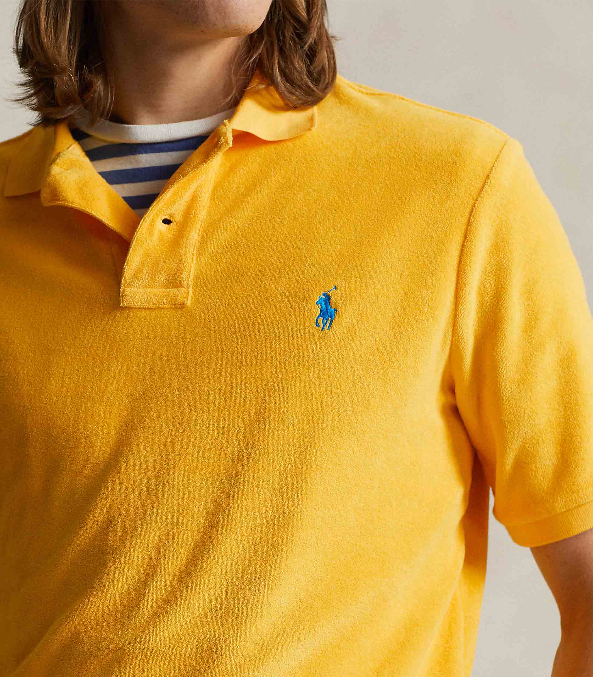 • An American style standard since 1972, the Polo shirt has been imitated but never matched. Over the decades, Ralph Lauren has reimagined his signature style in a wide array of colors and fits, yet all retain the quality and attention to detail of the iconic original. This version is crafted with lightweight cotton-blend terry and features our signature embroidered Pony at the chest.