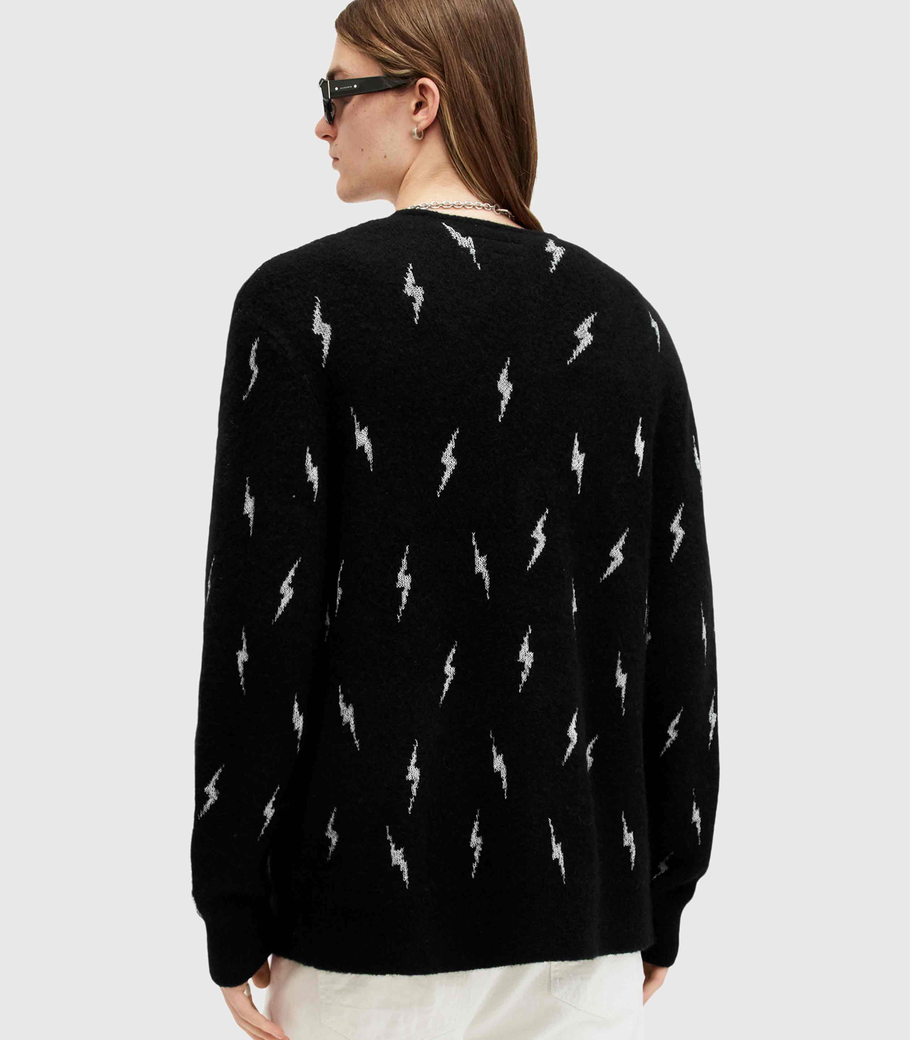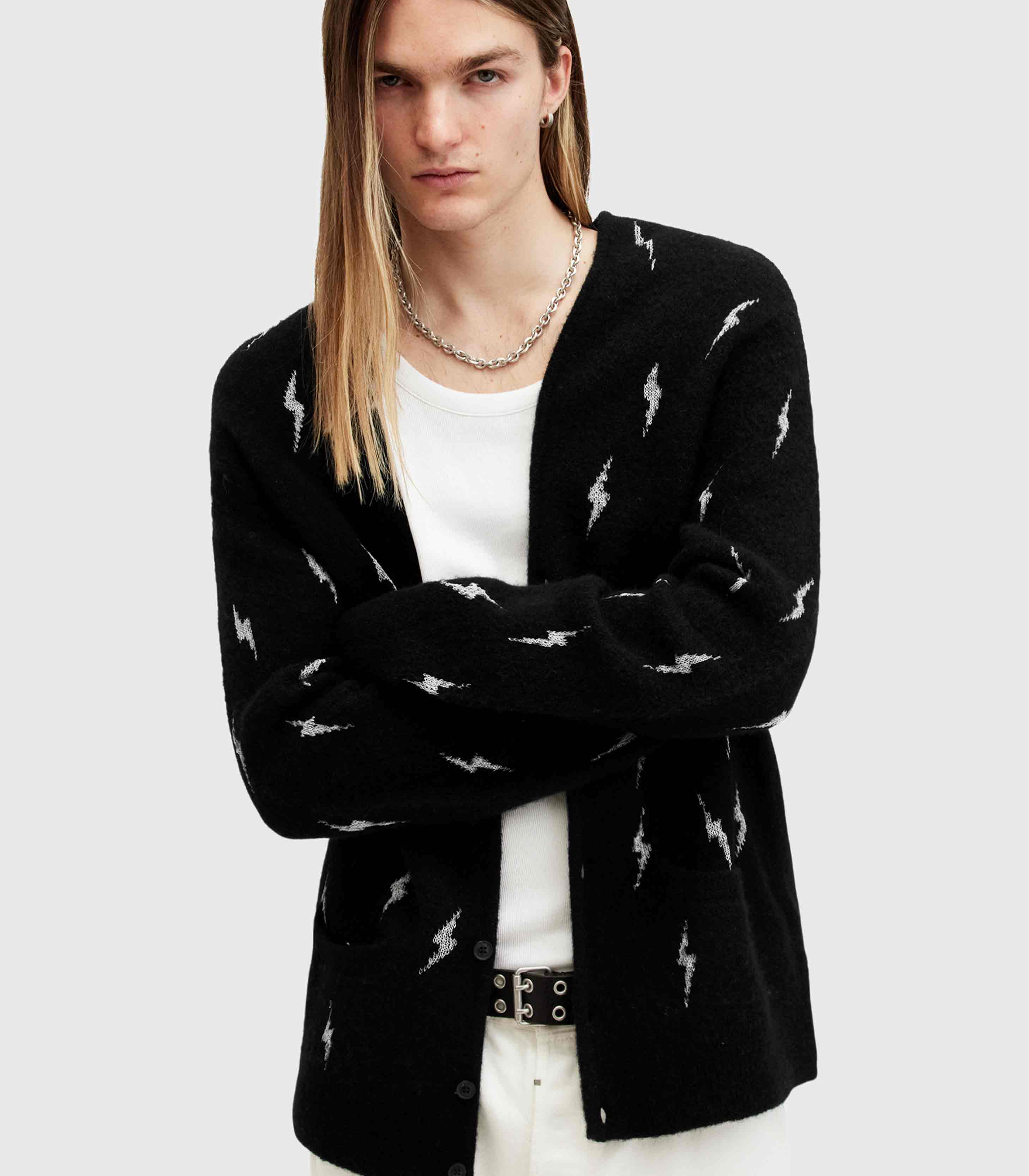 Allsaints- Zap V-Neck Lightning Motif Cardigan