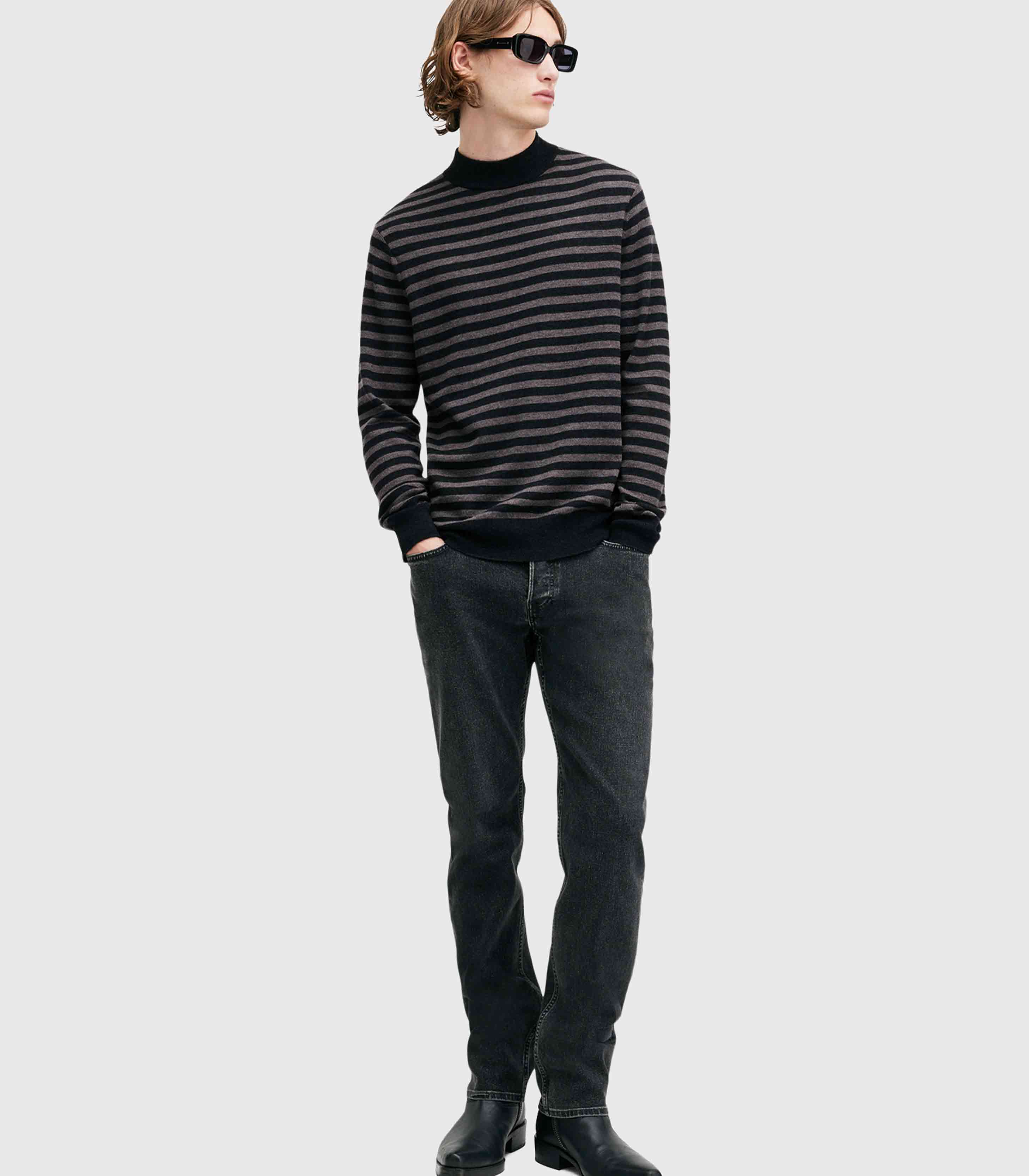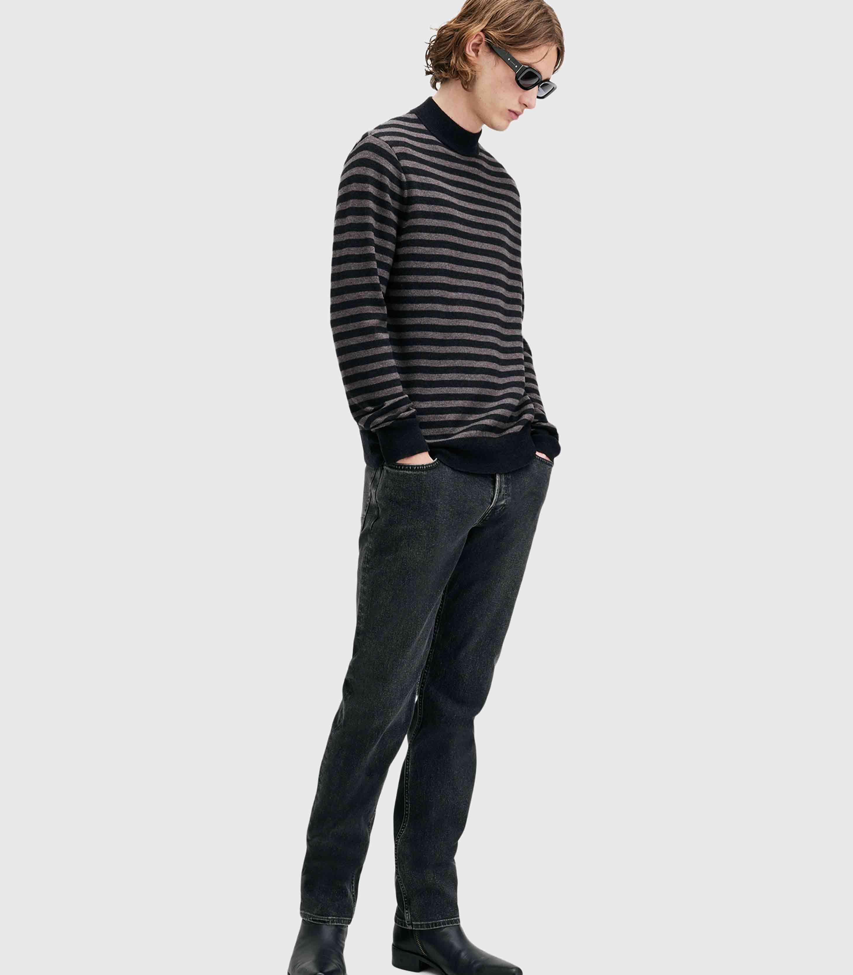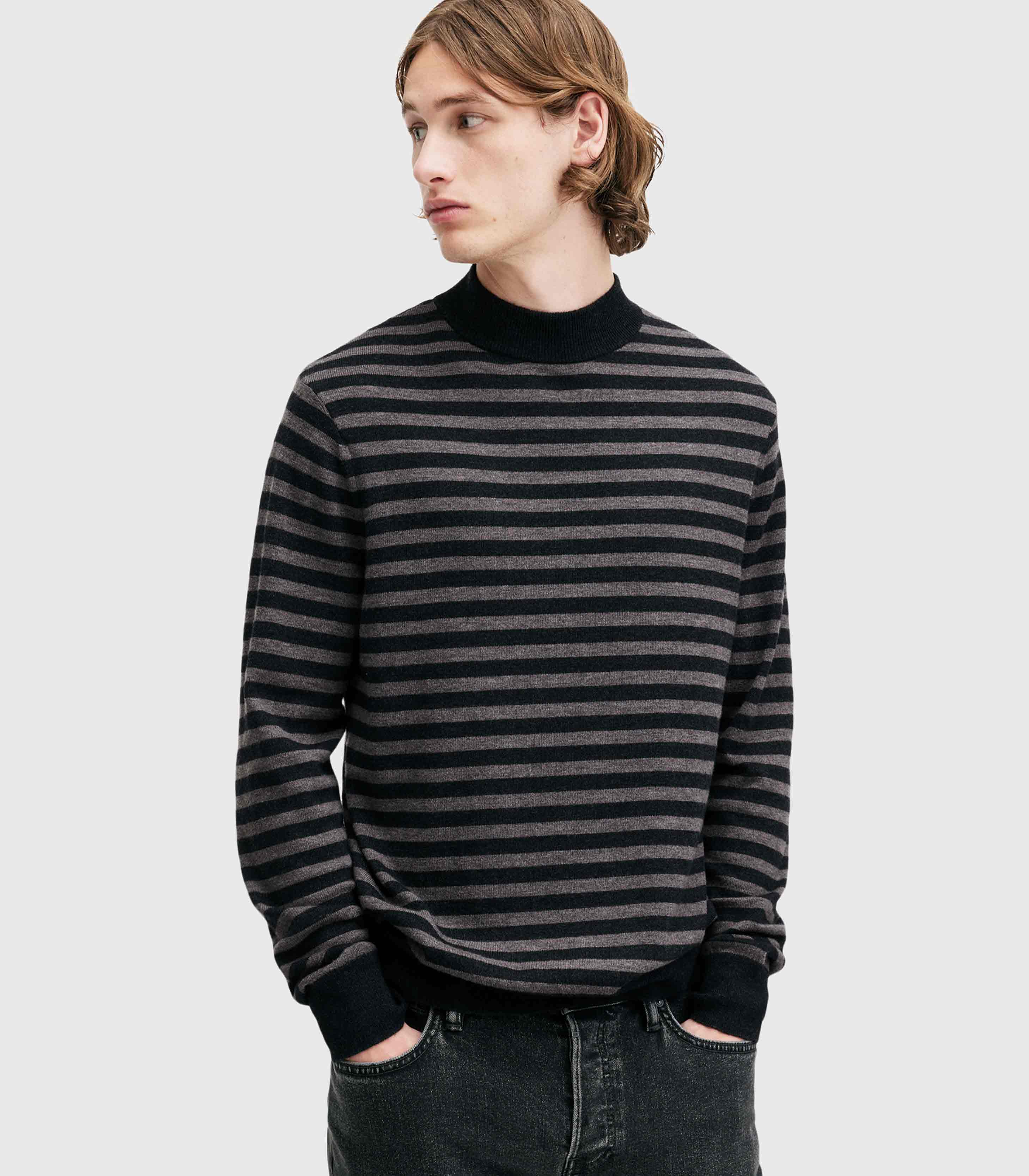 • Allsaints- Andi Mock Neck Striped Jumper
