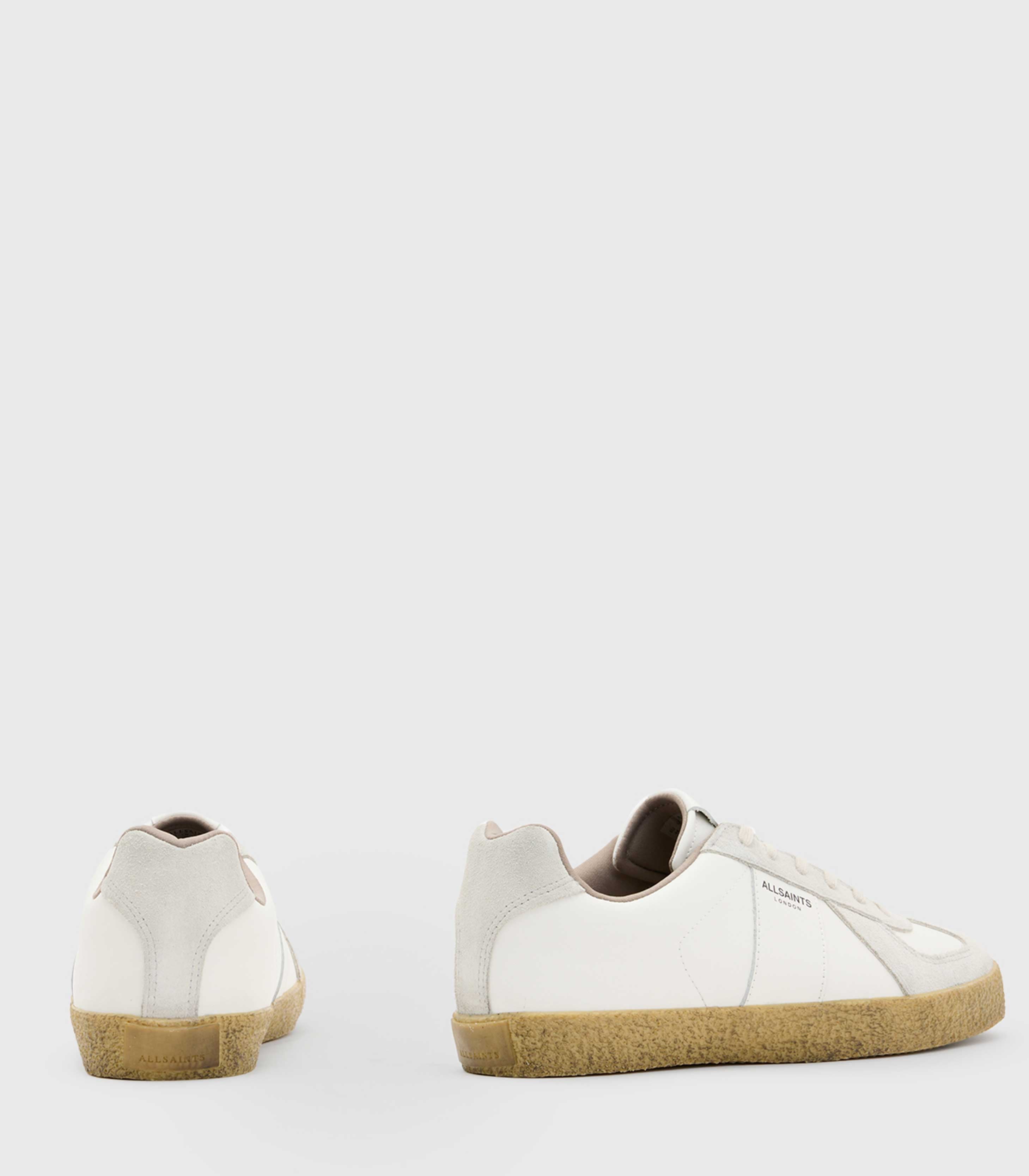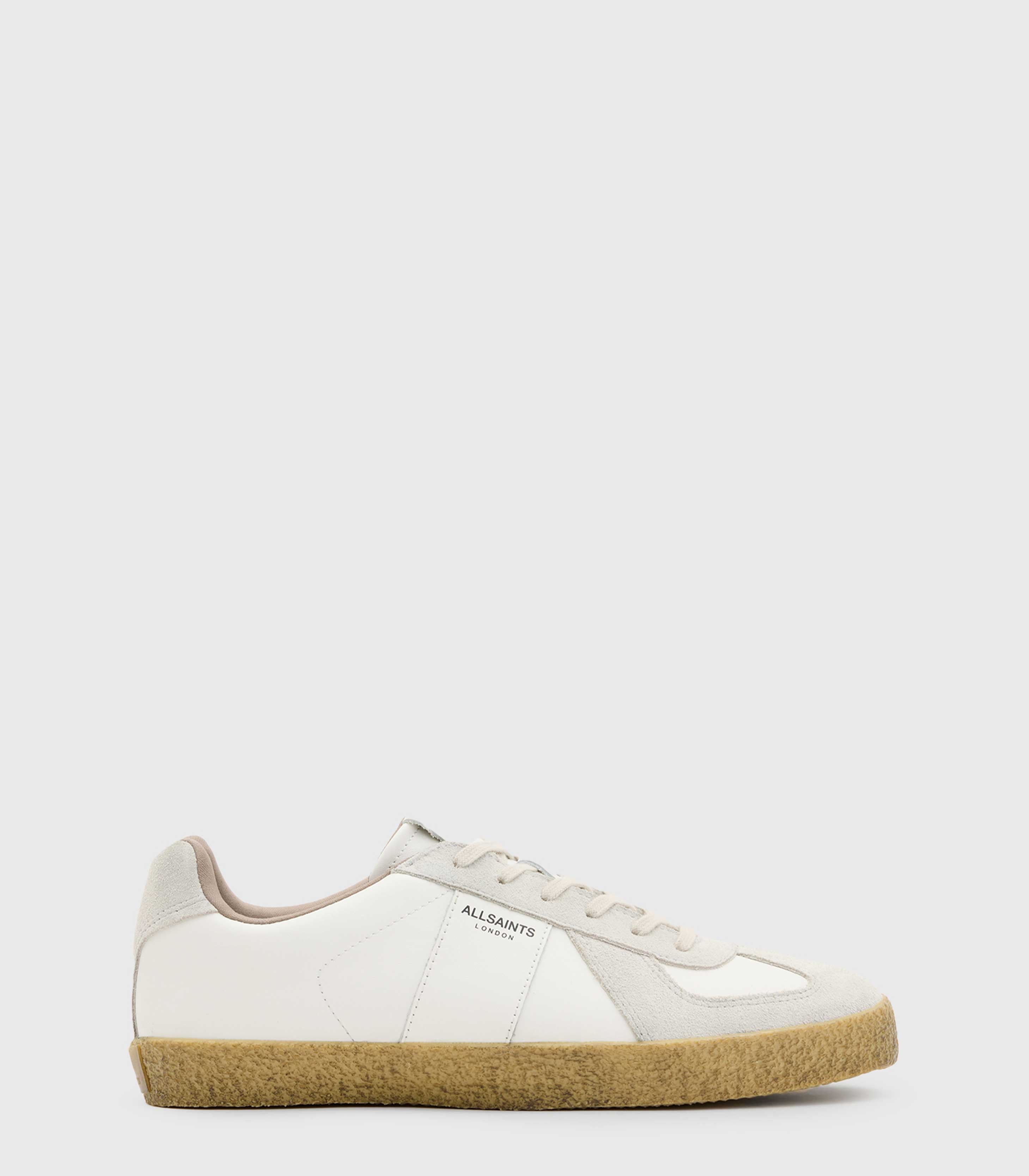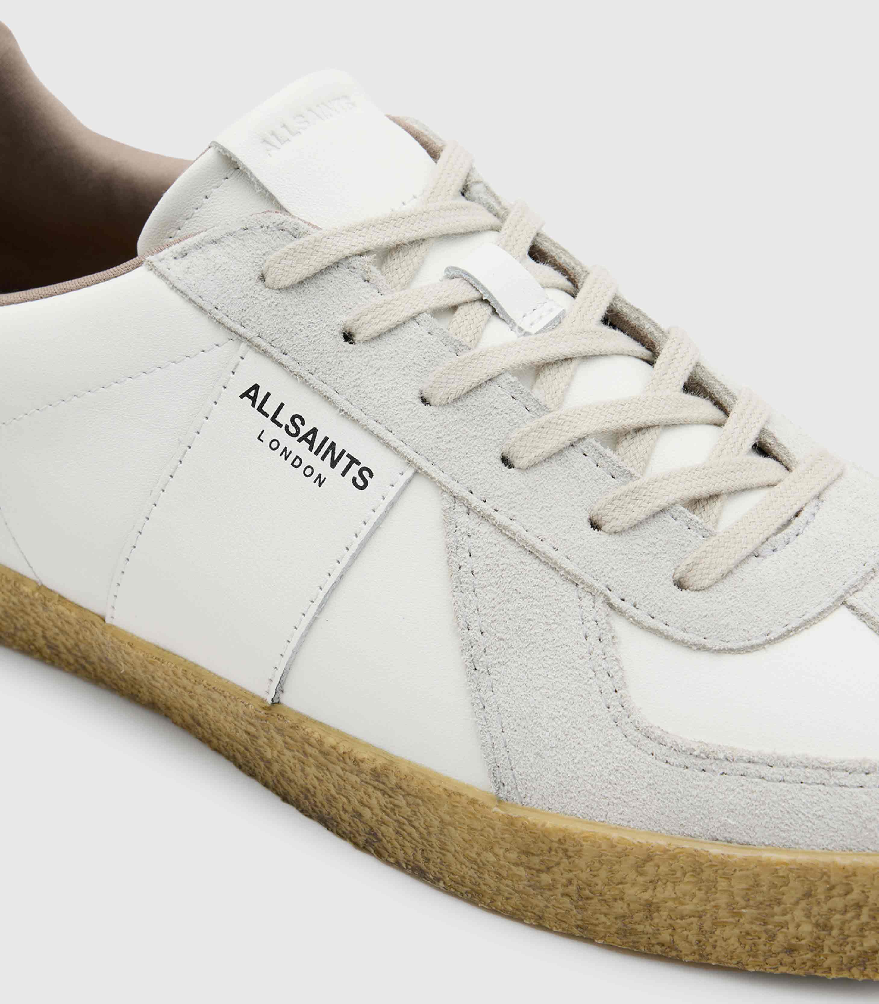 • New trainers, right here. The Jaimee are so AllSaints. This utility-inspired low-top style are made from premium leather with suede panels. We’ve put our signature logo on the side – look closer, you’ll remember it from our t-shirts and accessories. Finished with a recycled lining, these comfy trainers are your new go-to.