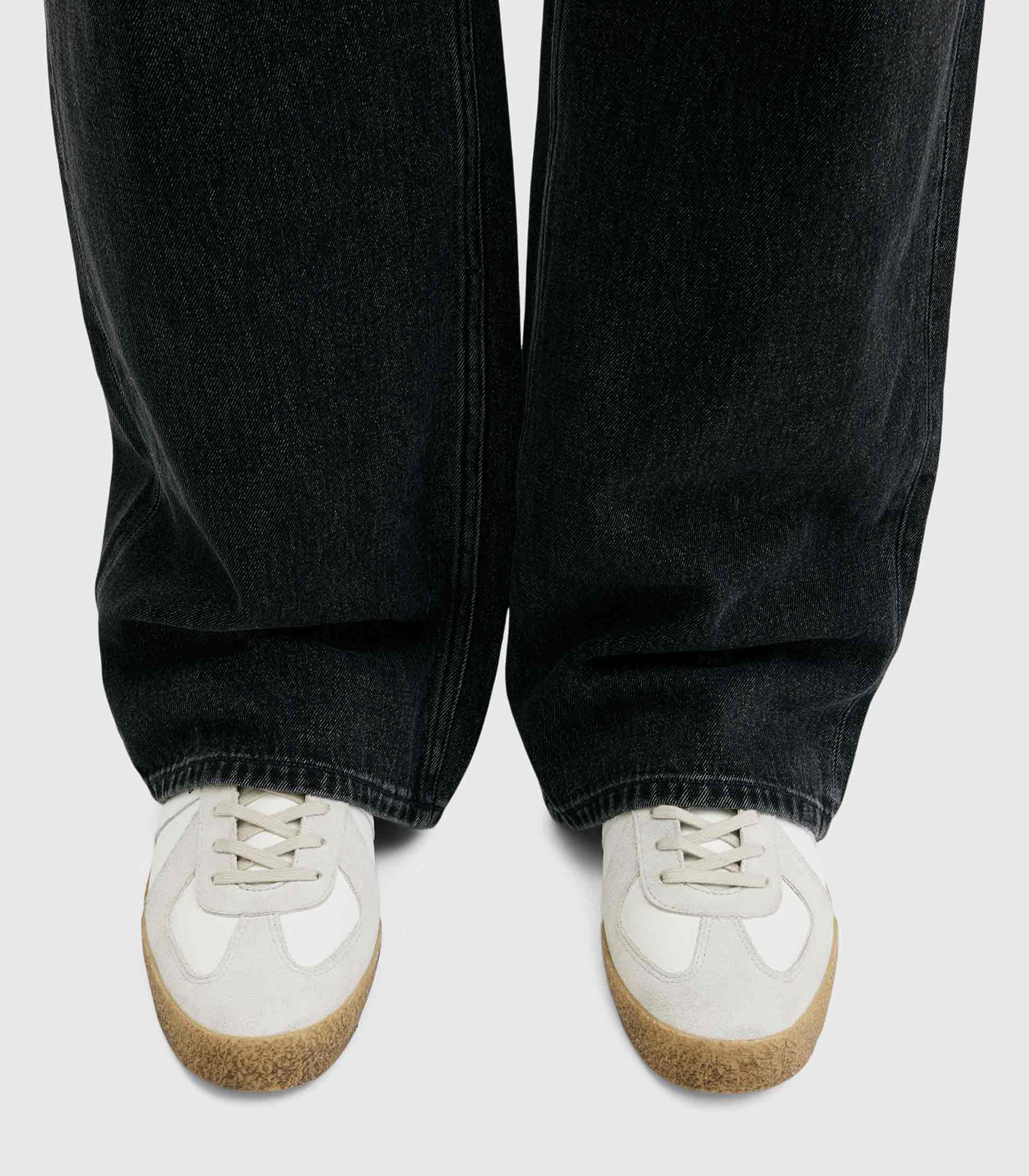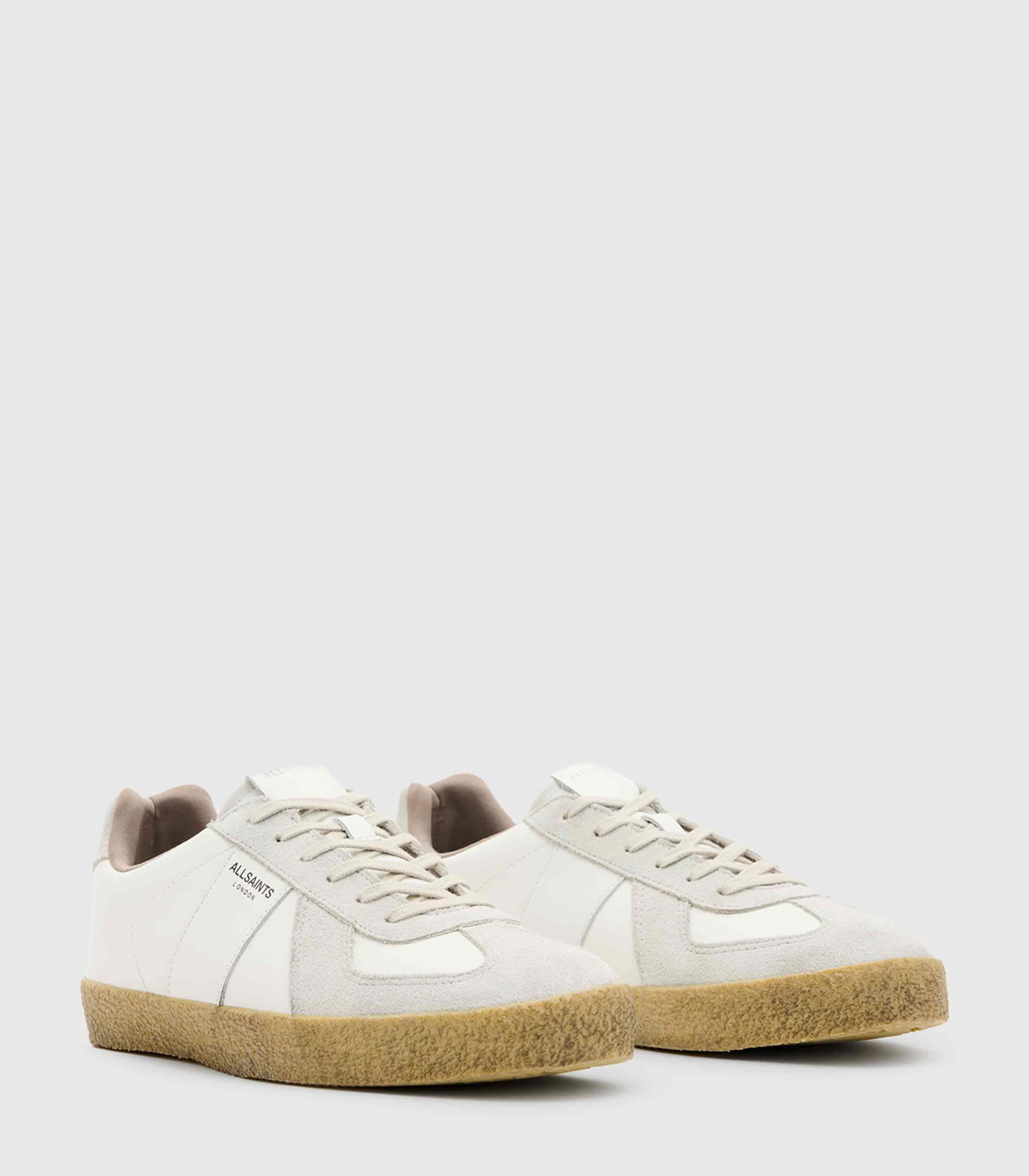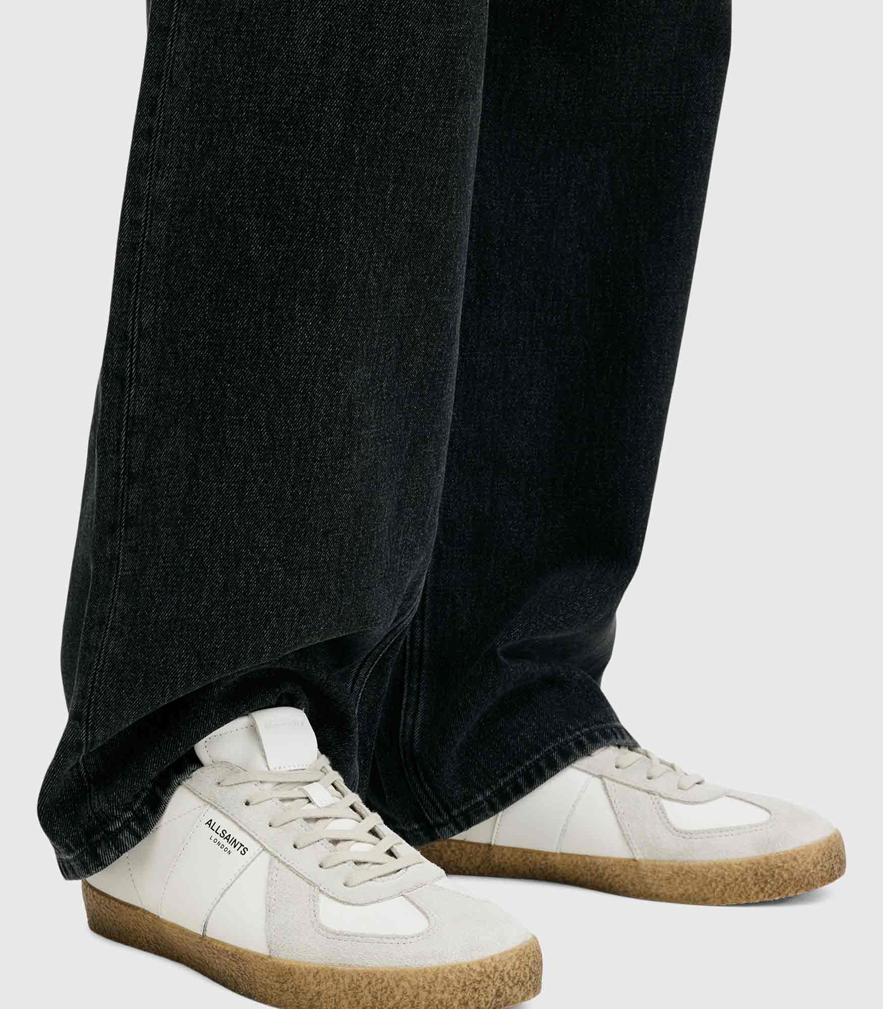 • New trainers, right here. The Jaimee are so AllSaints. This utility-inspired low-top style are made from premium leather with suede panels. We’ve put our signature logo on the side – look closer, you’ll remember it from our t-shirts and accessories. Finished with a recycled lining, these comfy trainers are your new go-to.