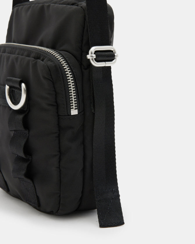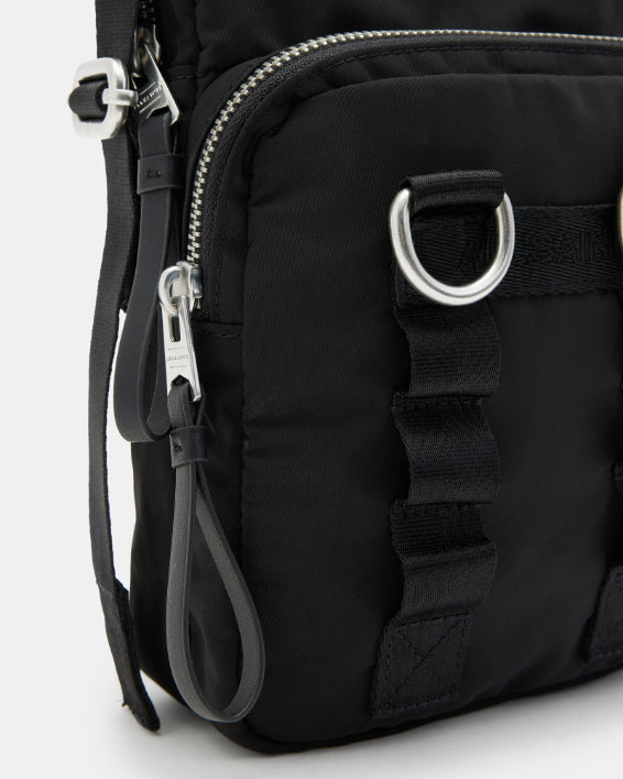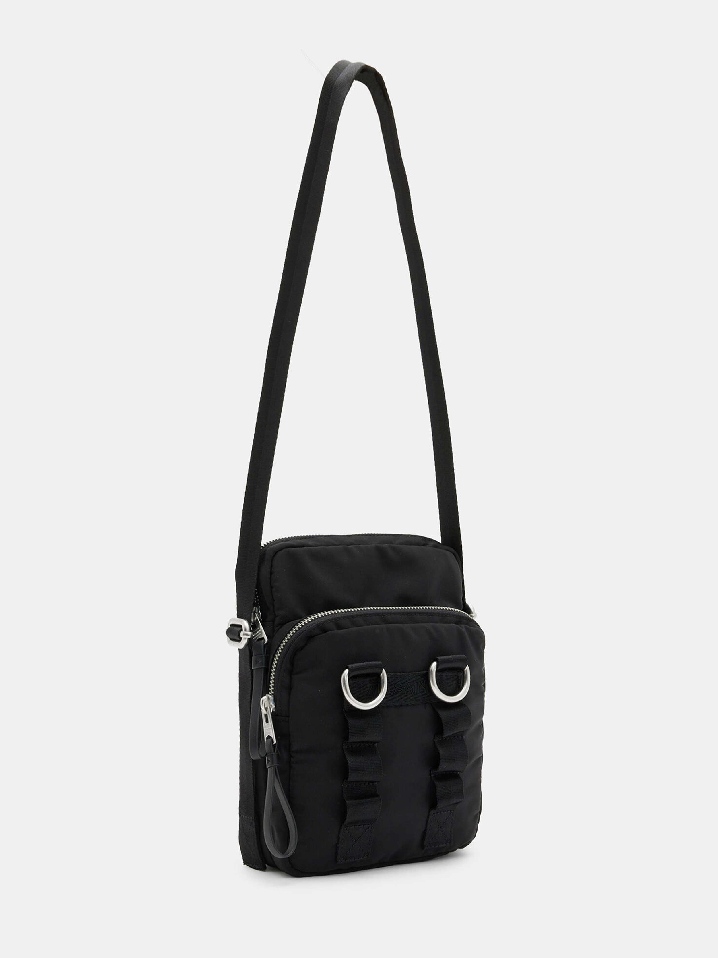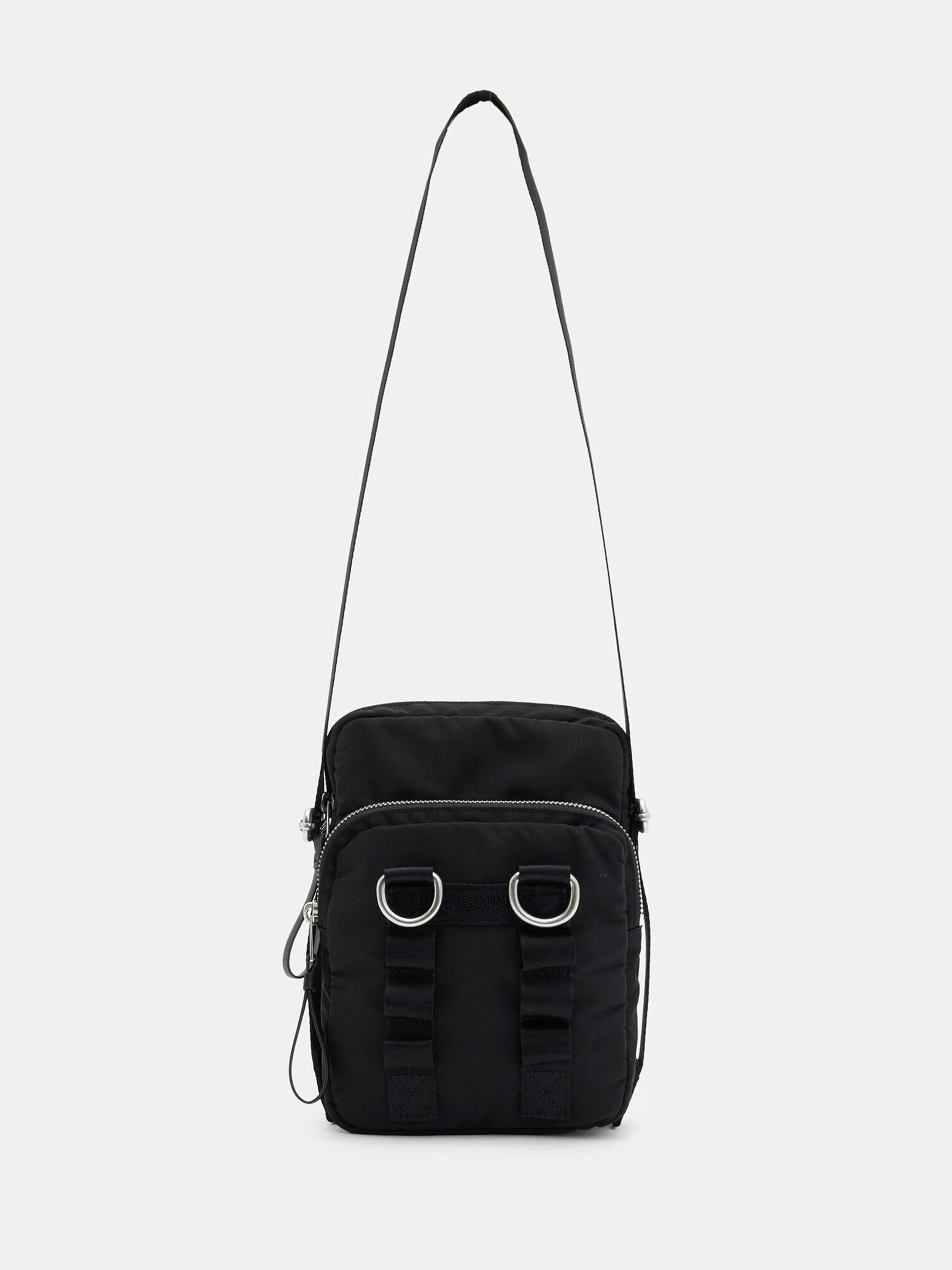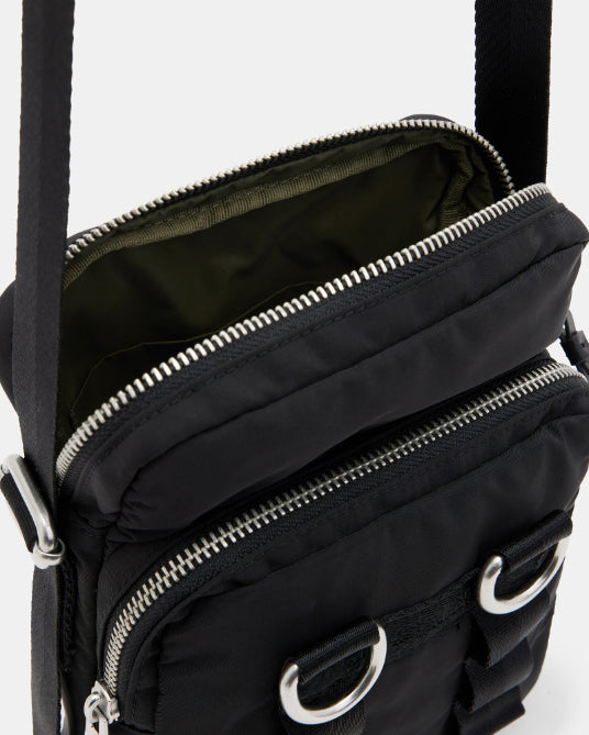 • This is the Steppe Crossbody Bag. Made from recycled fabric to a compact shape with an adjustable strap and front zipped pocket. Complete with metal hardware on the front and and three further pockets inside, you won't want to leave the house without it.