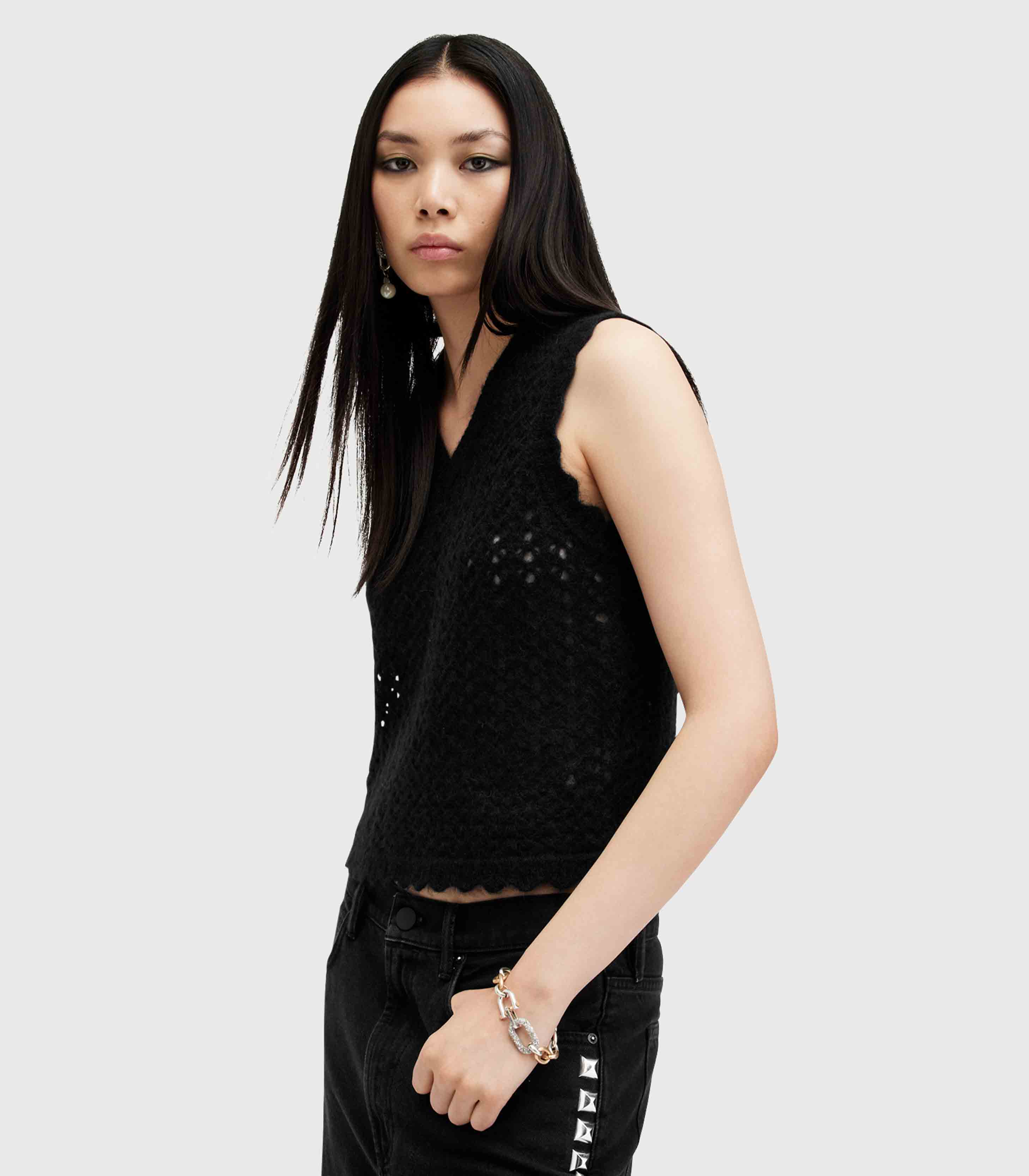 • Allsaints- Vivian Open Stitch V-Neck Tank Top