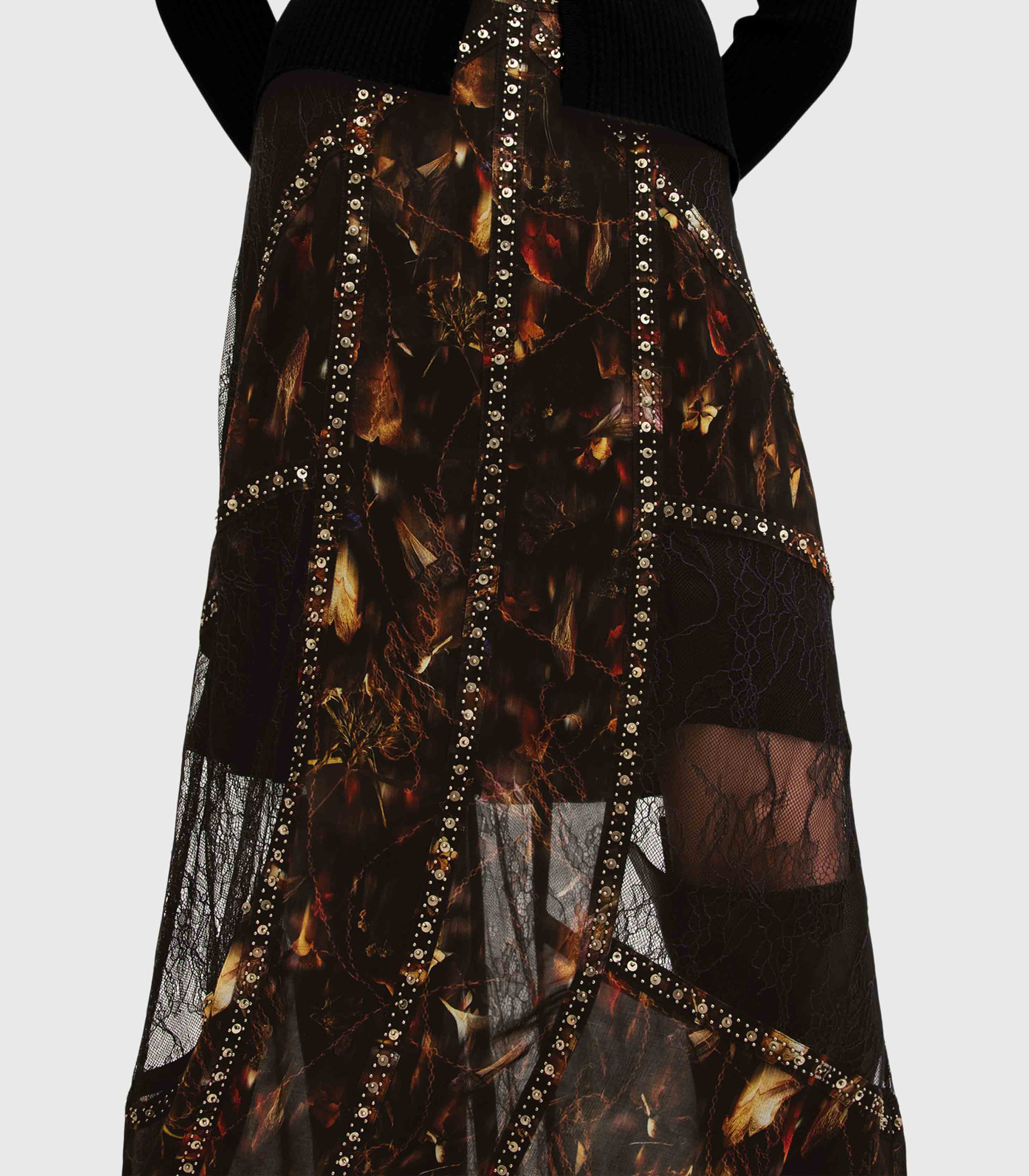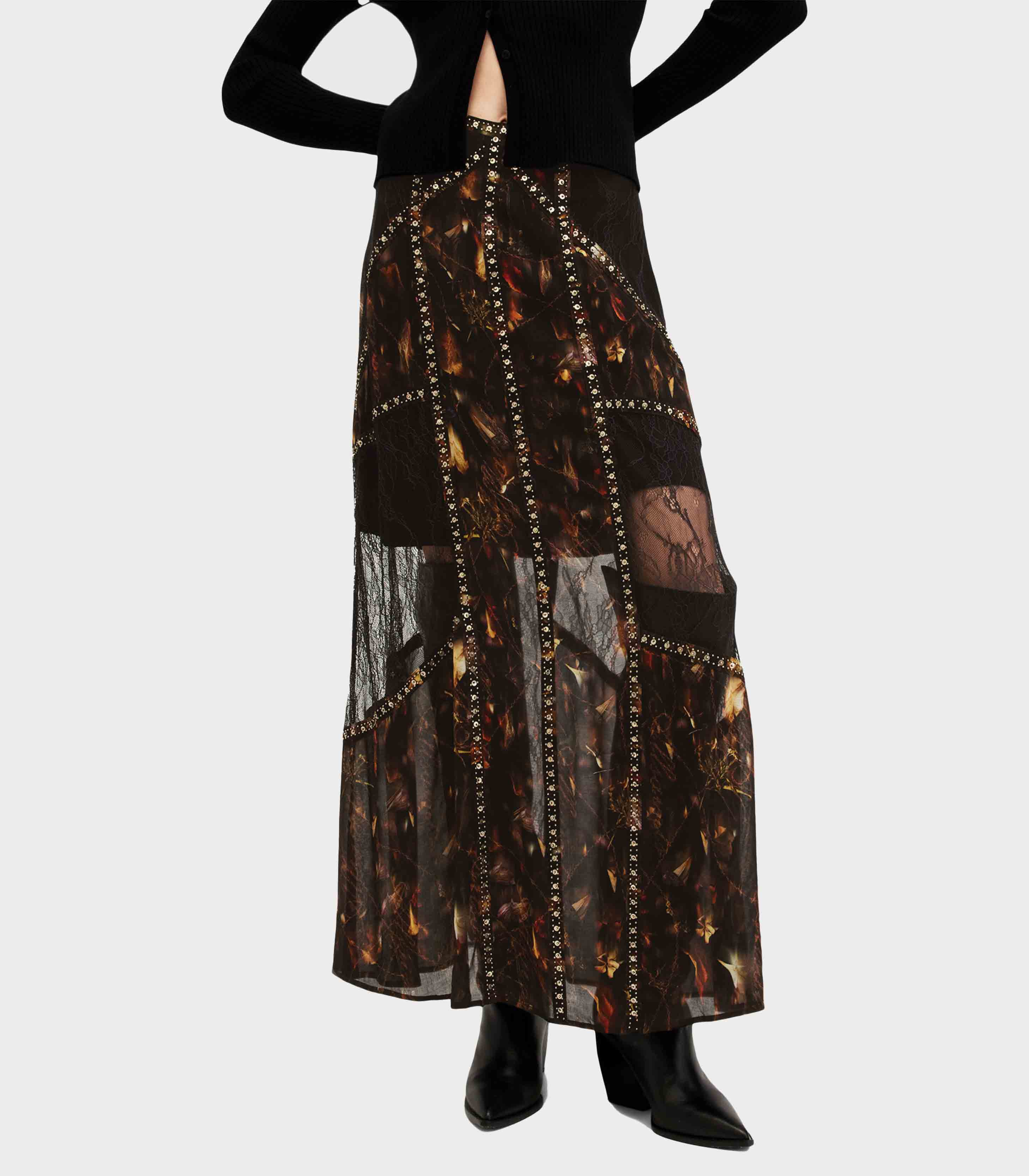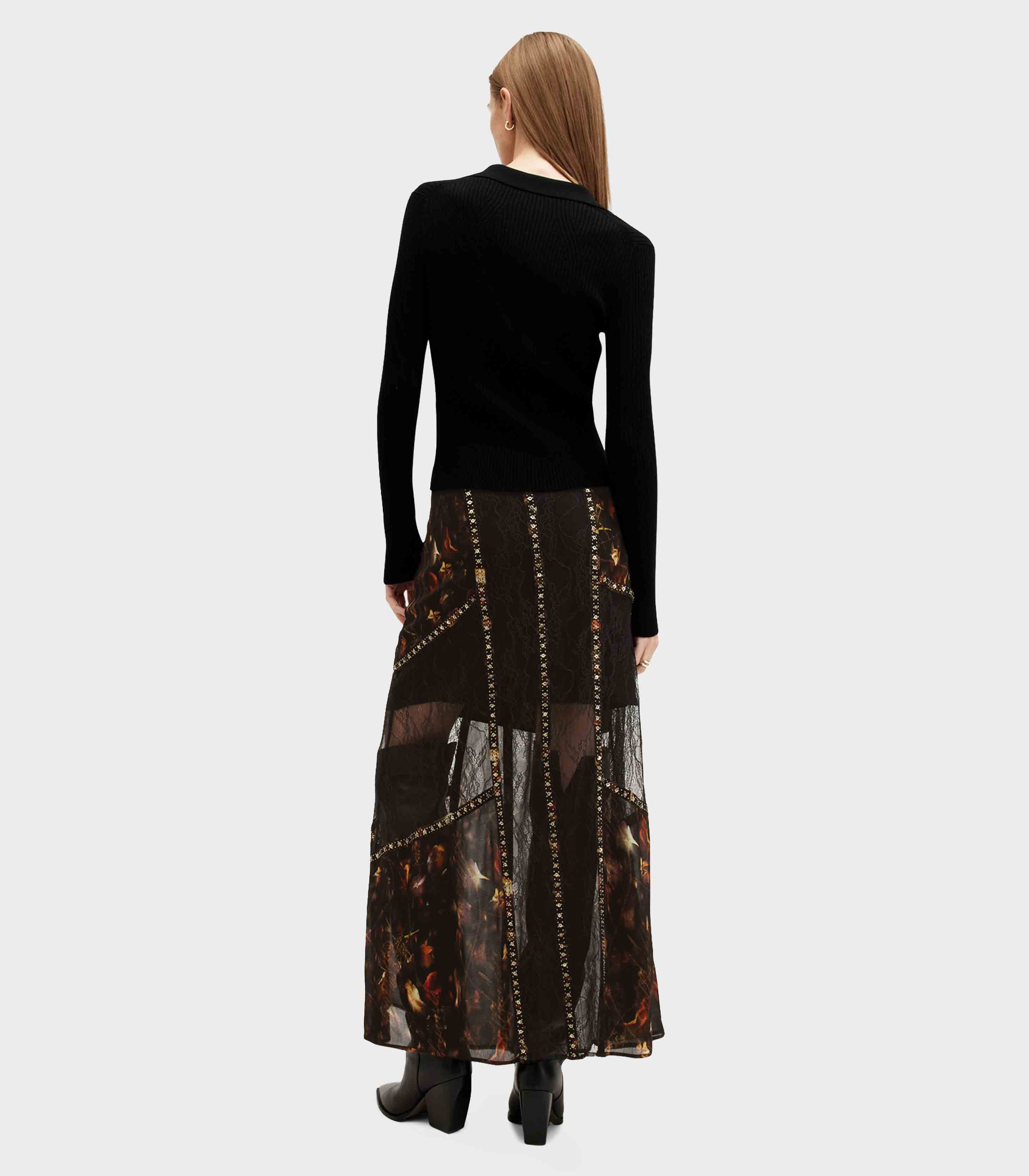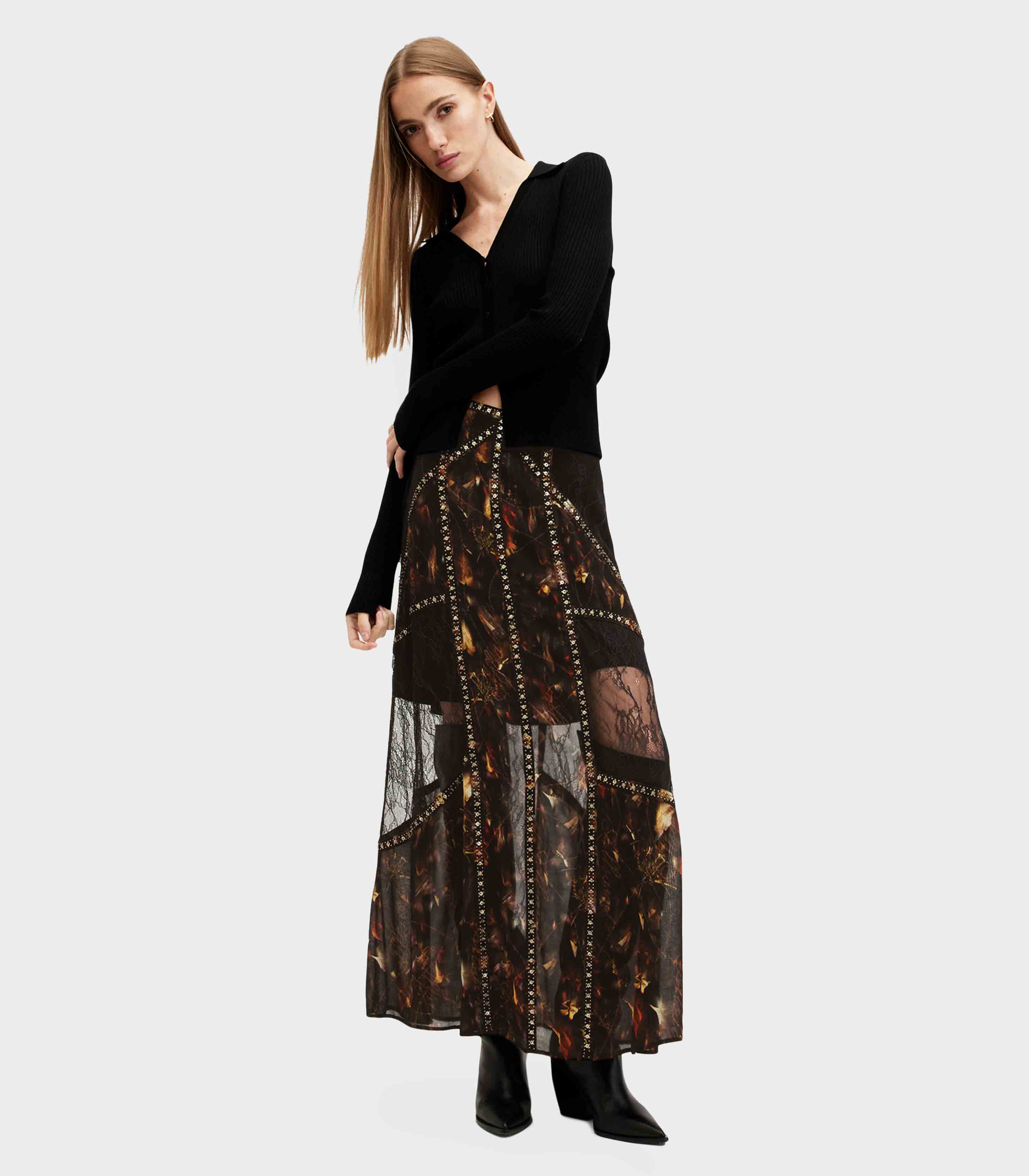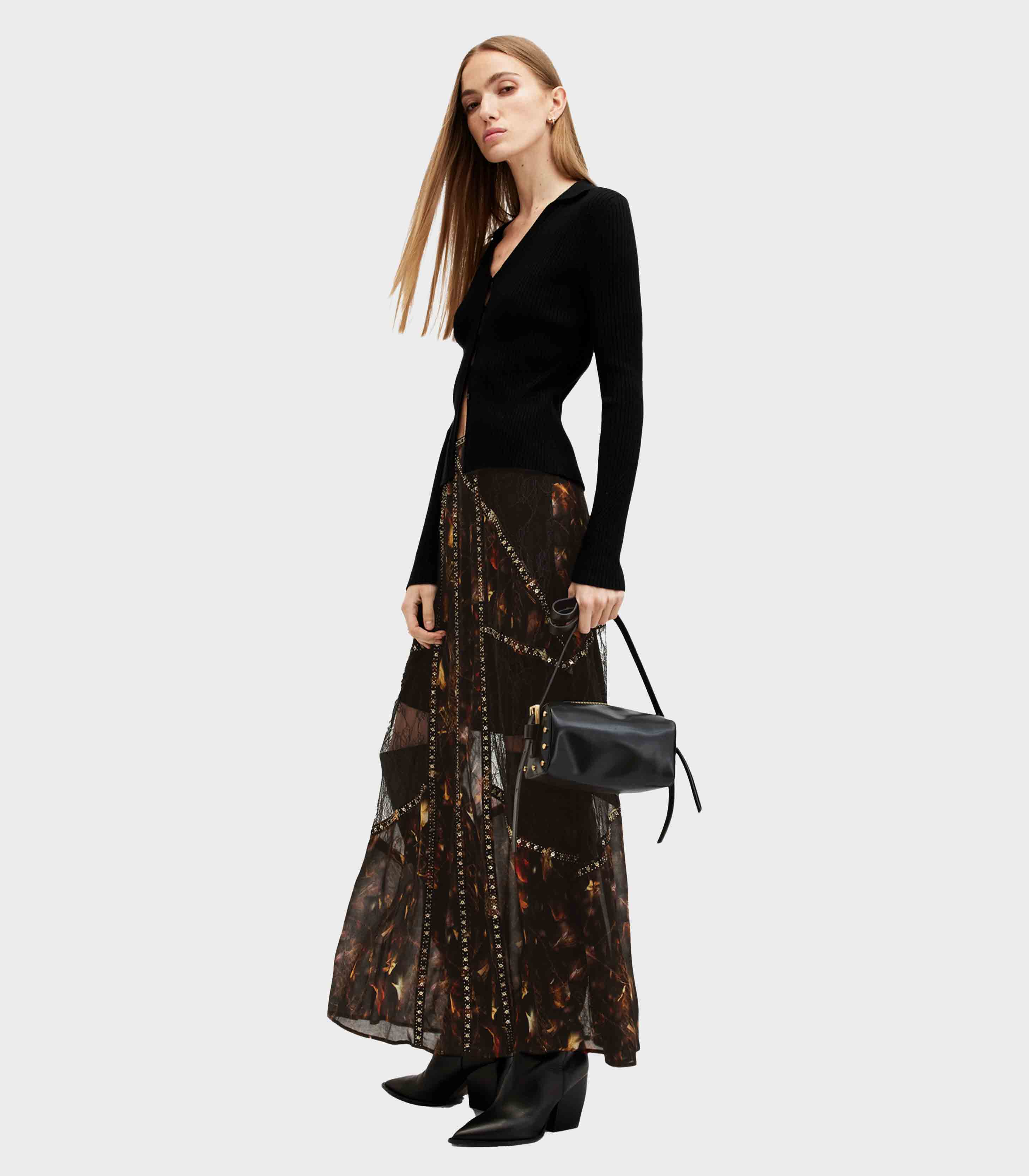 Allsaints- Bryn Embellished Panelled Maxi Skirt